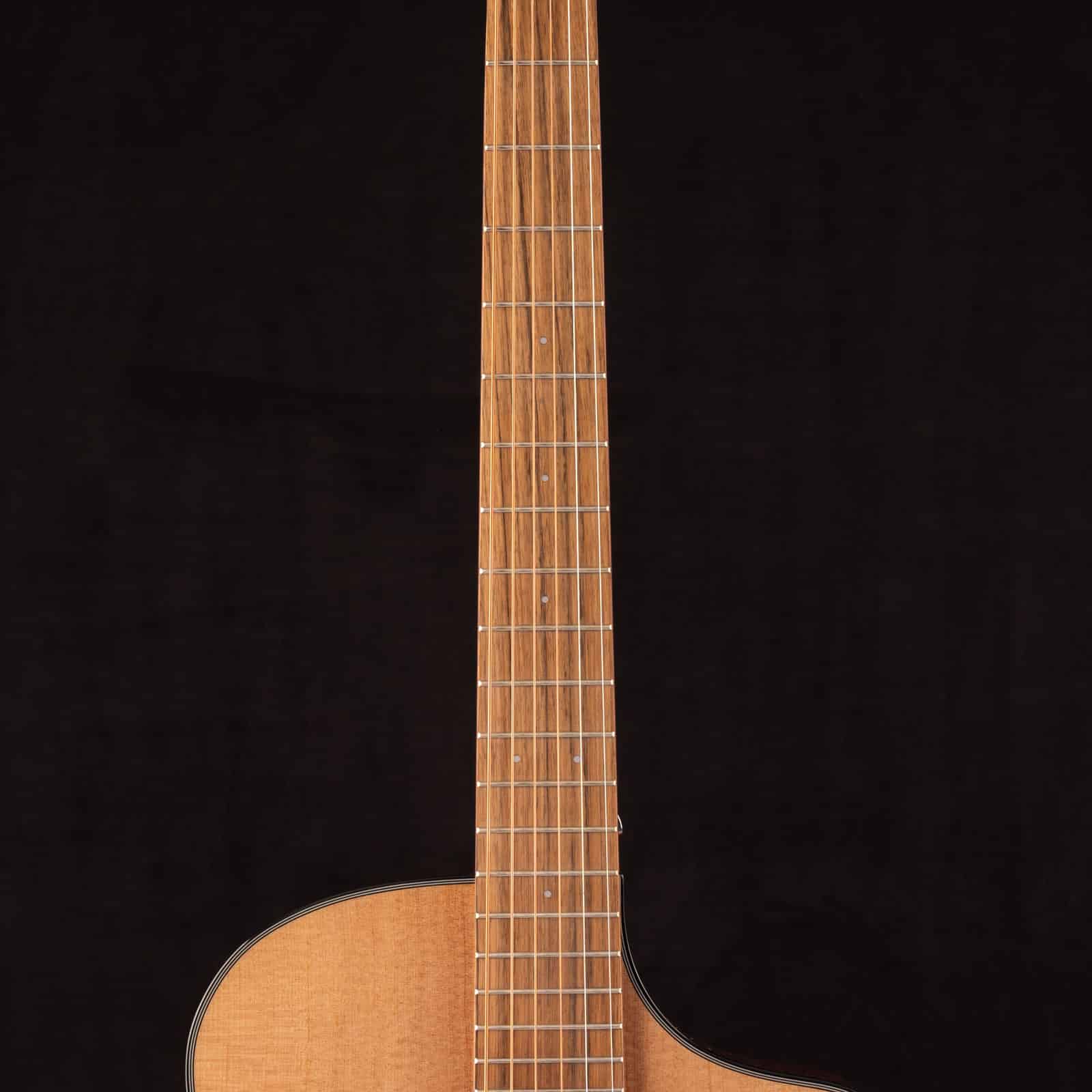 The concert cutaway body is that perfect middle ground between a bulky dreadnought and a tiny parlor. It sits close to your body, so long practice sessions and three set nights stay comfortable.