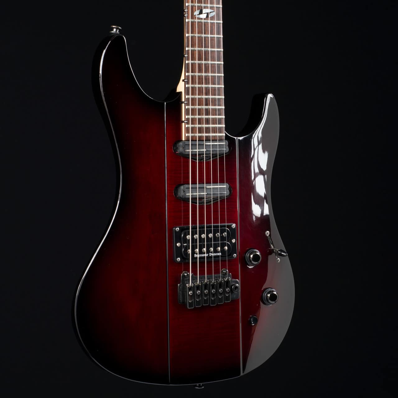 An HSH configuration gives this model its distinctive tone. A direct mount Seymour Duncan® JB TB-4 humbucking bridge pickup and direct mount Seymour Duncan Custom Flat Strat SSL-6 middle pickup radiate unmistakable upper midrange attack with a tight, articulate low end and snappy Strat character. The direct mount Seymour Duncan Jazz SH-2N neck humbucker delivers articulate, glassy treble response that balances well with a full but tight low end.