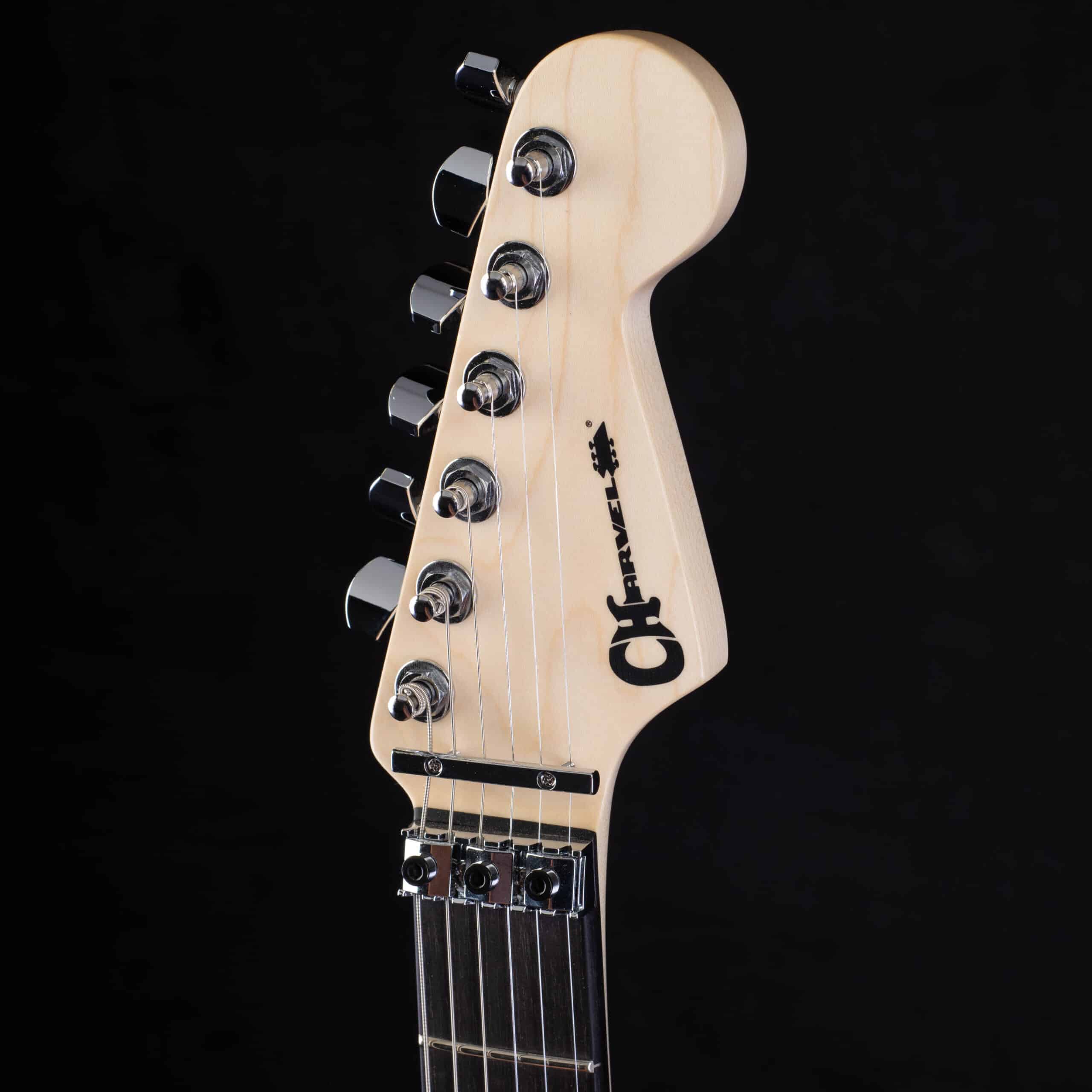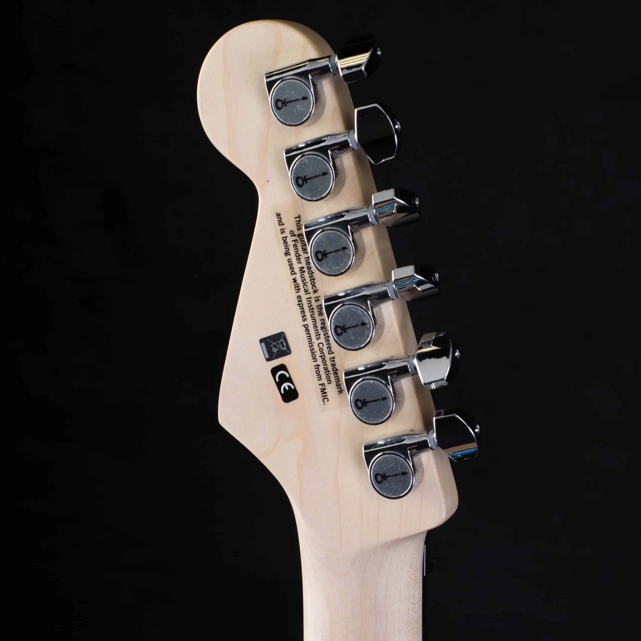Charvel branded die-cast tuners, knurled flat-top knobs, side-mounted output jack, and a simple 1-ply white pickguard keep the hardware workhorse reliable and gig ready. Real talk, this is the kind of setup that makes you trust your guitar on stage.