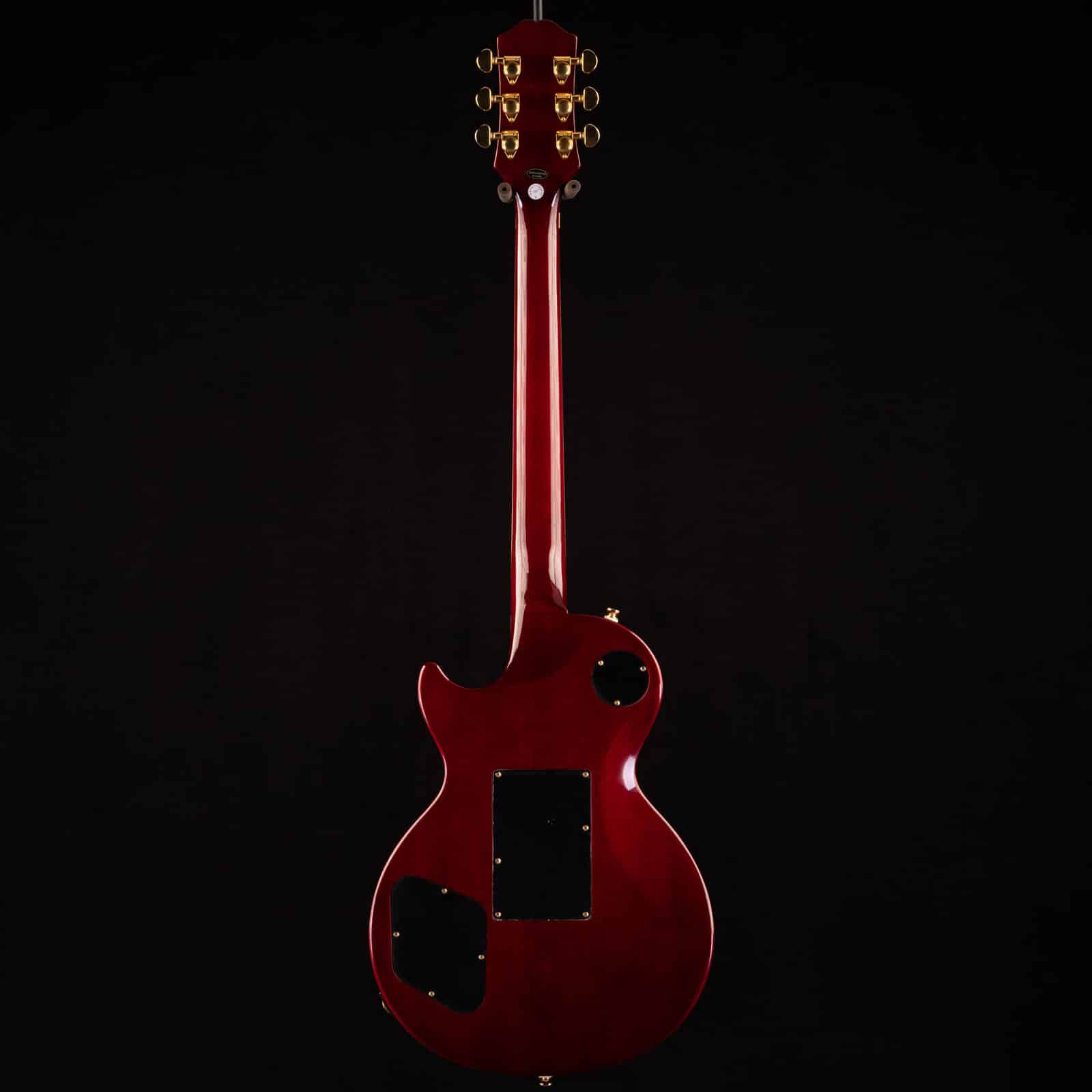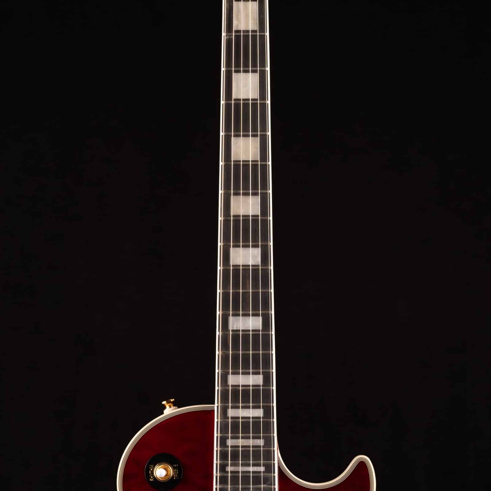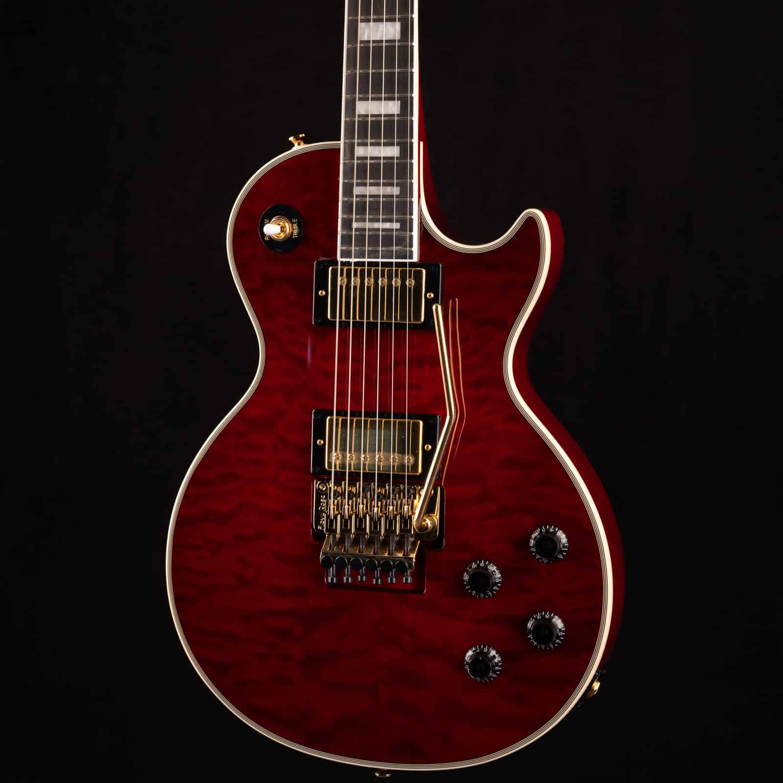 The Ruby gloss finish looks wild under stage lights. The multi ply binding around the top and headstock keeps it classy, while the quilt figuring and gold hardware give it that high end custom shop vibe without the custom shop price tag.