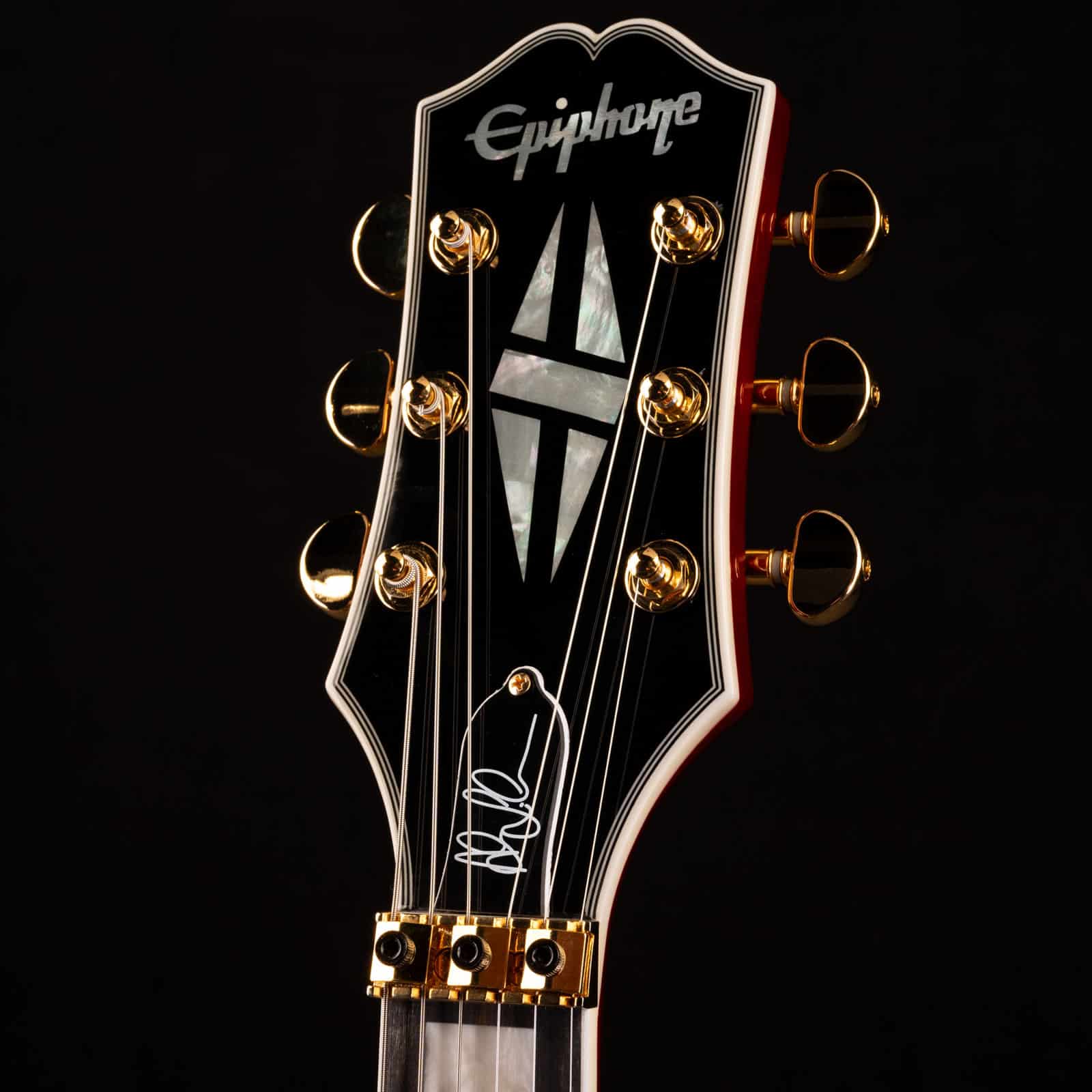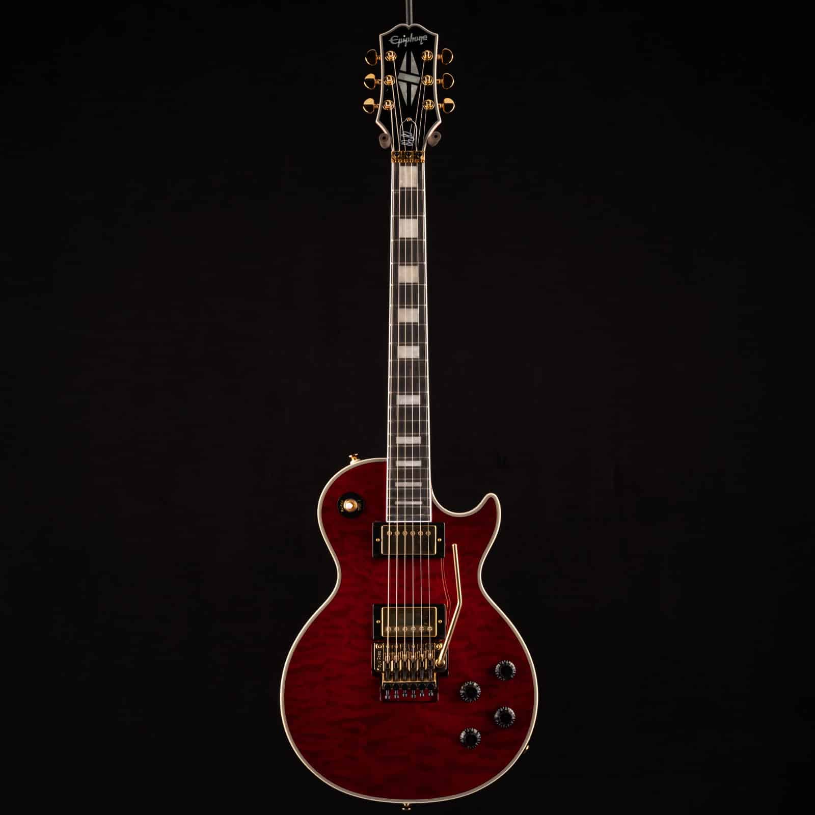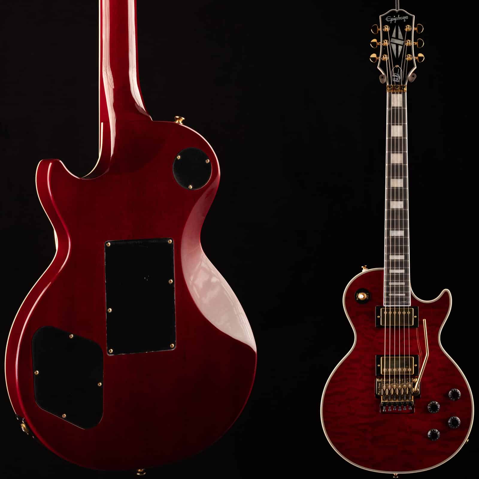 This Epiphone Alex Lifeson Les Paul Custom Axcess Ruby is in our Evansville, Indiana shop right now, fully inspected and set up by real players. At around 9 pounds it has that solid, sustaining feel that makes every note bloom, without being a shoulder killer.