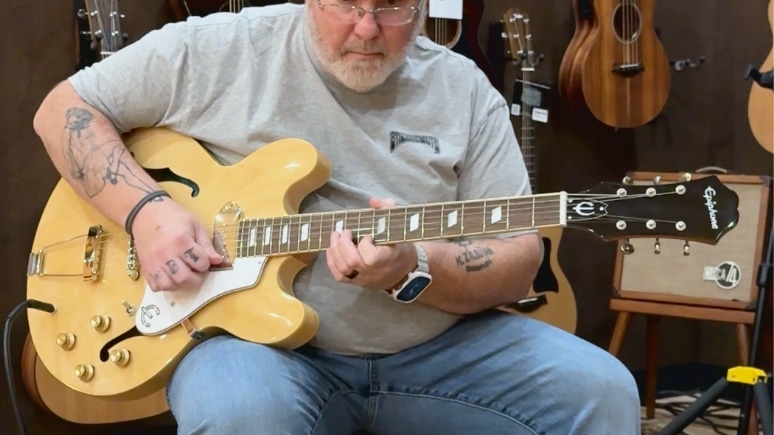 The magic of the Casino lies in its Epiphone PRO P-90 pickups. These single coils deliver a universe of tone—from the glassy, bell-like jangle perfect for rhythm work to a raw, gritty bark when you push your amp. There’s a reason these pickups are legendary; they have a midrange punch and touch sensitivity that humbuckers can’t replicate and a warmth that other single coils lack. Roll back the volume for pristine cleans, or crank it for that signature Casino roar.