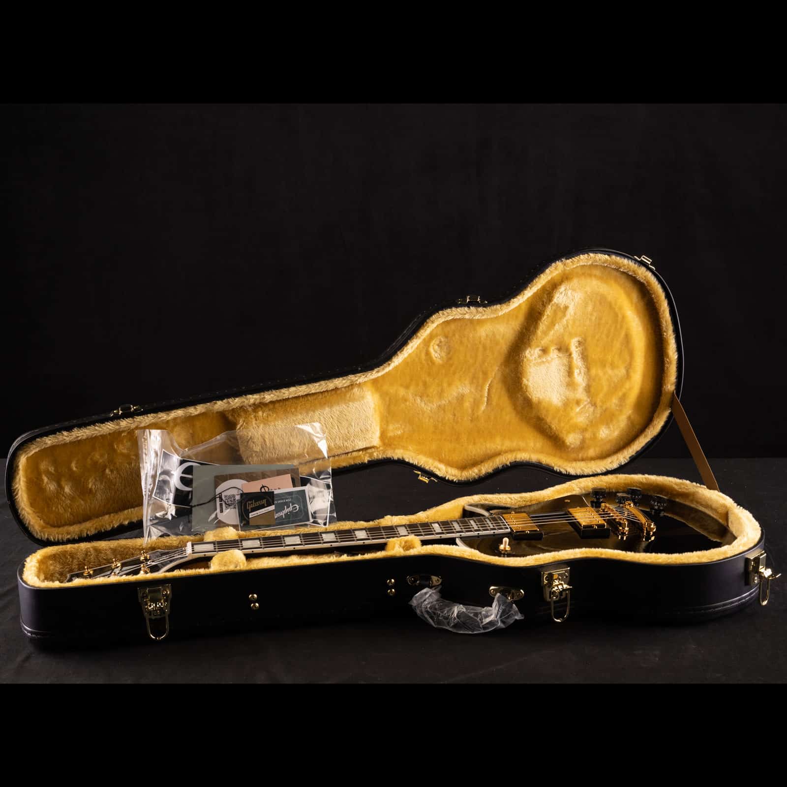 It ships in a black hardshell case with goldenrod interior, gold hardware, and the Inspired by Gibson Custom logo, so you are covered from day one. Pictures are of the actual guitar, and it ships fast and fully insured from our Evansville, Indiana shop.
