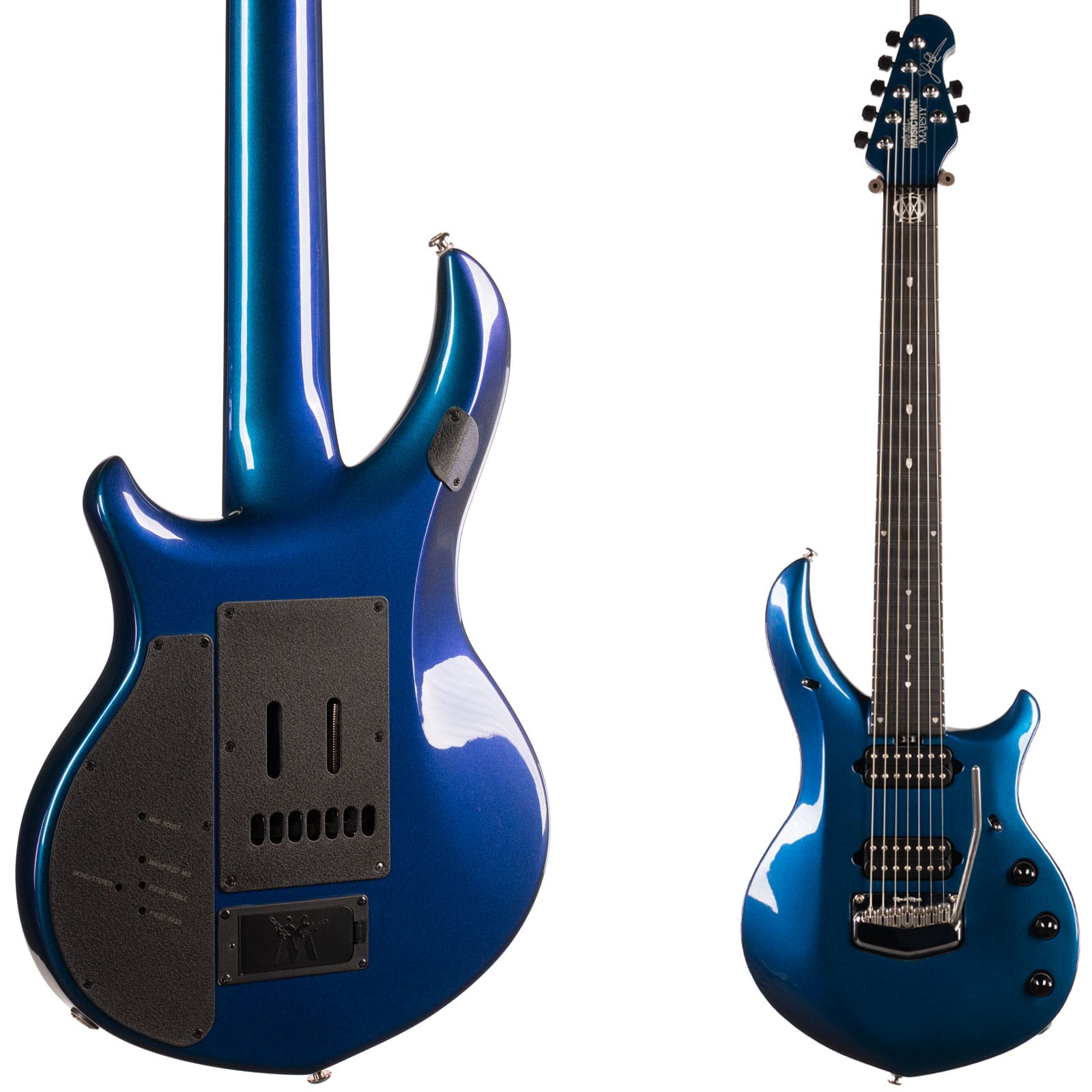 This isn’t just a guitar; it’s a statement. This pre-owned 2019 Ernie Ball Music Man Majesty 7 is a masterclass in precision engineering, built for the player who demands flawless performance and limitless tone. From the neck-through construction to the custom-voiced DiMarzio pickups, every single detail is a direct reflection of John Petrucci’s vision. The Kinetic Blue finish is mesmerizing—it shifts and flips between shades of blue and purple depending on the light, giving it a life all its own. This 7-string beast is in excellent condition and ready to unleash some serious sonic fury.