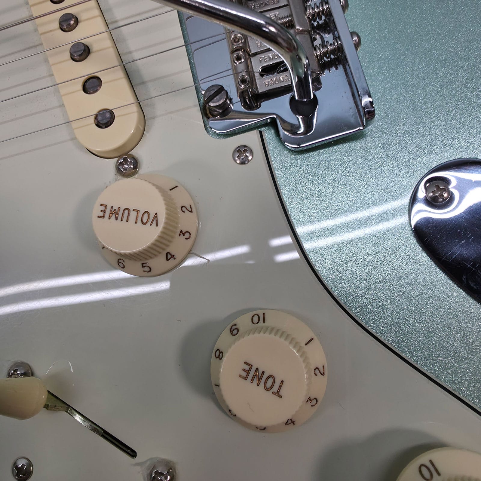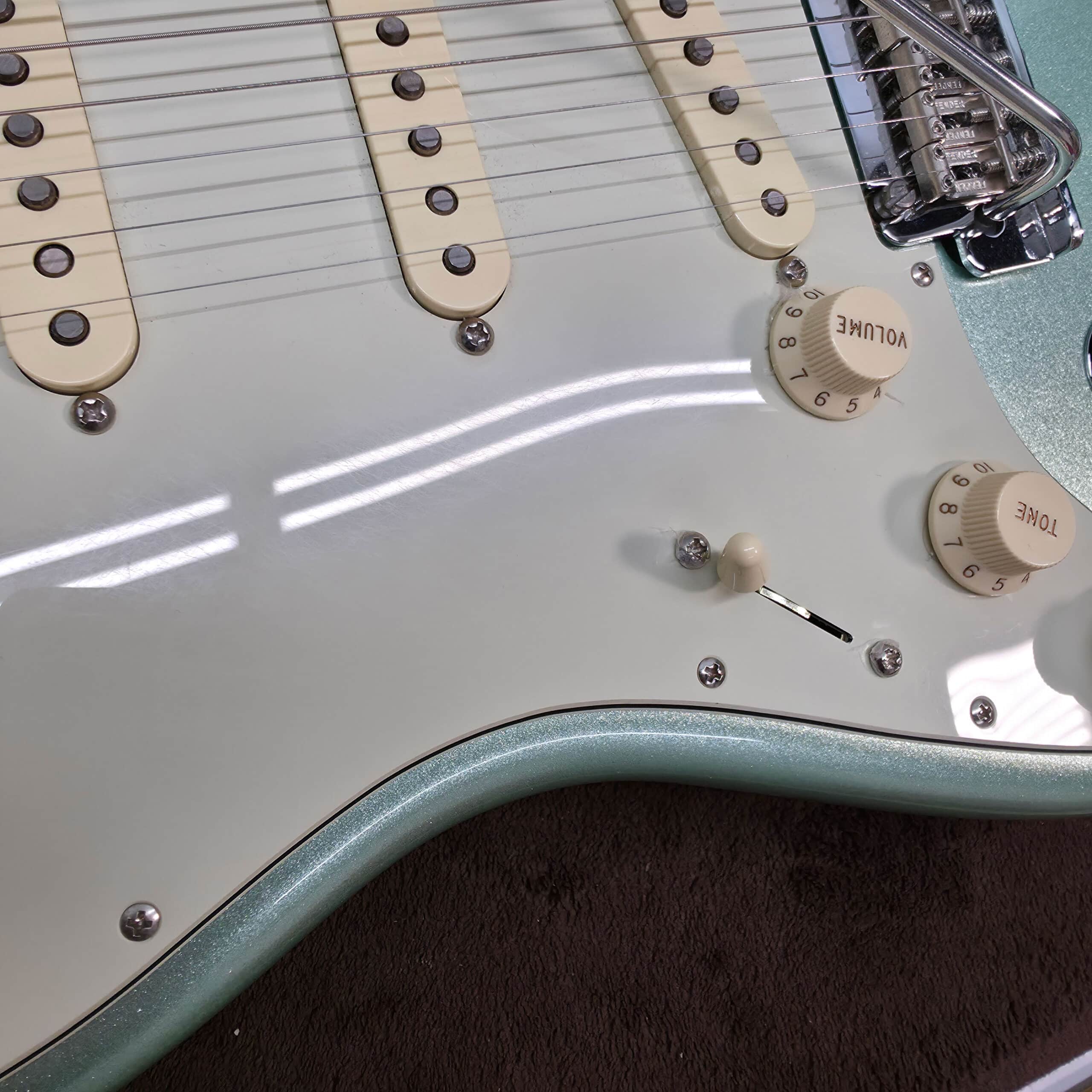 Under the hood, this Strat is loaded with a trio of V-Mod II single-coil pickups. These were designed to deliver that iconic Strat chime and sparkle, but with enhanced clarity and articulation. They’re vintage-voiced but with a modern precision that cuts through a mix without getting harsh. But the real secret weapon is the push-push tone control. This little switch adds the neck pickup to positions one and two, unlocking those coveted Tele-style neck-and-bridge tones or letting all three pickups sing together for a full, funky voice you can’t get on a standard Strat. It’s a massive expansion of your tonal palette.