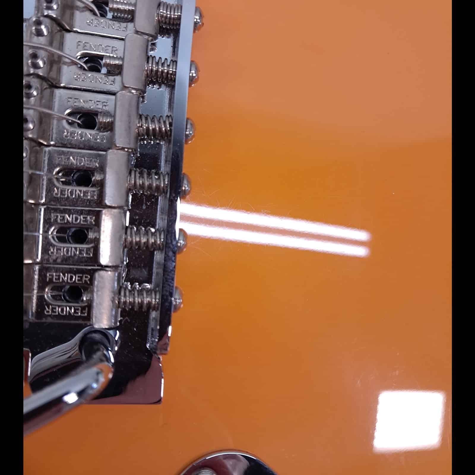 Fender nailed the feel on this one. The Modern “C” neck profile is a comfortable, crowd-pleasing shape that feels right at home for any playing style. Paired with a 9.5″ fingerboard radius and 22 medium-jumbo frets, you get a modern platform that’s perfect for big bends and fast runs without fretting out. The satin finish on the back of the neck is buttery smooth, ensuring your hand never gets stuck, whether you’re grabbing chords or flying up the fretboard. Add in the 2-point synchronized tremolo for smooth, stable pitch control, and you’ve got a guitar that’s built to perform.