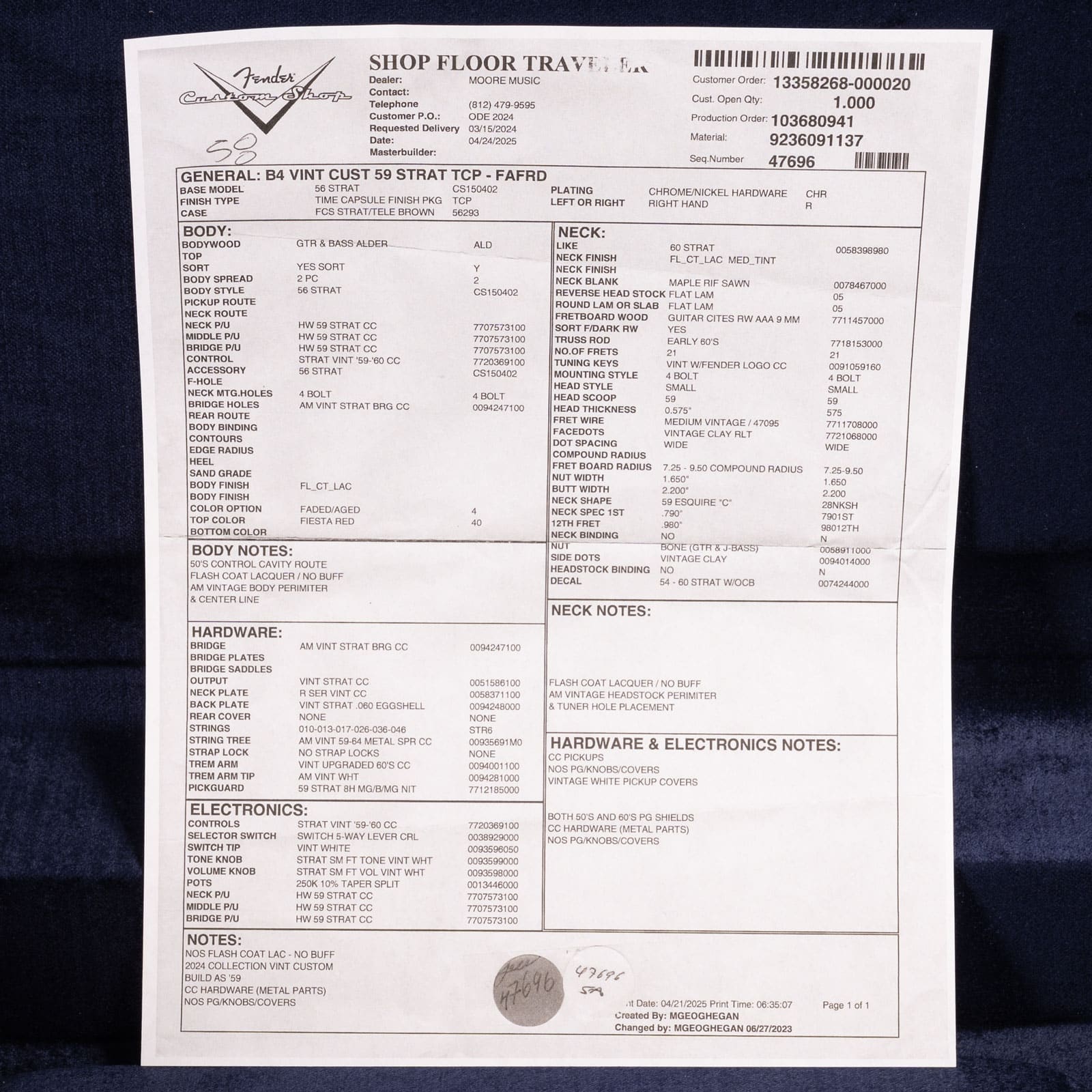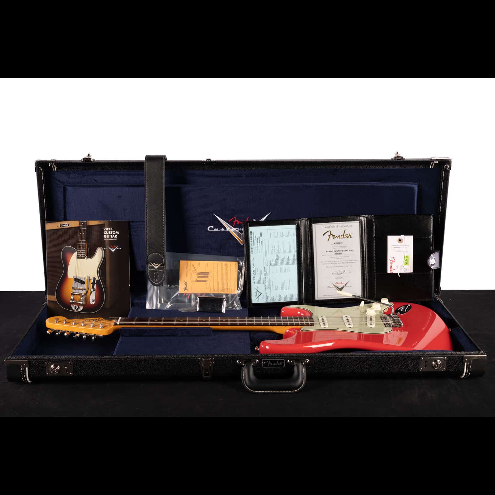 Here’s a guitar that captures the very essence of a golden-era Stratocaster. This pre-owned Fender Custom Shop ’59 Stratocaster is a masterclass in vintage vibe, built for the player who craves authentic tone and a neck that just begs to be played. From its Faded Aged Fiesta Red finish—part of the Time Capsule package that gives it the look of a perfectly preserved case queen—to the stunning AAA Rosewood slab board, this guitar is a time machine back to one of Fender’s most pivotal years. The attention to detail is staggering, delivering a truly inspiring playing experience.