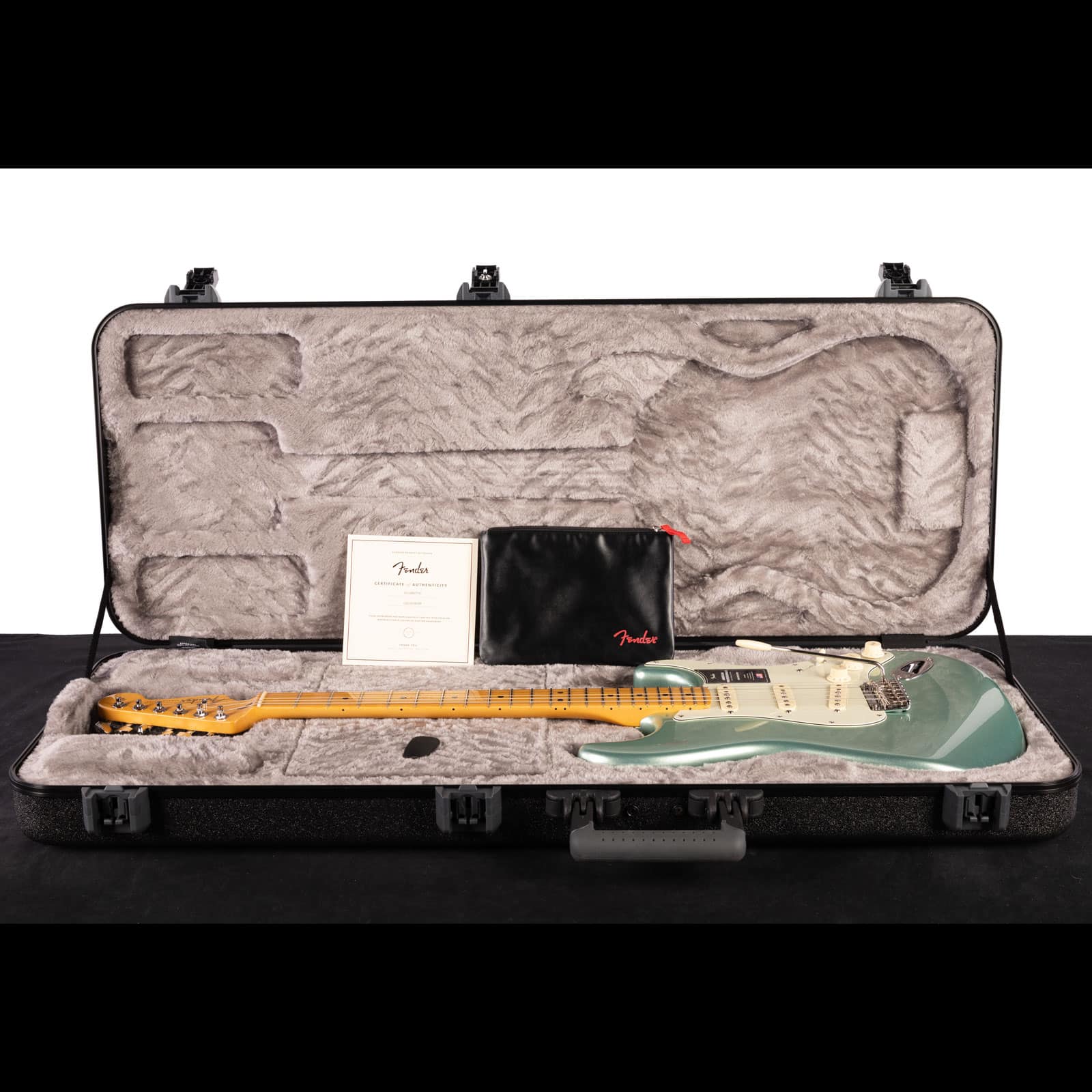 Every piece of hardware is designed for stability and performance. The upgraded 2-point synchronized tremolo features a cold-rolled steel block, which enhances sustain, clarity, and top-end sparkle. The pop-in tremolo arm stays put, and the bent steel saddles provide a classic feel and tone. Combined with the Fender Standard cast/sealed staggered tuners and a genuine bone nut, this Strat holds its tuning exceptionally well, even with heavy whammy bar use. It’s a professional-grade instrument built for the rigors of the road and the precision of the studio.