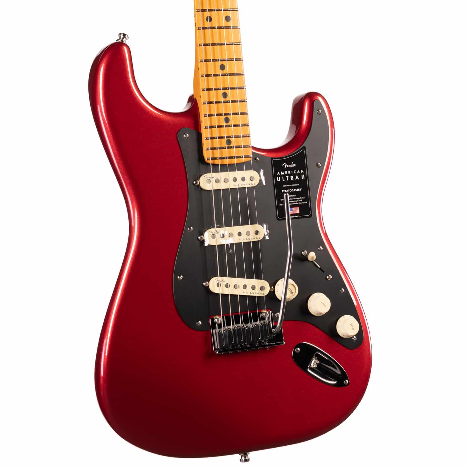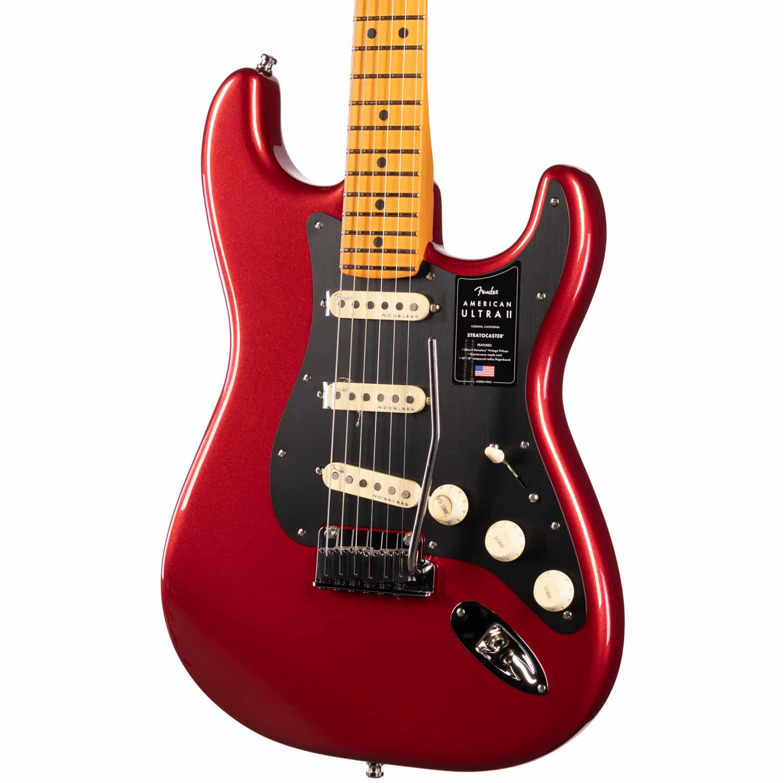 Meet the Fender American Ultra II Stratocaster—a guitar that feels both familiar and entirely new. Fender took the iconic Strat platform and supercharged it with modern appointments for the player who demands precision, versatility, and flawless performance. The select alder body resonates with that classic Fender tone you know and love, while the sculpted rear contours and tapered neck heel make this one of the most comfortable and accessible Strats you’ll ever pick up. Dressed in a stunning Sinister Red gloss finish, it’s a guitar that looks as serious as it sounds.