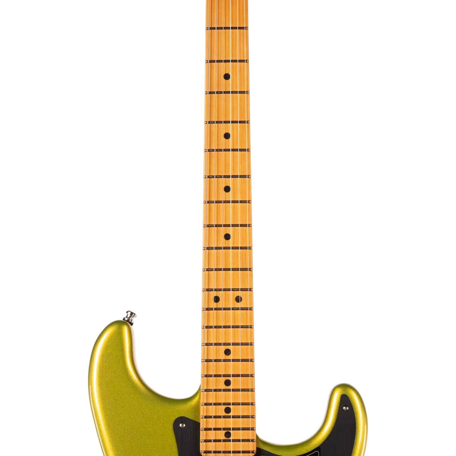 The select alder body keeps things balanced and familiar, with that focused Strat midrange that sits right in the mix. Sculpted body contours and a tapered neck heel make upper fret access feel almost effortless, so those high bends and wide vibrato lines are no fight at all.