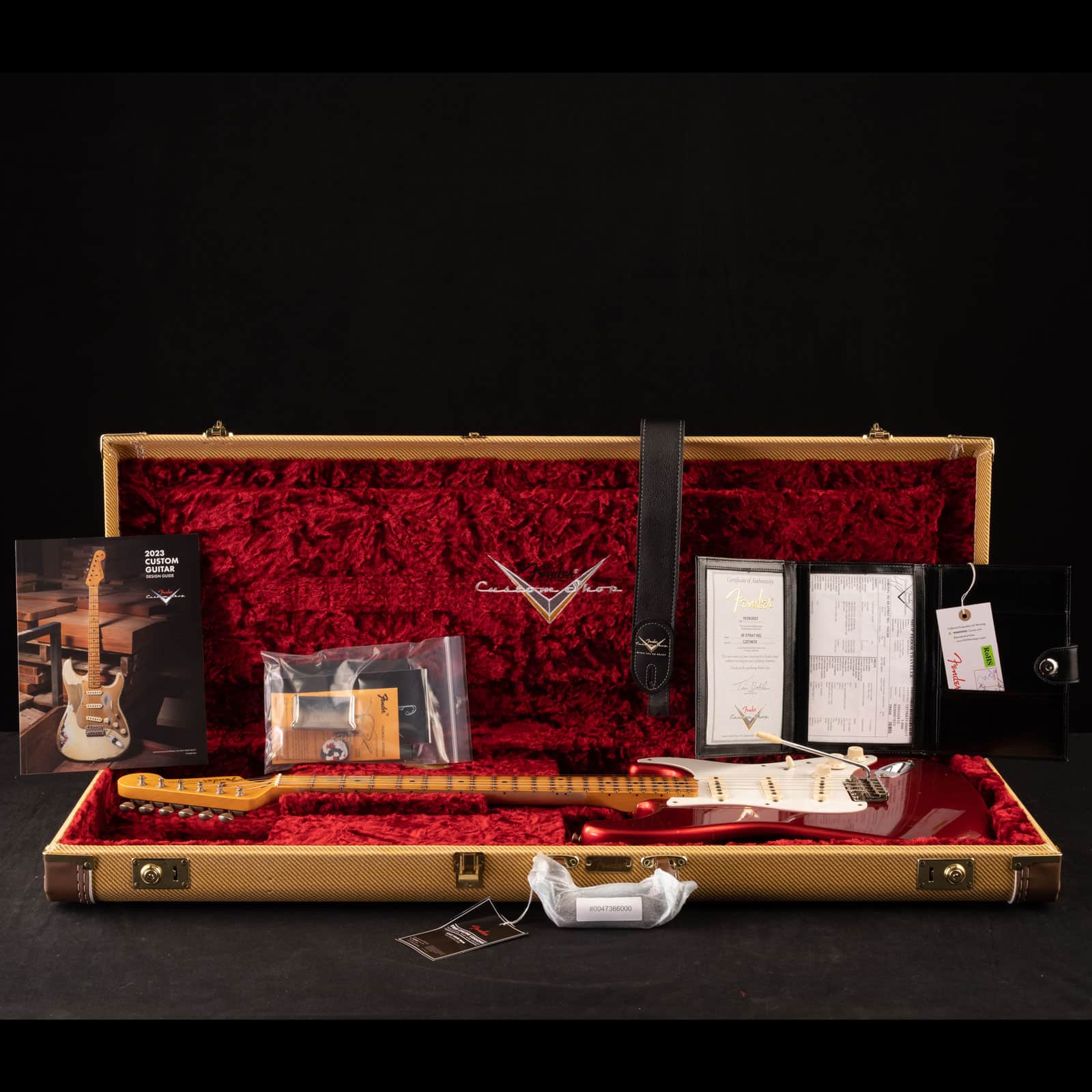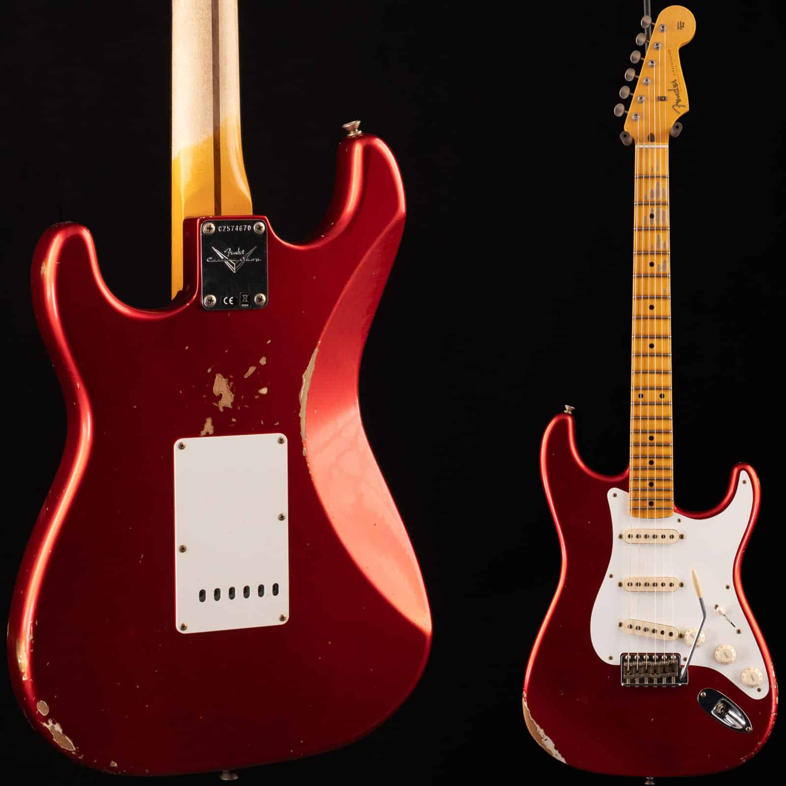 This is not a parts caster dressed up to look old. You are getting a full Custom Shop build with vintage spec hardware, 50s style truss rod, 4 bolt neck construction, and all the little touches that make a pro level Strat feel dialed right in. Serial CZ574670 is the exact guitar in the photos, and it ships in a Custom Shop Strat/Tele tweed case.
