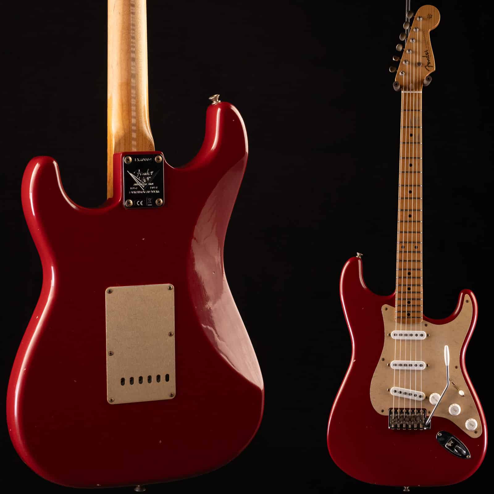 Three Custom Shop hand-wound ’54 Strat pickups deliver that clear, glassy Strat voice everybody chases. The bridge has bite and cut without getting ice-picky, the neck is round and vocal, and the middle is pure chime.