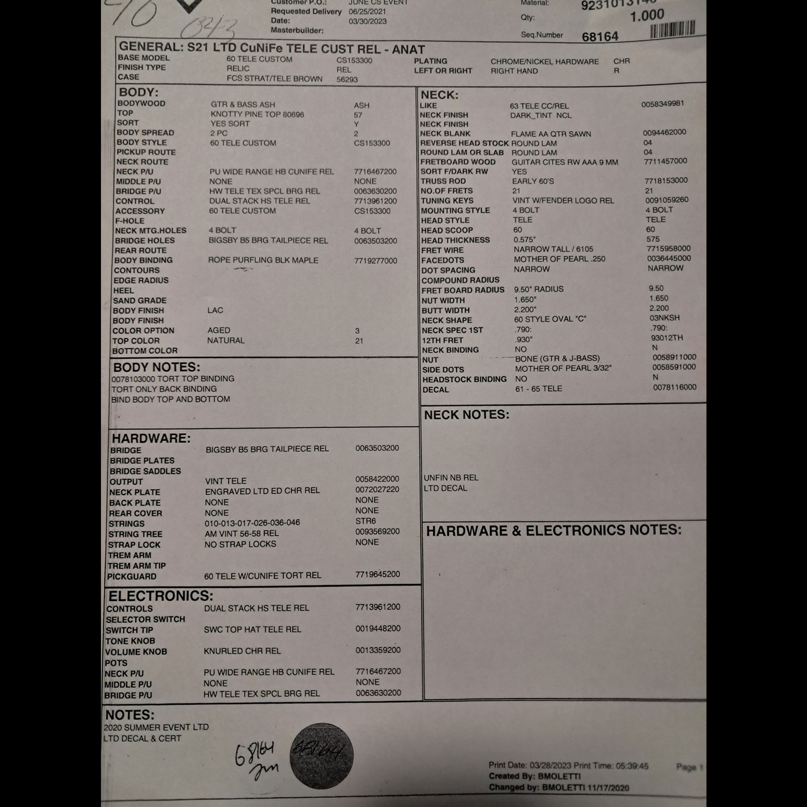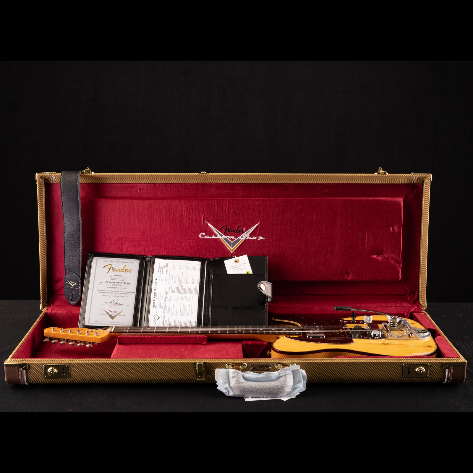 This is an LTD Fender Custom Shop build—so you’re not just buying a Tele, you’re buying a piece of what the best builders in Corona do when they’re let off the leash. Every detail is dialed: 4-bolt neck joint, early-60s truss rod spec, period-correct headstock and decal, relic hardware that feels broken-in but solid.