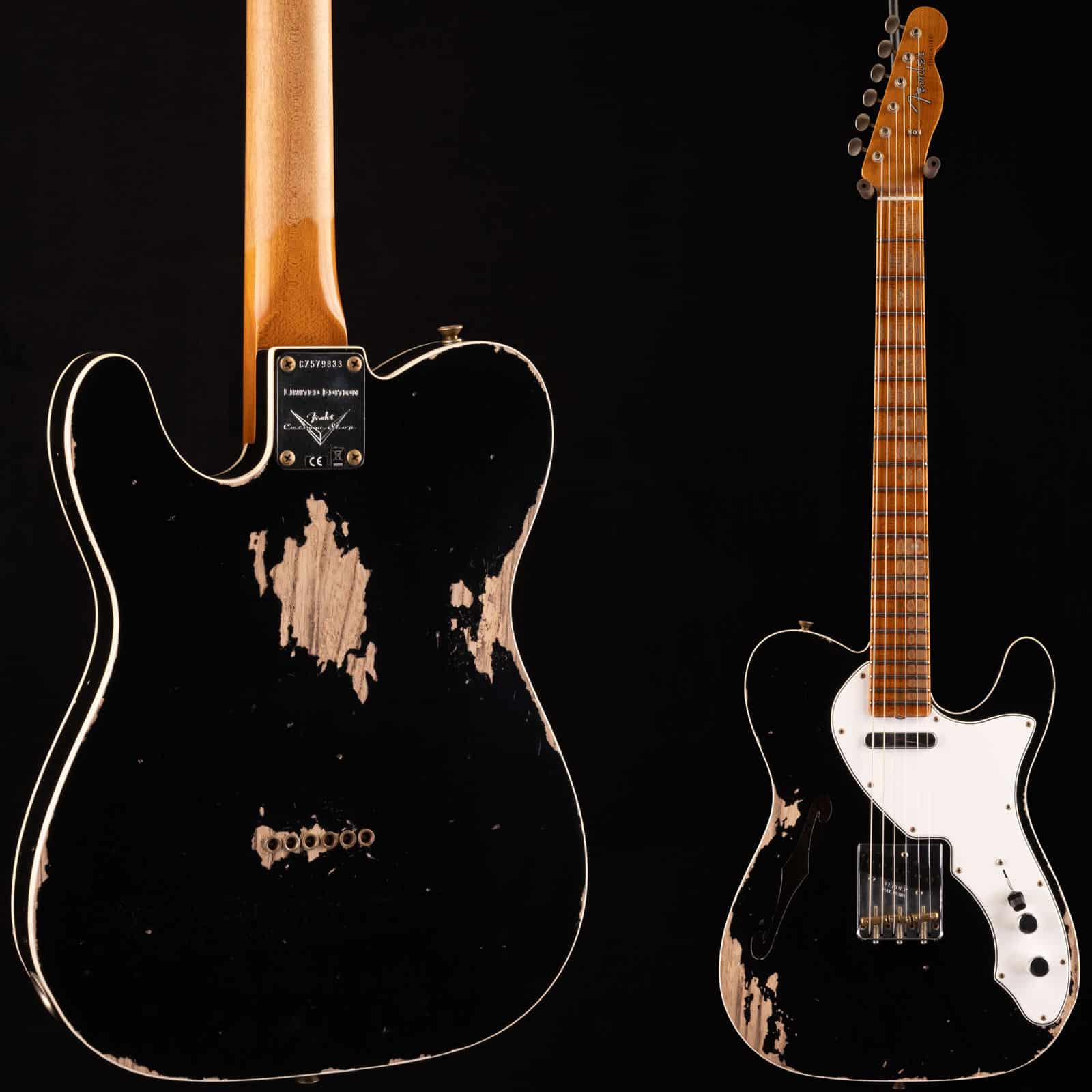 This Fender Custom Shop LTD Custom Telecaster Thinline Heavy Relic is what happens when a classic Blackguard gets put on a strict weight-loss plan and handed to the best builders in Corona. At 6.6 lbs with an ash Thinline body and roasted maple neck, it has that immediate, alive-in-your-hands resonance that makes you want to keep playing long after rehearsal should have ended.
