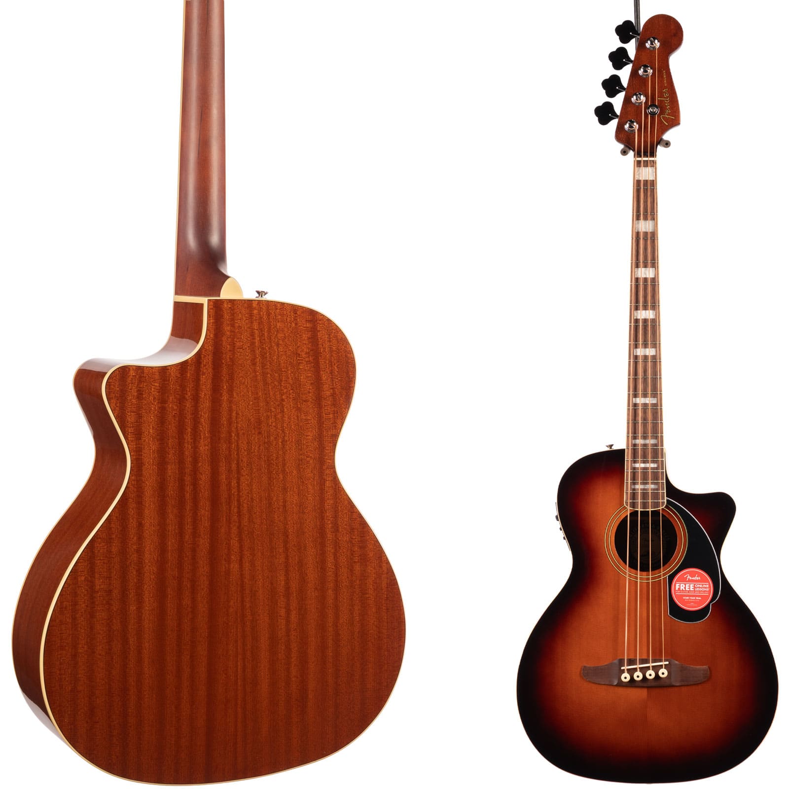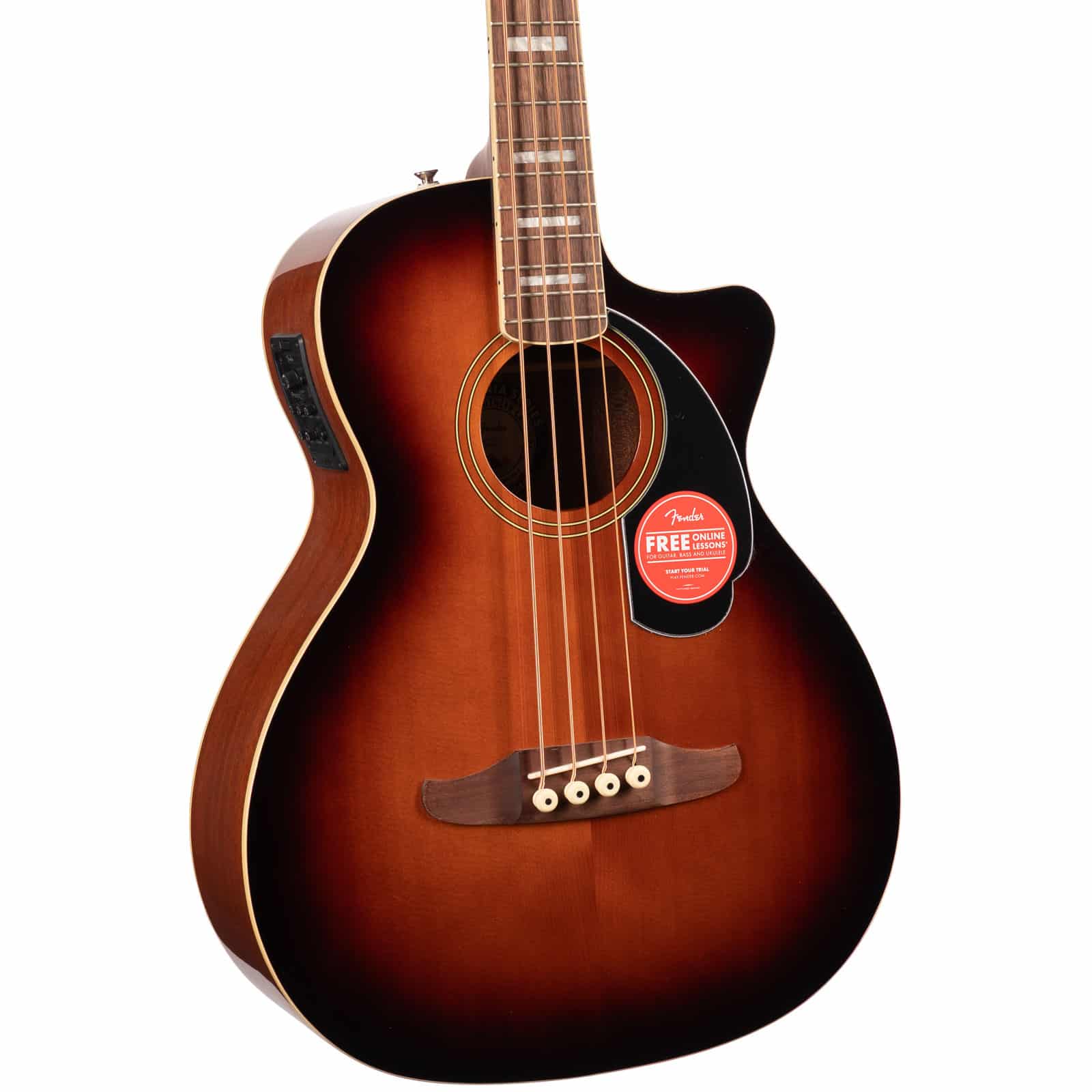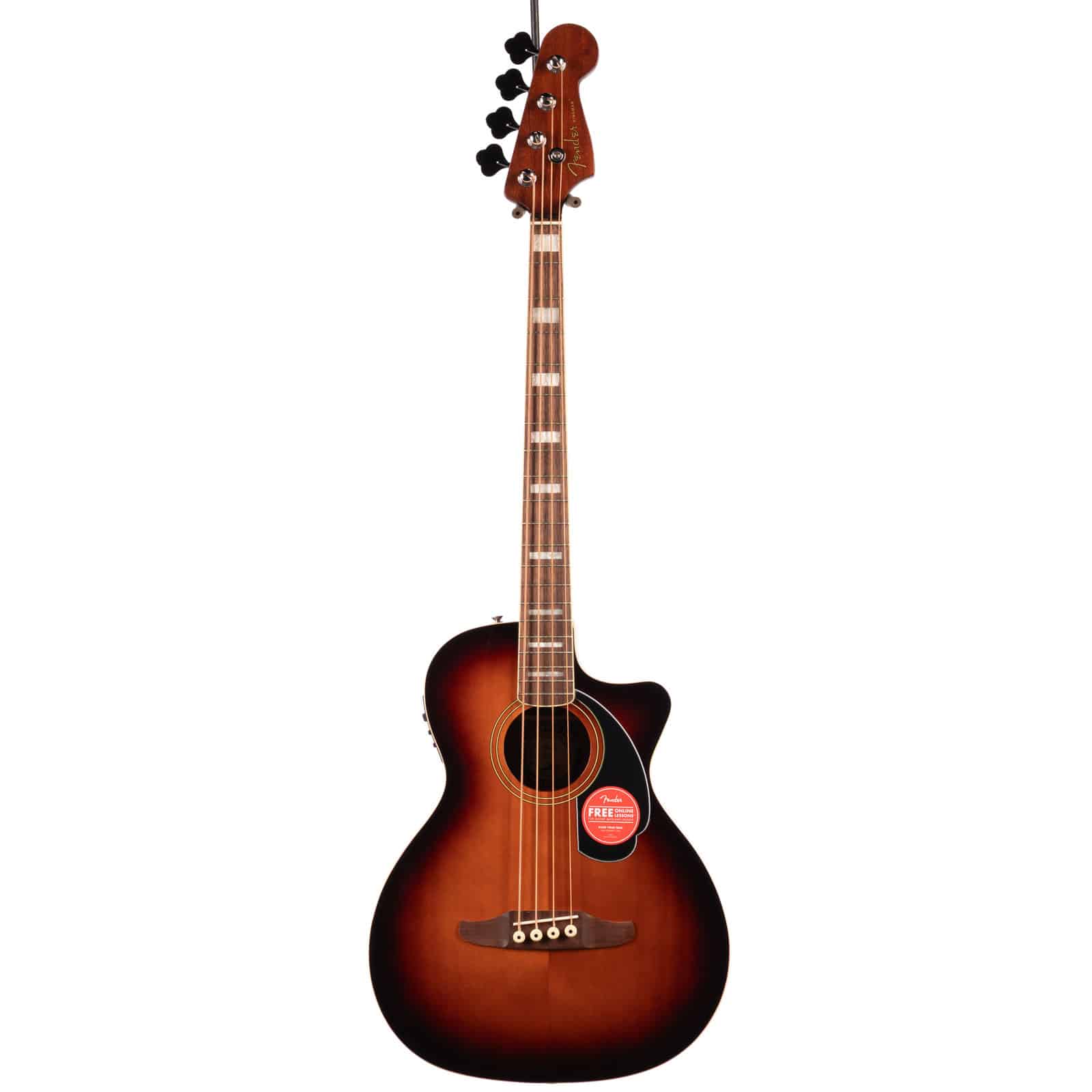 Let’s talk playability. The nato neck features Fender’s legendary slim “C” profile—borrowed directly from their iconic Jazz Bass®—making it incredibly comfortable and fast. Combined with the shorter scale length and a 12″ radius walnut fingerboard, this bass practically plays itself. The cutaway body gives you unhindered access to the upper frets, while the Graph Tech® NuBone™ nut ensures rock-solid tuning stability and focused tone. It’s the perfect blend of acoustic character and electric-style comfort, built for players who refuse to compromise.