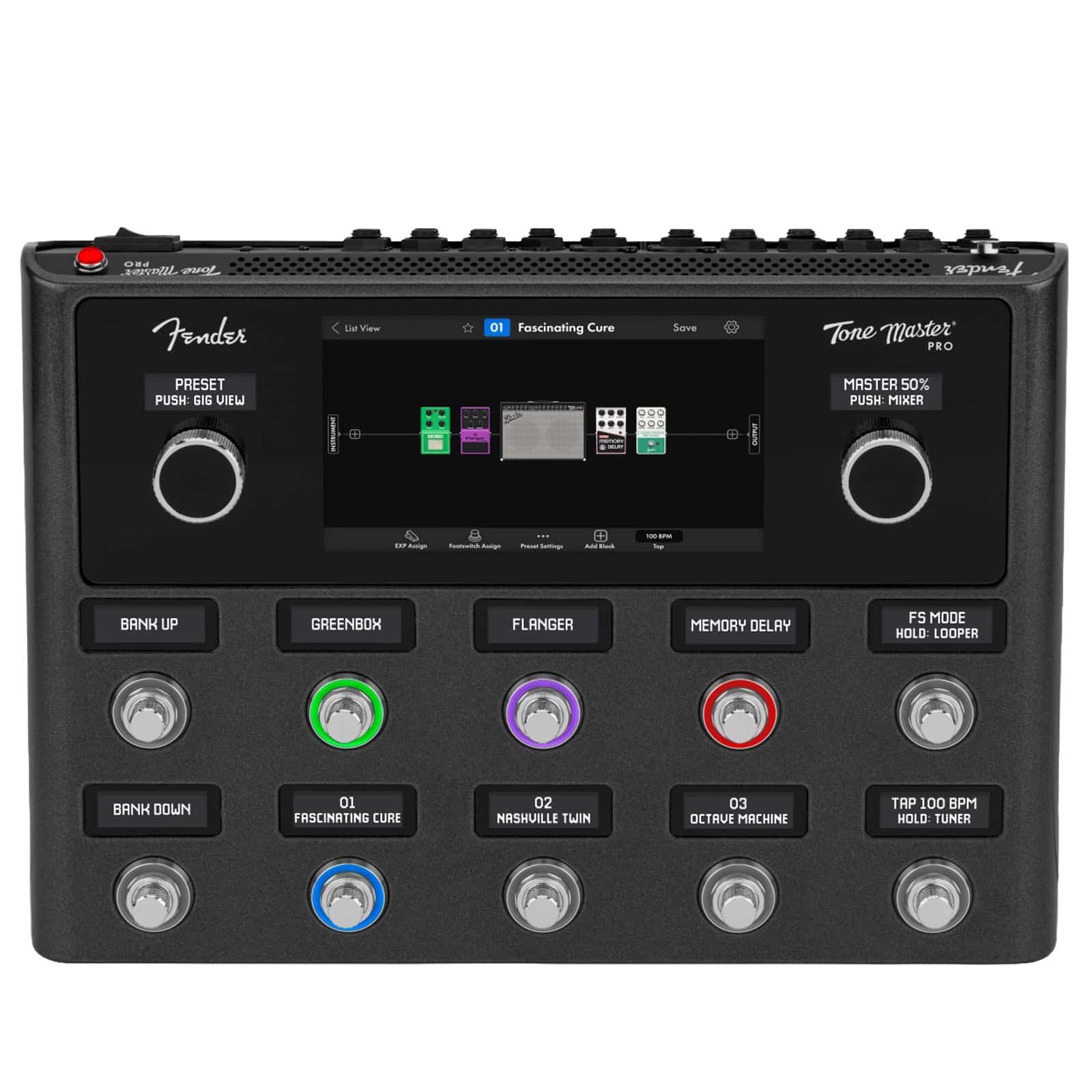 Create Presets, customize your footswitch assignments and combine them to create Songs and organize into Setlists with ease. Tone Master Pro’s 10 custom-designed footswitch encoders make editing a breeze, giving you instant access to all your presets and parameters and make adjustments just like you would on the real thing. Connect to our Tone Master Pro Control app via USB for creating, editing and sharing your own presets or for auditioning and downloading thousands of tones created by Fender’s community of players and artists.