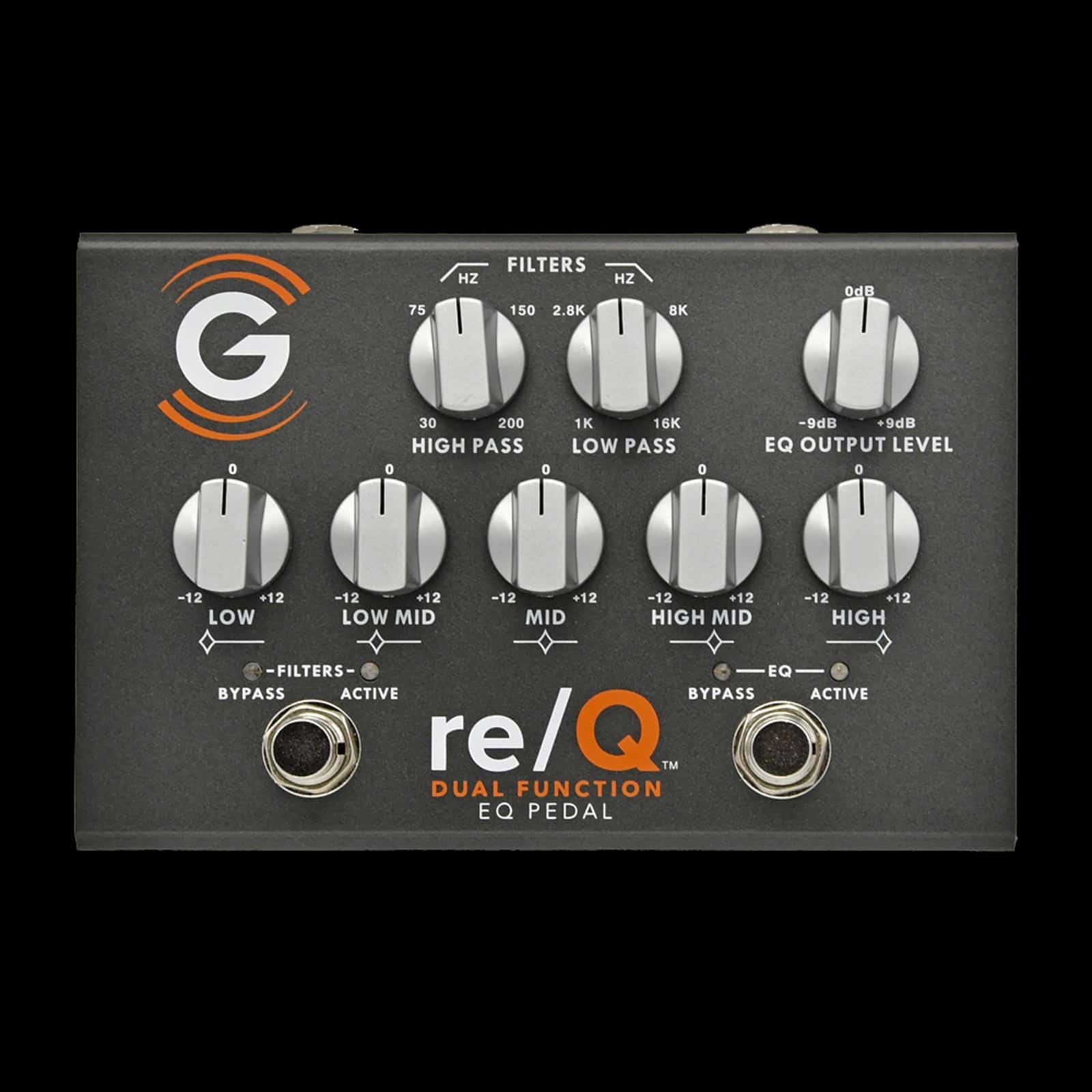 The re/Q™ DUAL FUNCTION EQ PEDAL is a low noise, ALL ANALOG multi-function HIGH PASS FILTER – LOW PASS FILTER and 5 BAND EQ pedal that gives the player complete tonal control over the cut-off of the extreme low and high frequencies, plus 5 bands of peak-dip equalization. The filter section is foot switched independently from the EQ section, and there is additional make-up gain or cut after the EQ for balancing of levels or to act as an additional boost/cut function when the EQ is switched into the signal path. The re/Q is also a great companion to our 4 ON THE FLOOR Classic Overdrive Pedal. It can be used to tailor your instrument’s tone for various overdrive settings, or increased boost levels for any of the Overdrive gears.