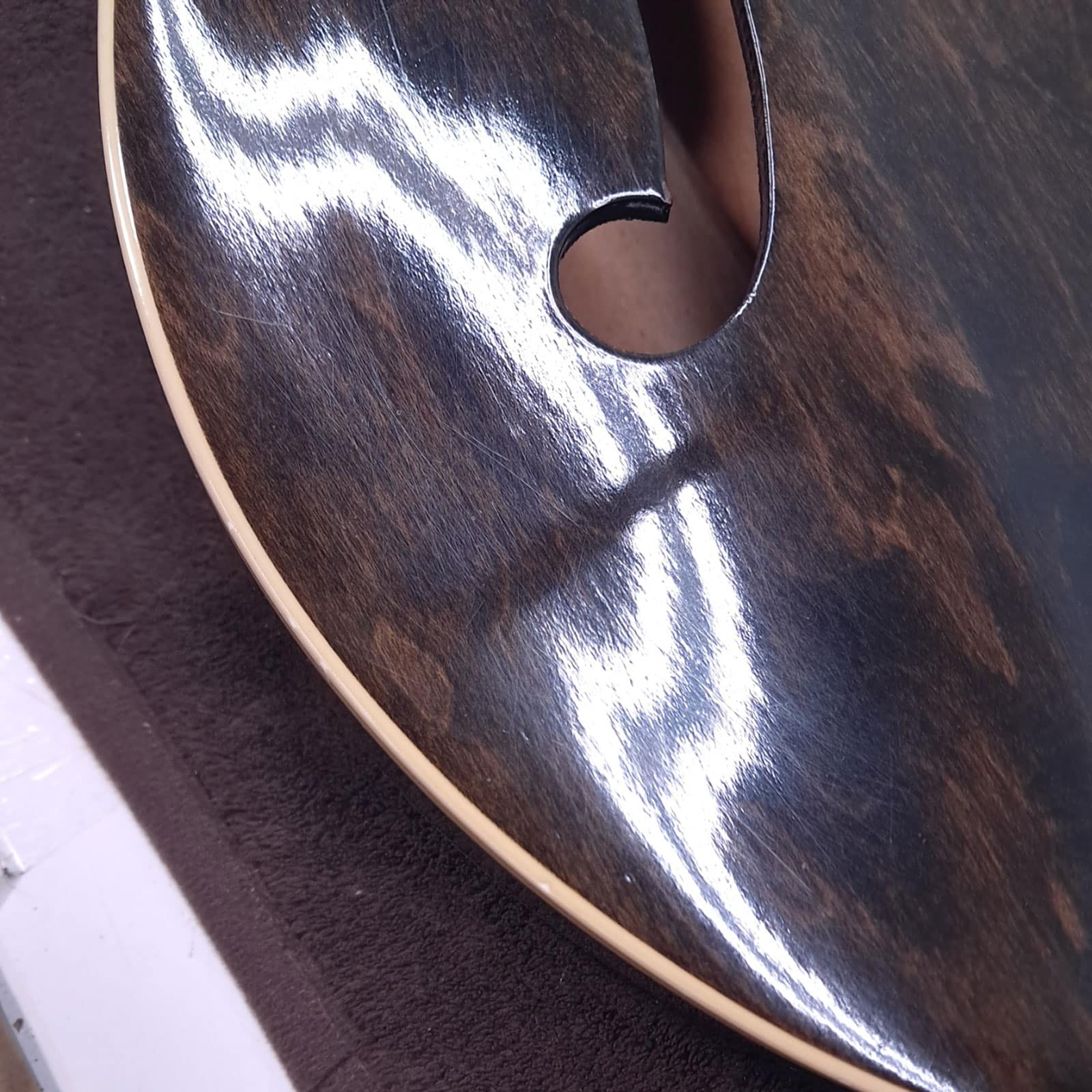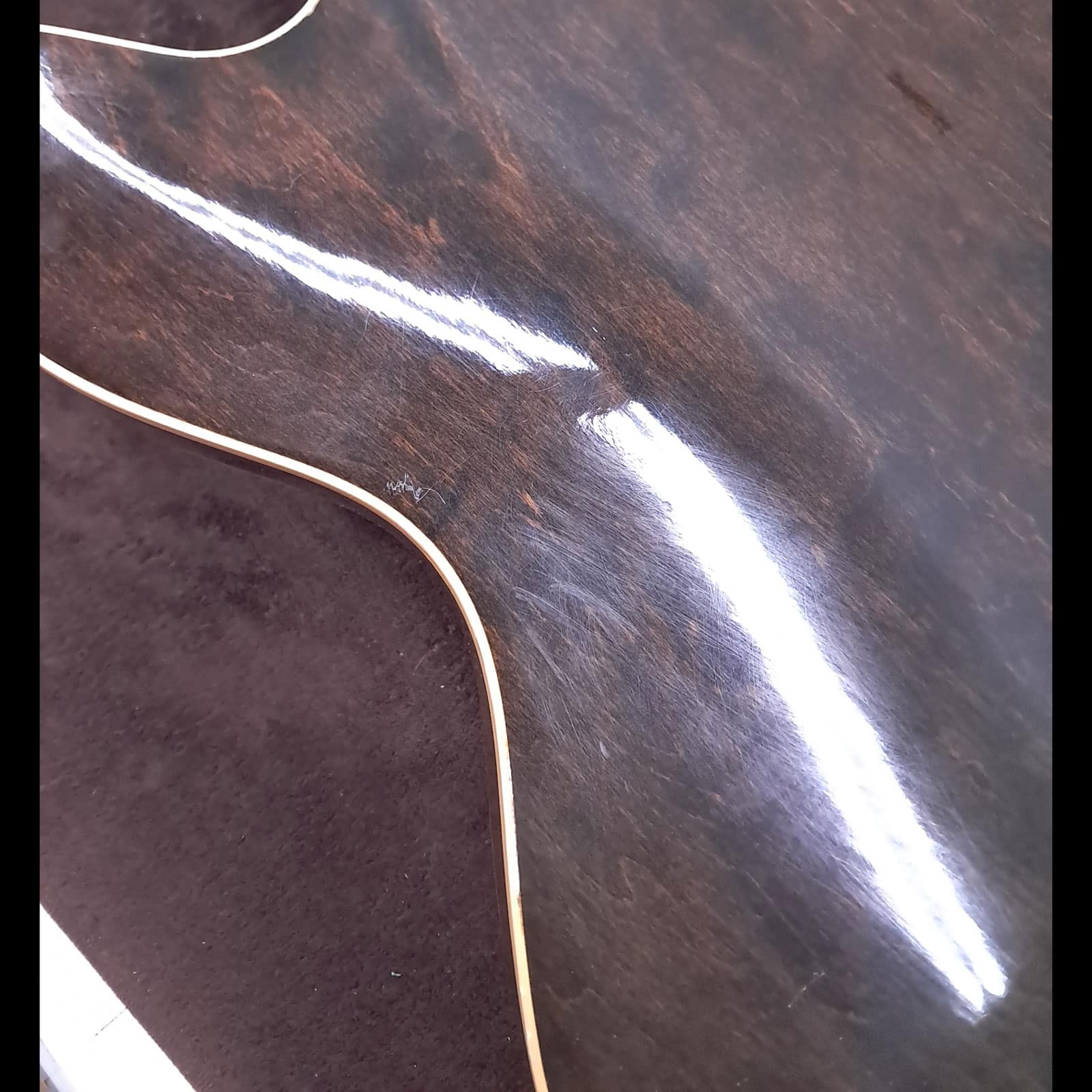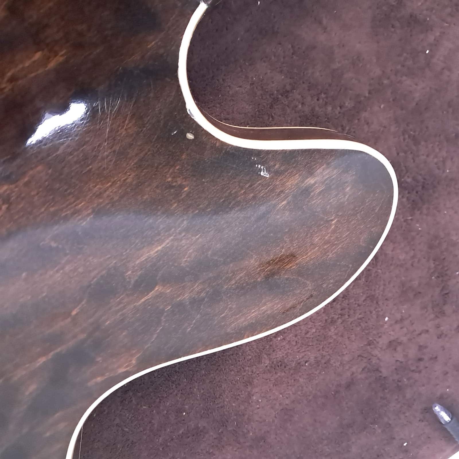 This guitar does not have a pickguard, and it appears that it was never drilled to have a pickguard