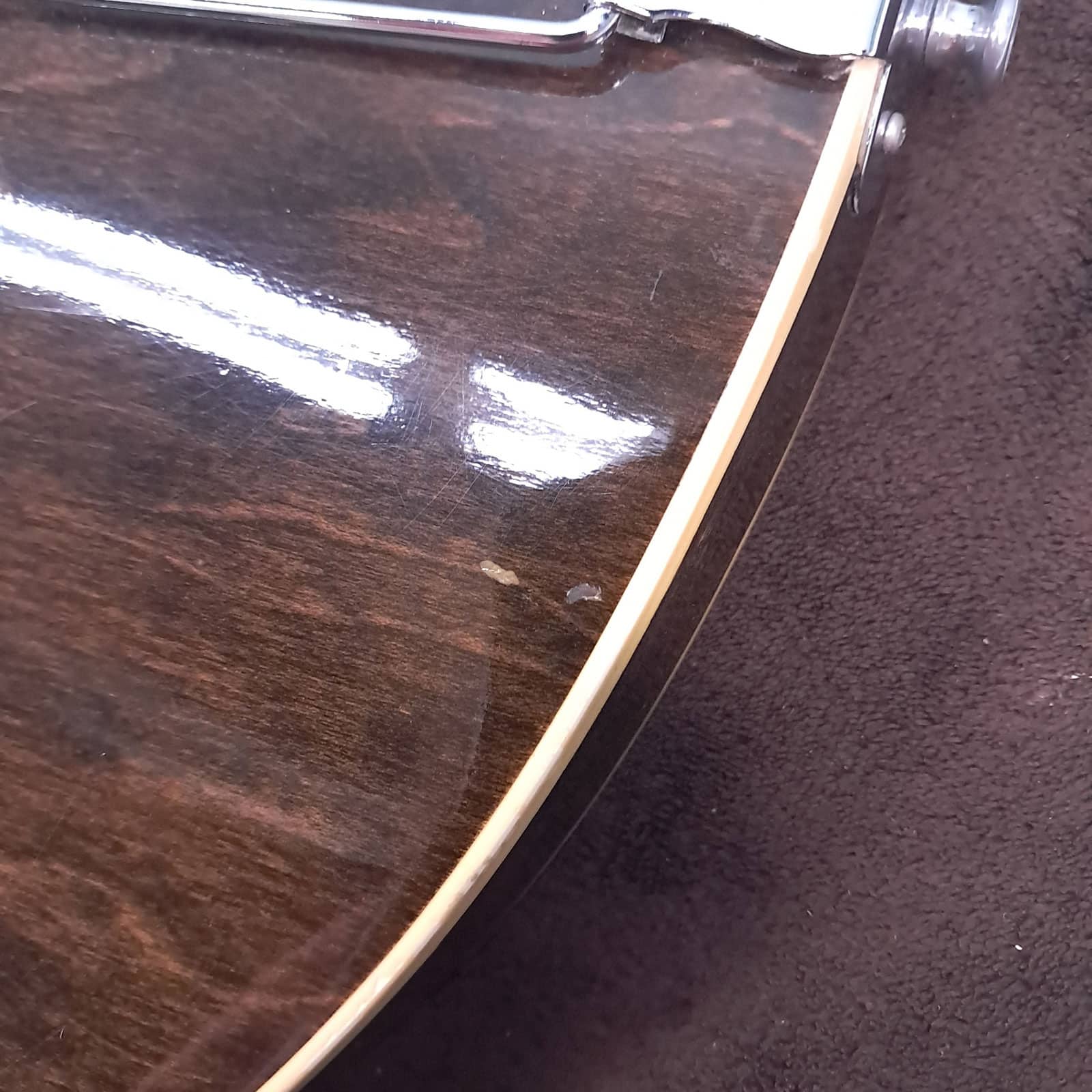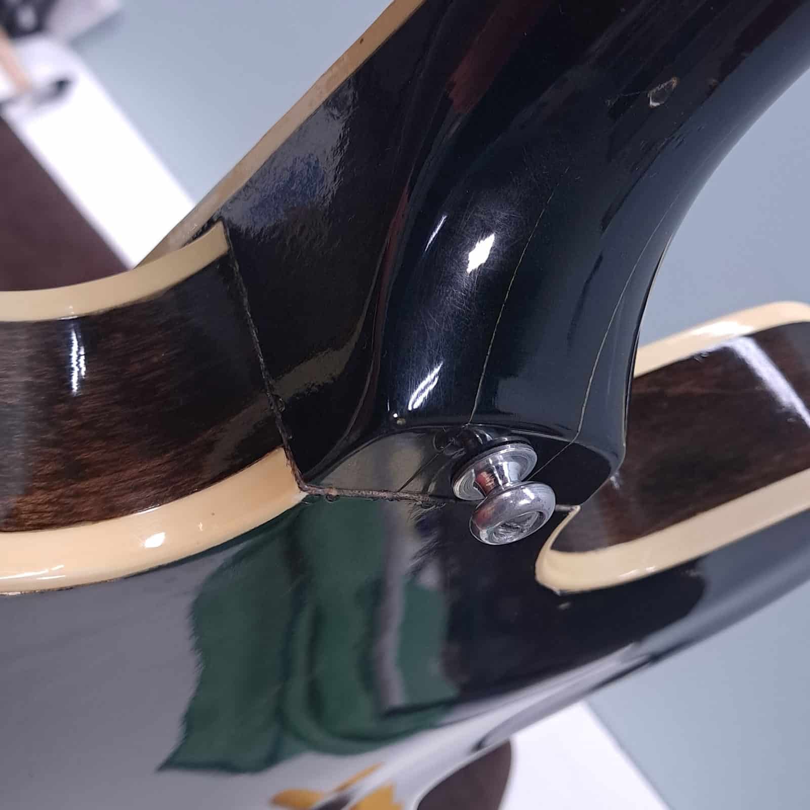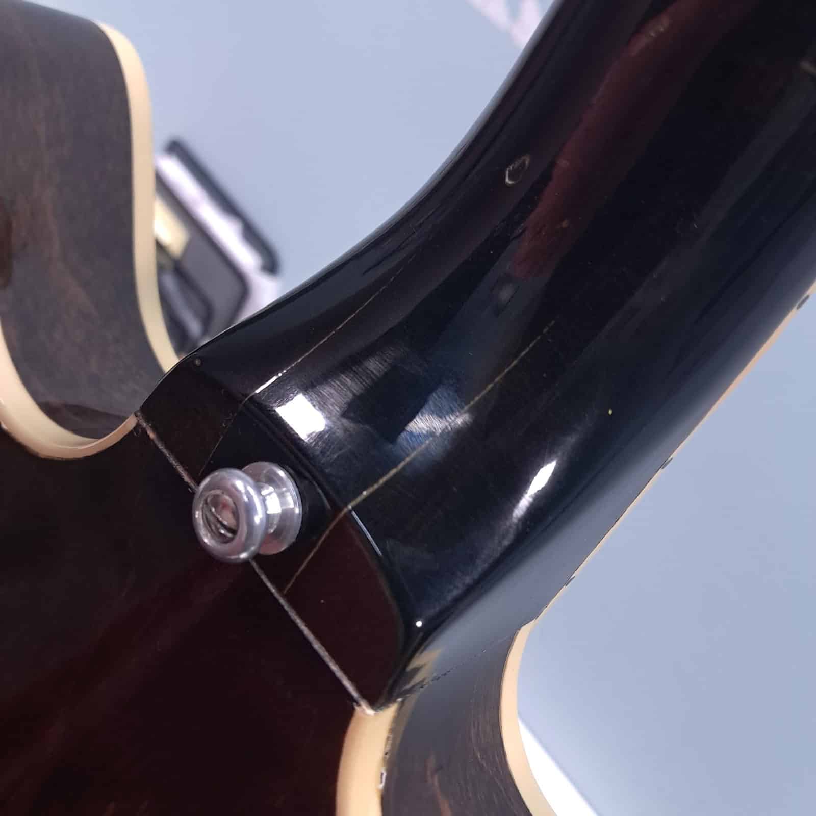 The serial number has been removed from the back of the peghead and the interior paper label is missing.