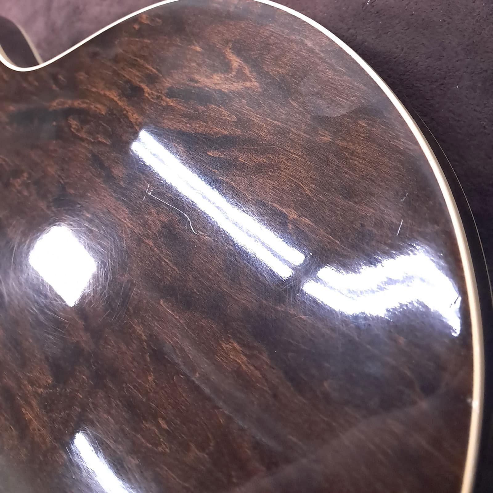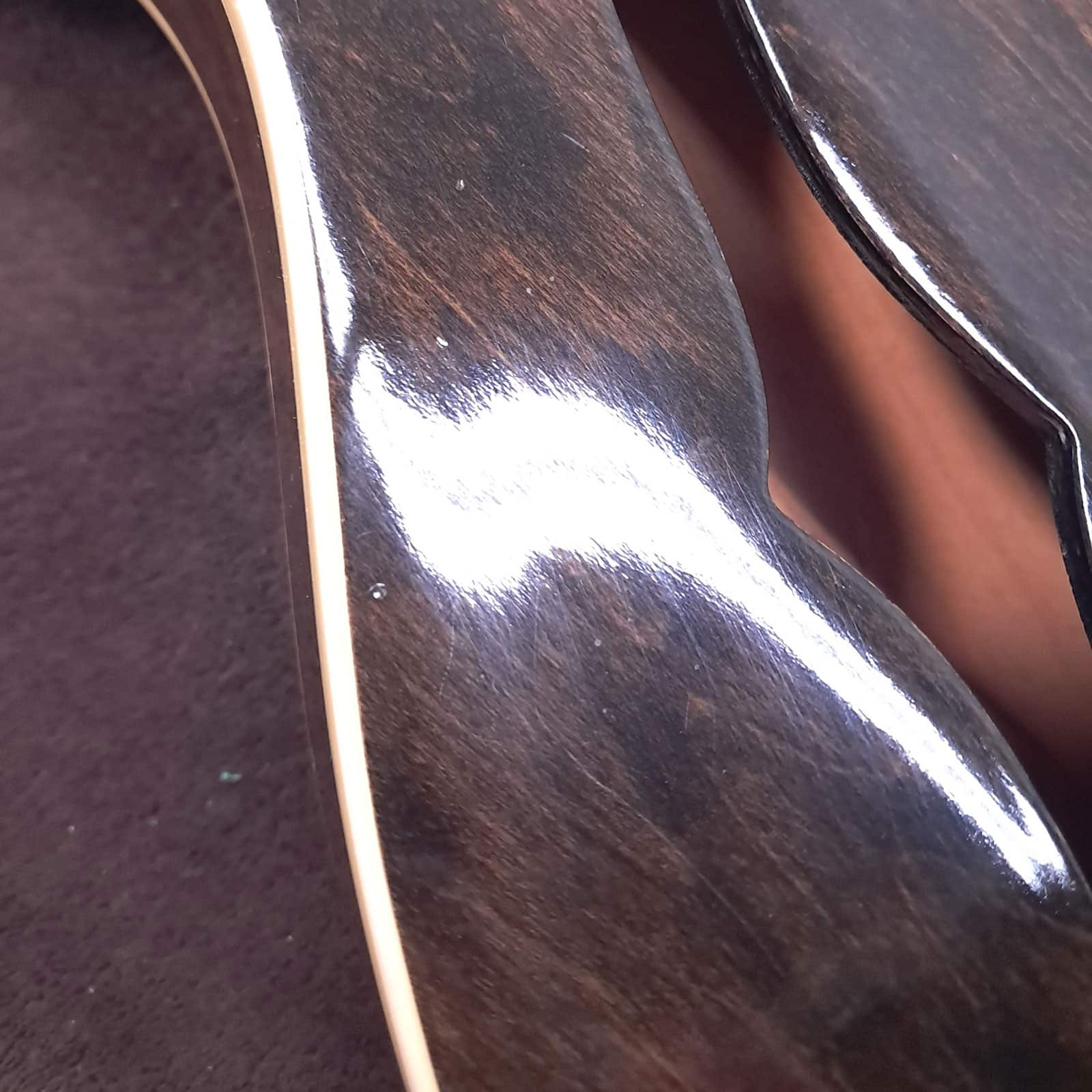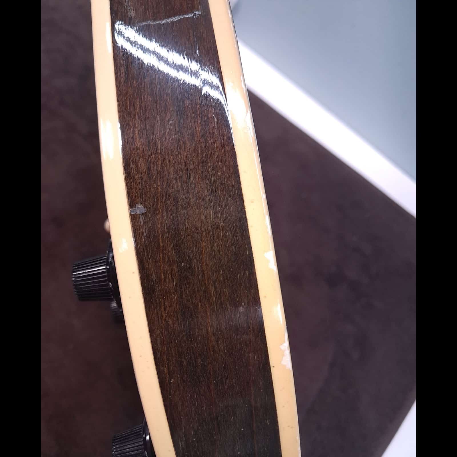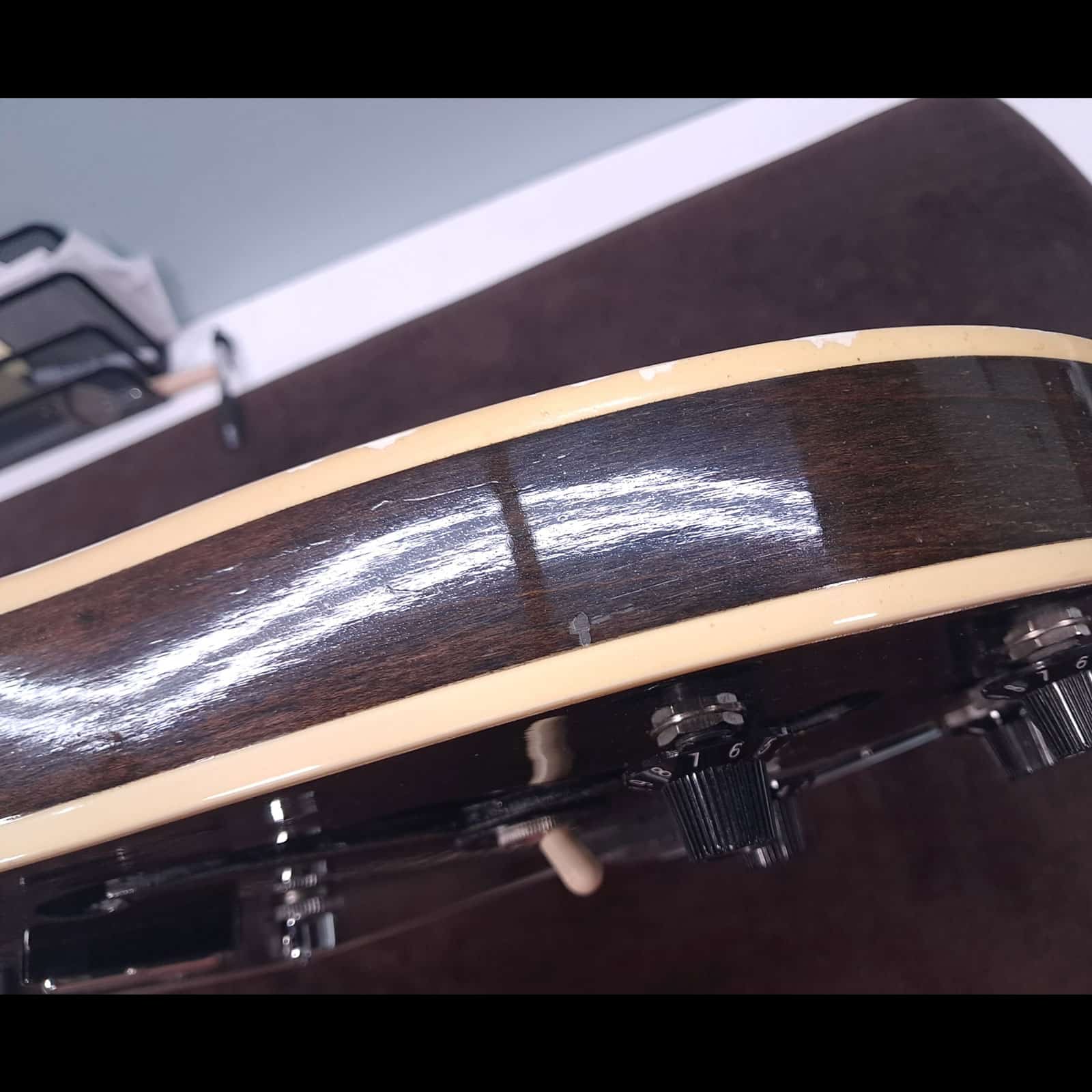 The serial number has been removed from the back of the peghead and the interior paper label is missing.