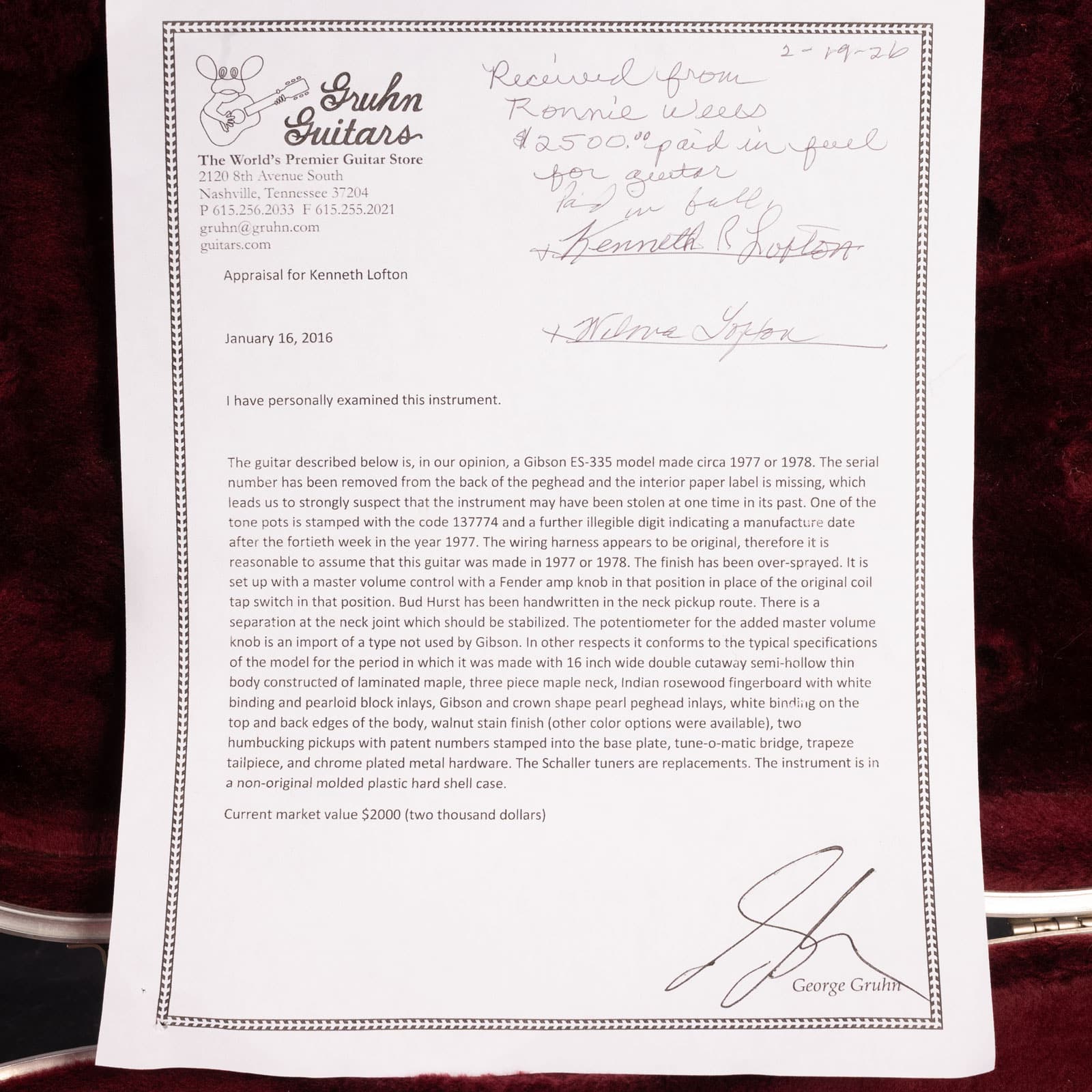 Full description of all of the mods, condition, and authentication done by George Gruhn from Gruhn Guitars and the letter is included with the guitar, and also has been photographed for the listing. See Photos!