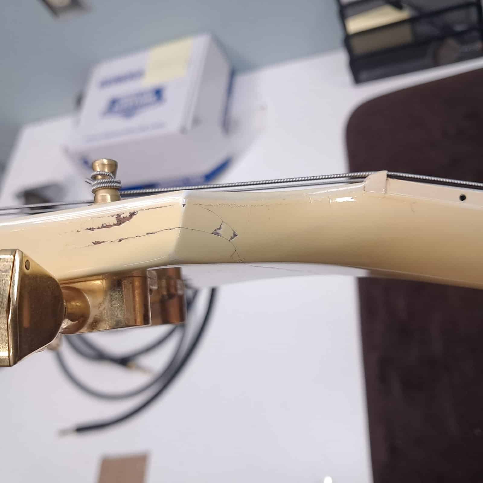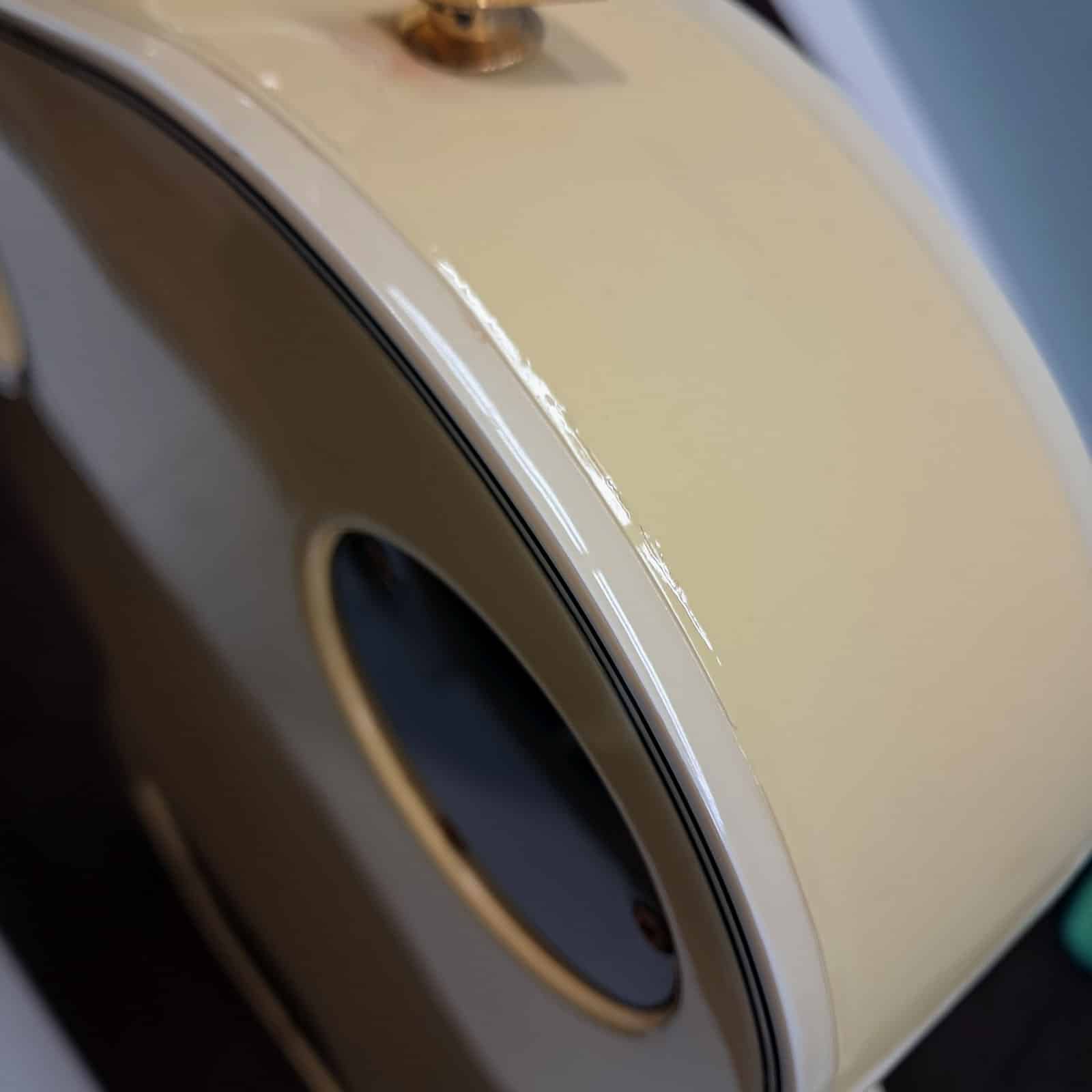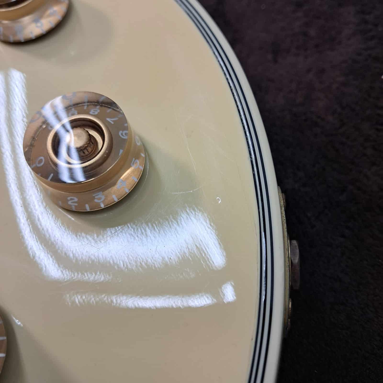 This isn’t just a guitar; it’s a piece of history. This 1983 Gibson Les Paul Custom has seen some stages and lived to tell the tale, carrying the authentic mojo that only comes from decades of being played. Finished in a classic White that has aged into a gorgeous, creamy patina, this guitar has an undeniable vintage vibe. Real talk—it’s had a professional headstock repair back in 2009, a solid fix that has kept it stable and singing for over a decade. This is your chance to get into a true ’80s Custom with honest playwear at a fantastic value.