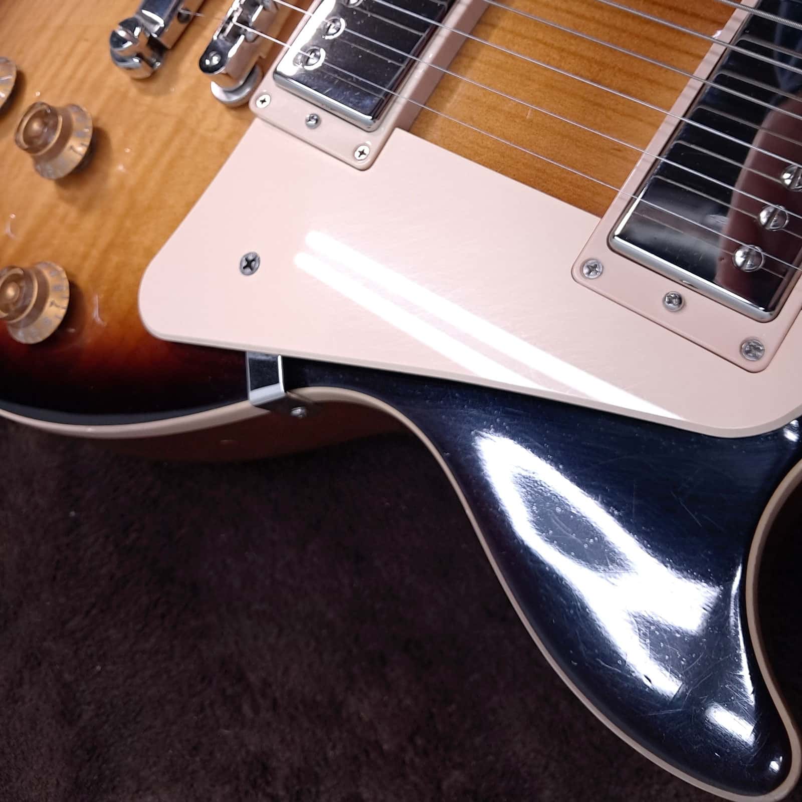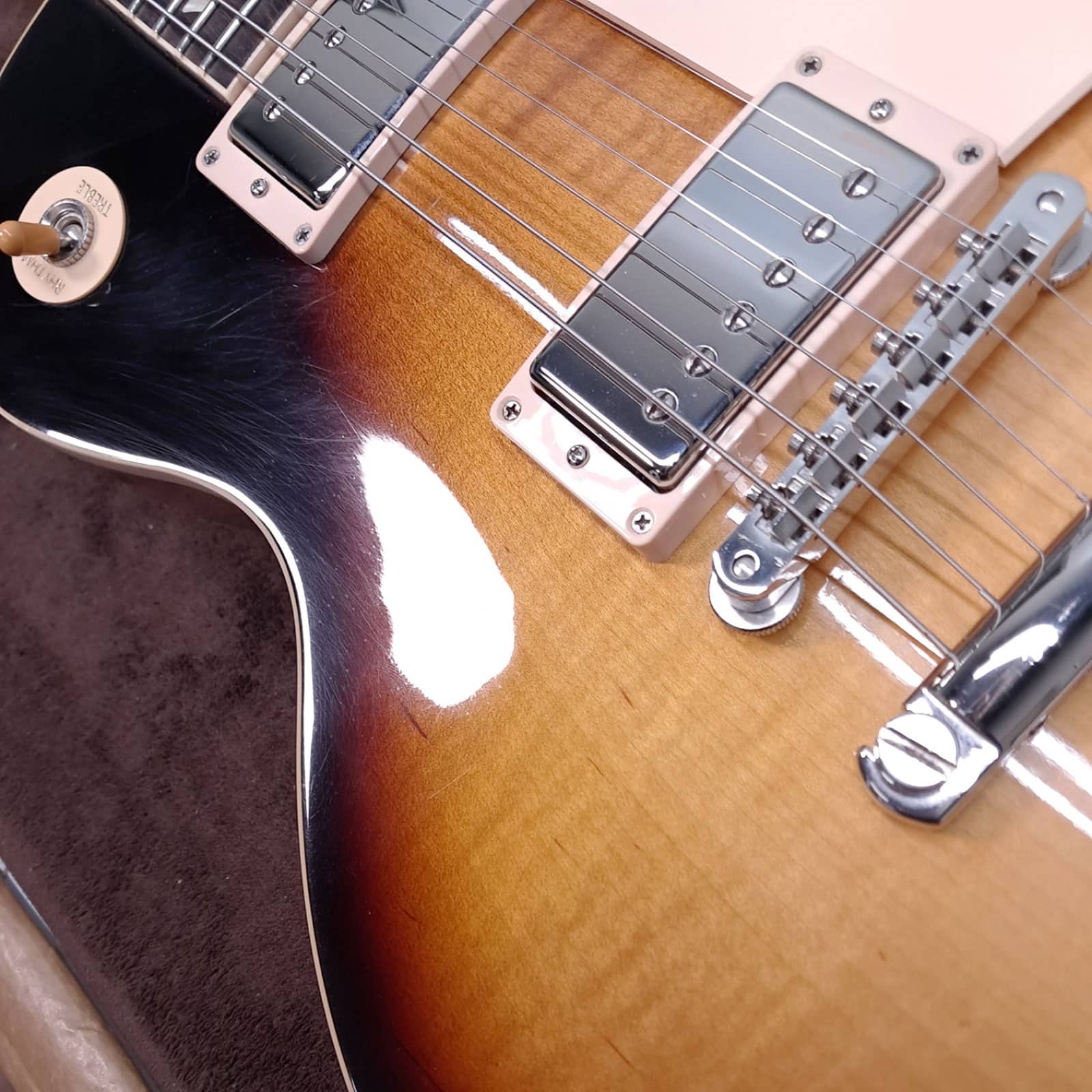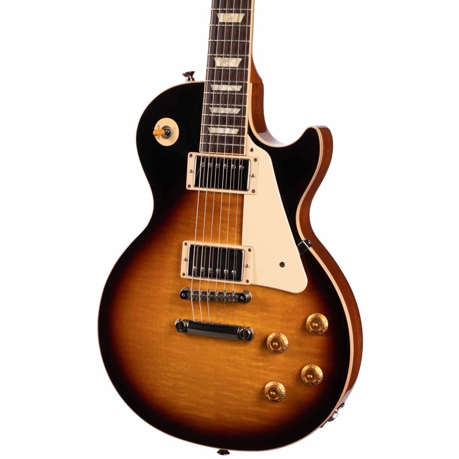 Under the hood, it’s pure Gibson muscle. A **Burstbucker 1 in the neck** and a slightly hotter **Burstbucker 2 in the bridge** deliver that coveted PAF-style tone. The neck pickup is warm, open, and articulate—perfect for glassy cleans and soulful leads. Kick over to the bridge, and you get the immediate punch, bite, and harmonic complexity that defined rock and roll. The controls are hand-wired with Orange Drop capacitors, ensuring every ounce of that glorious analog tone makes it to your amp.