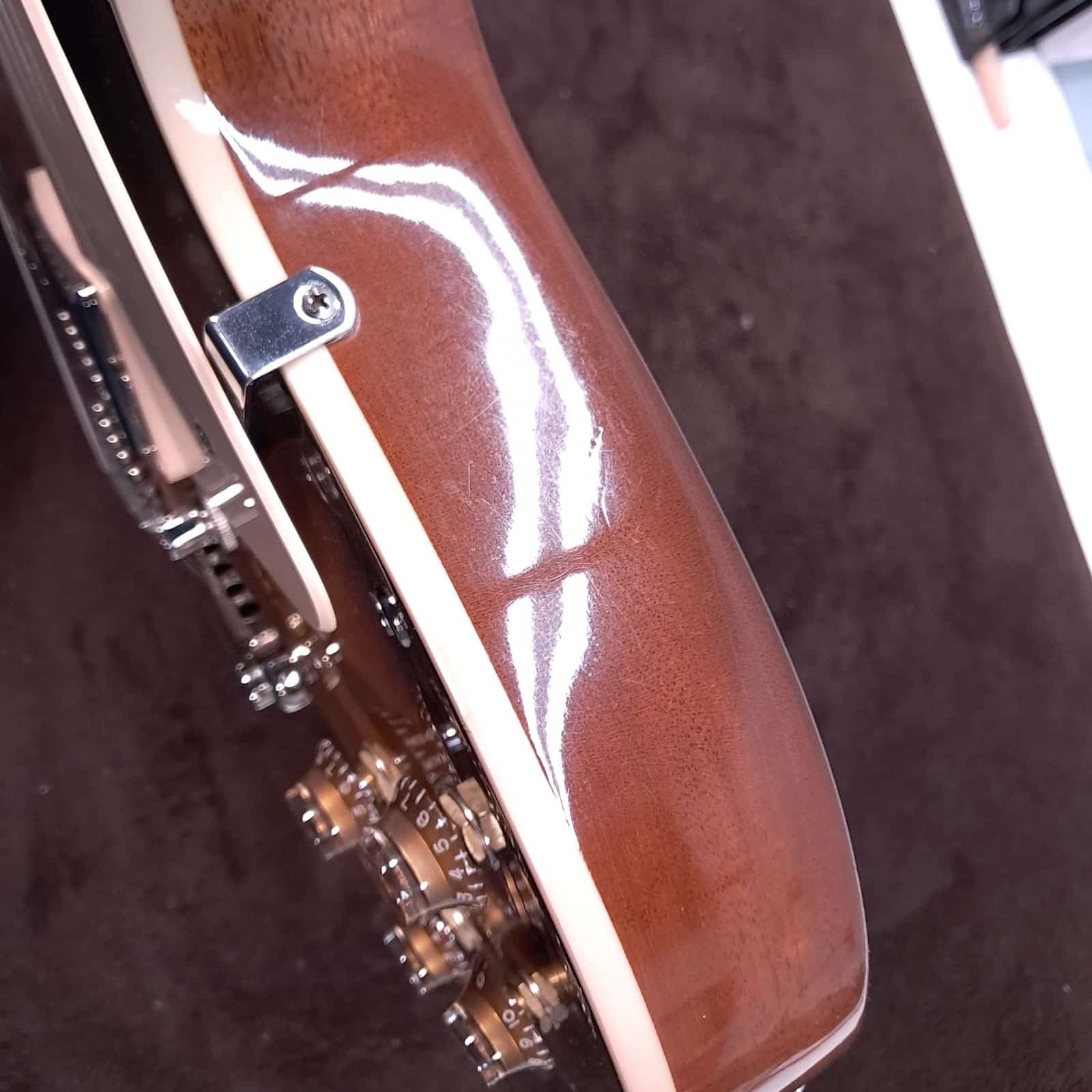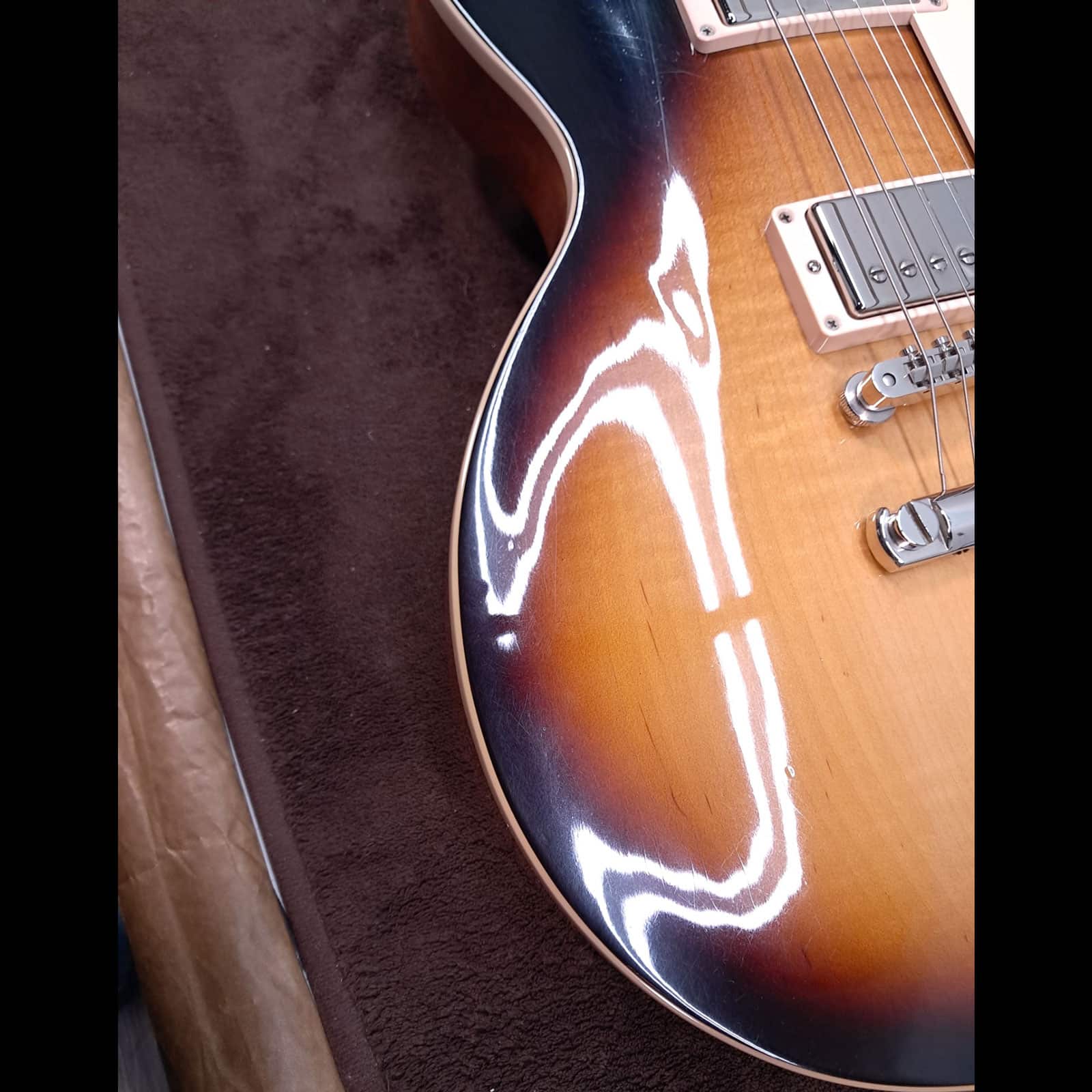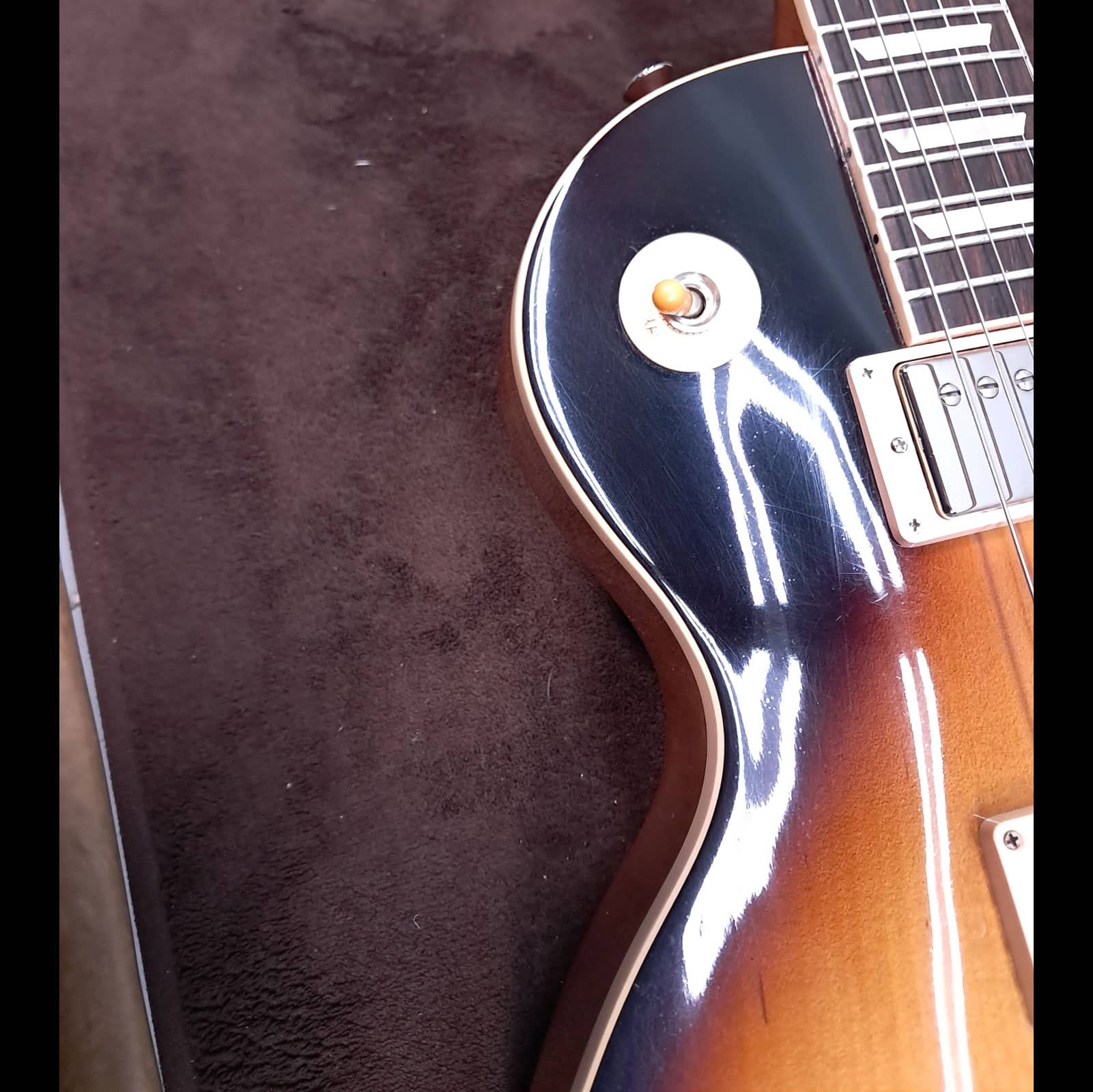 Under the hood, it’s pure Gibson muscle. A **Burstbucker 1 in the neck** and a slightly hotter **Burstbucker 2 in the bridge** deliver that coveted PAF-style tone. The neck pickup is warm, open, and articulate—perfect for glassy cleans and soulful leads. Kick over to the bridge, and you get the immediate punch, bite, and harmonic complexity that defined rock and roll. The controls are hand-wired with Orange Drop capacitors, ensuring every ounce of that glorious analog tone makes it to your amp.