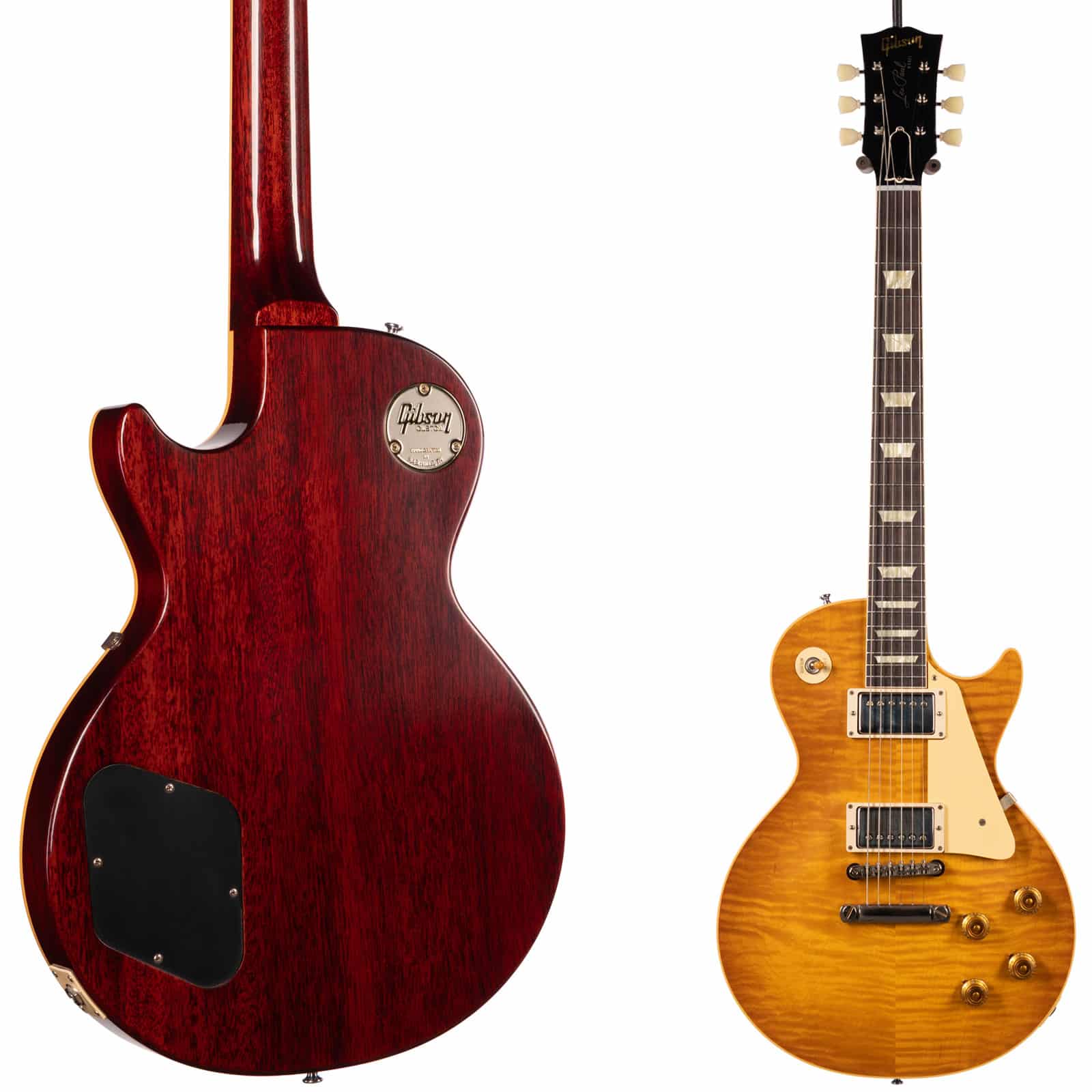 This is not a generic Les Paul with a burst paint job. Gibson Custom went deep on the details: chemically recreated plastics, correct Royalite binding, cellulose nitrate trapezoid inlays, vintage style hardware and historically accurate nylon nut and aluminum strap buttons.