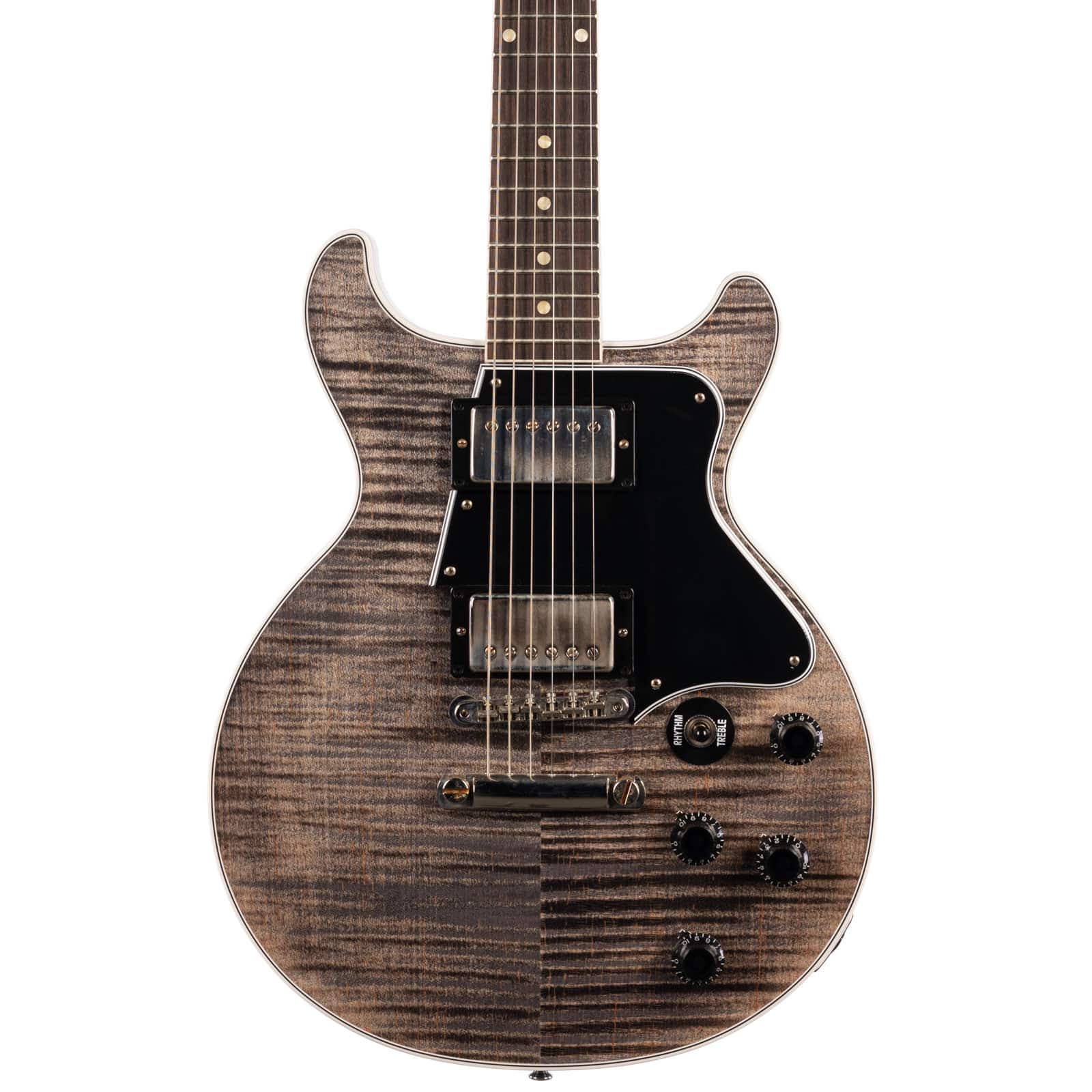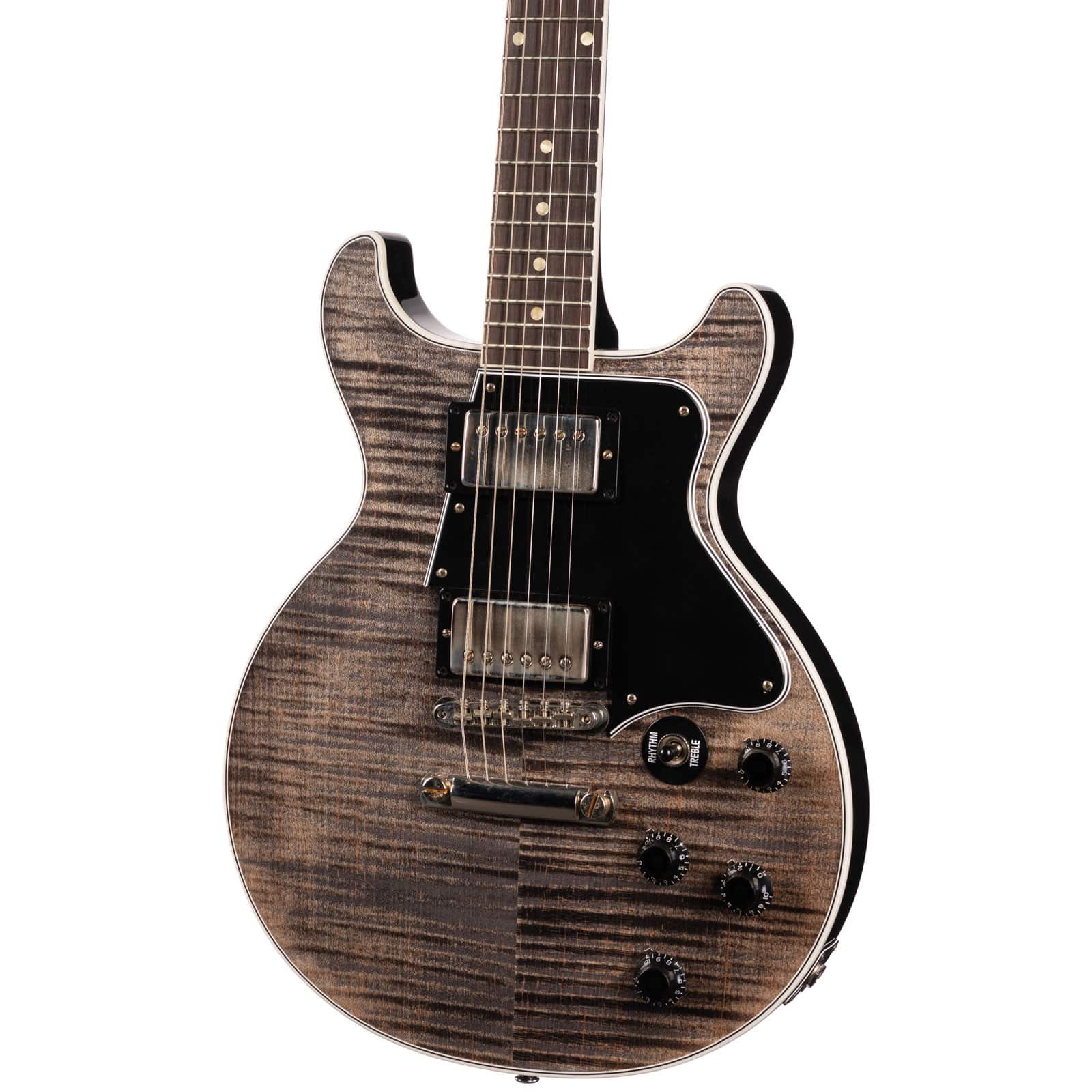 This isn’t your average Les Paul. This Gibson Custom Shop Les Paul Special Double Cut is a masterclass in tone and style, blending vintage-inspired appointments with a look that’s all its own. The figured maple top, finished in a stunning Trans Black, lets every ripple of the wood grain shine through, creating a sense of depth that’s impossible to ignore. But the real surprise? That classy British Racing Green back—a unique touch that sets this instrument apart from the pack. It’s a player’s guitar, through and through, with a resonant soul and a voice that demands to be heard.