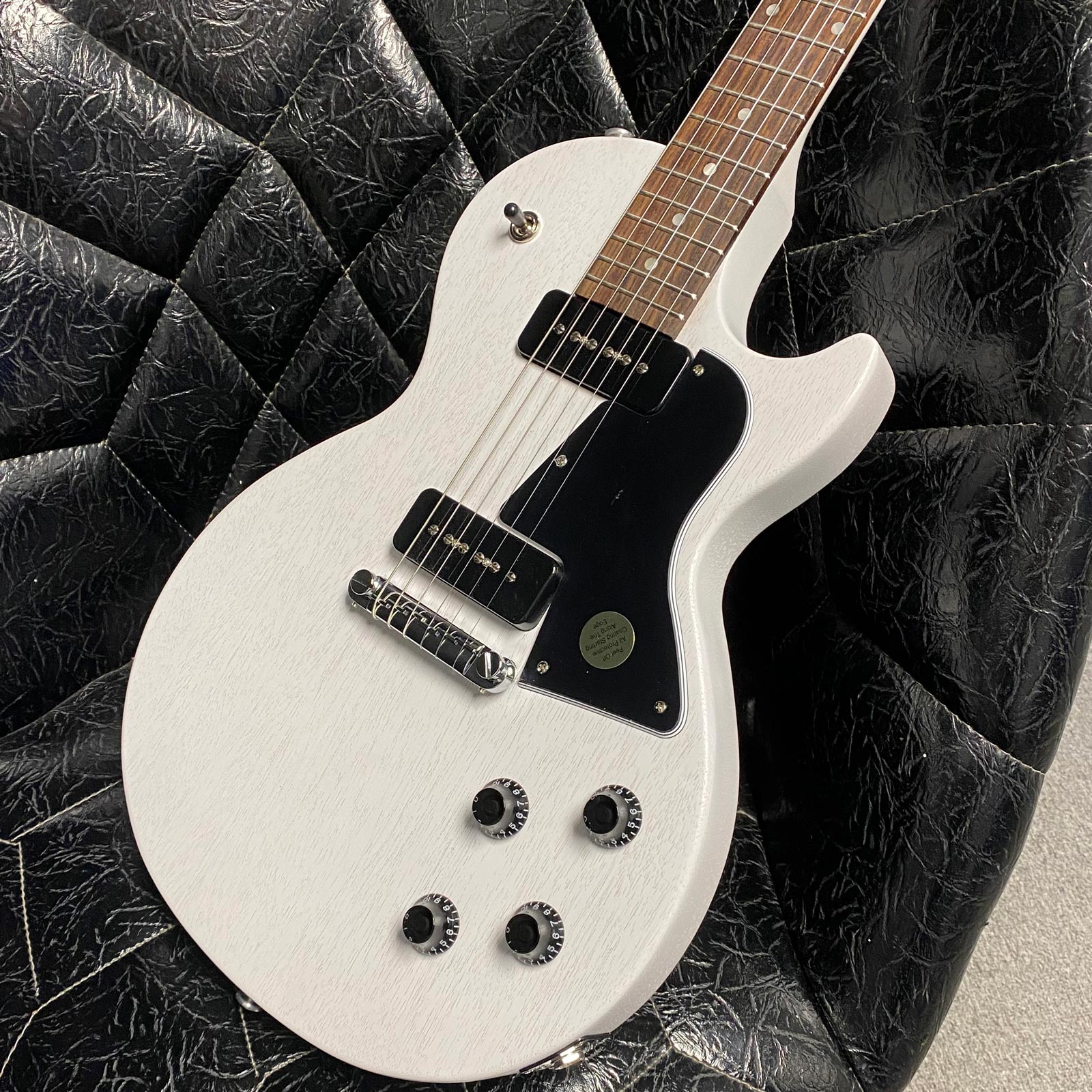 The heart of this guitar is the pair of Gibson P-90 pickups. The bridge pickup has that snappy top end and snarling midrange that cuts through a band mix without ever getting ice picky. It loves crunchy amps and overdrive pedals.