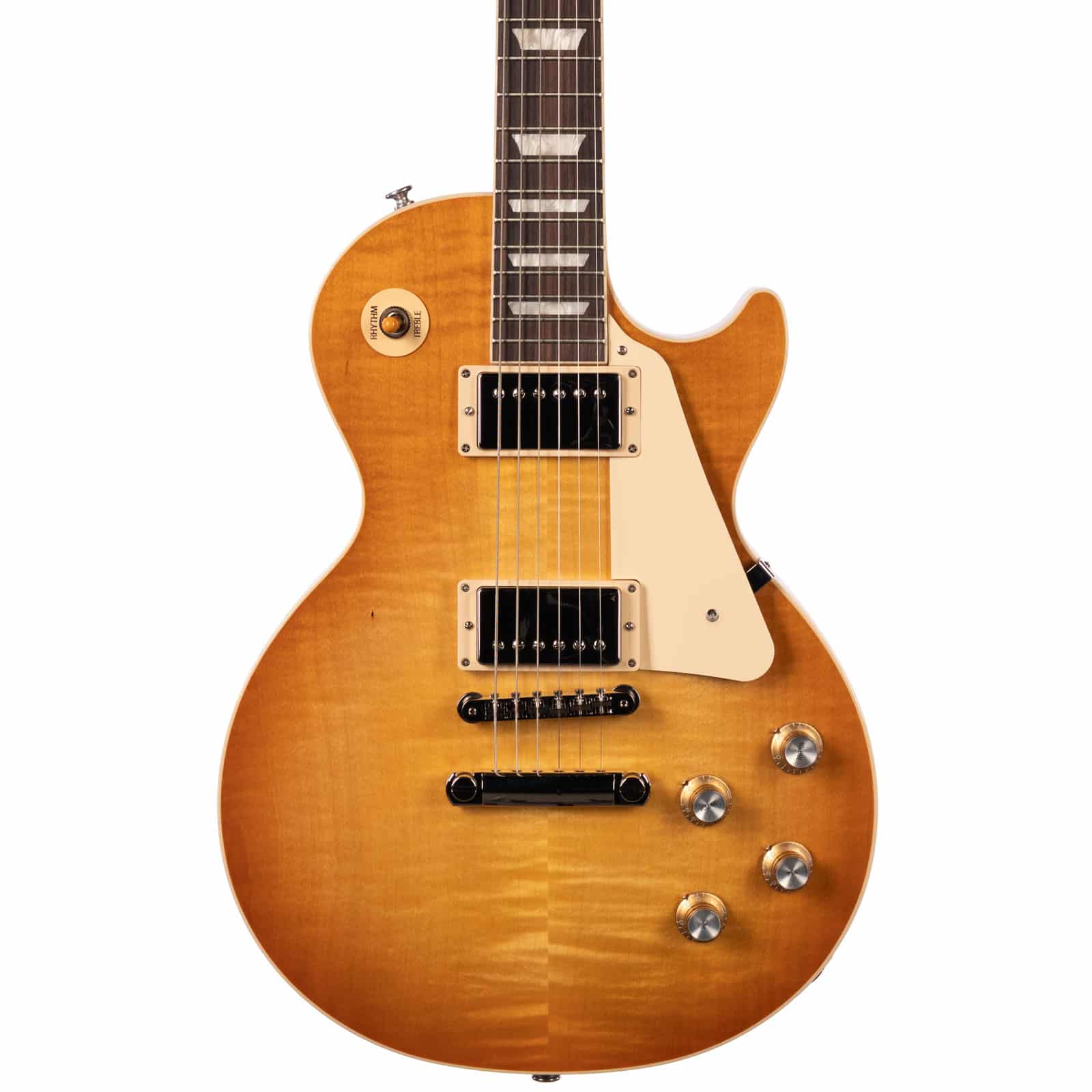 Both pickups are 60s Burstbuckers, so you get that classic PAF inspired voice with a little extra bite on top. The neck pickup is warm and round for glassy cleans and syrupy leads, while the bridge has the cut and grit to punch through a dense mix without going harsh.