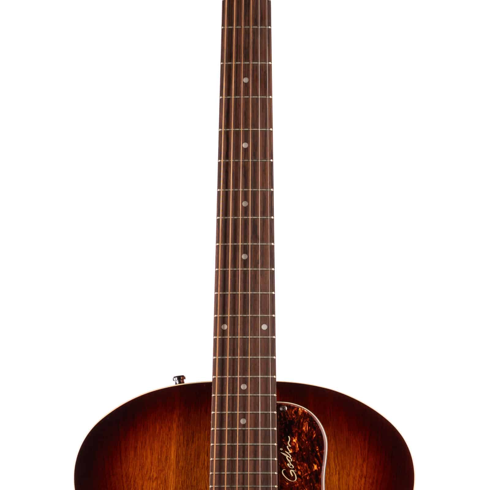 Instead of a typical spruce top, the 5th Avenue’s entire body is crafted from Canadian Wild Cherry. This unique tonewood gives the guitar a truly distinct voice. You get the bright, immediate attack you’d expect from maple, but it’s tempered with a warmer, richer midrange that keeps the tone full and musical. The result is a sound with incredible clarity for complex chord voicings and a punchy projection that cuts through beautifully, all without an amplifier.