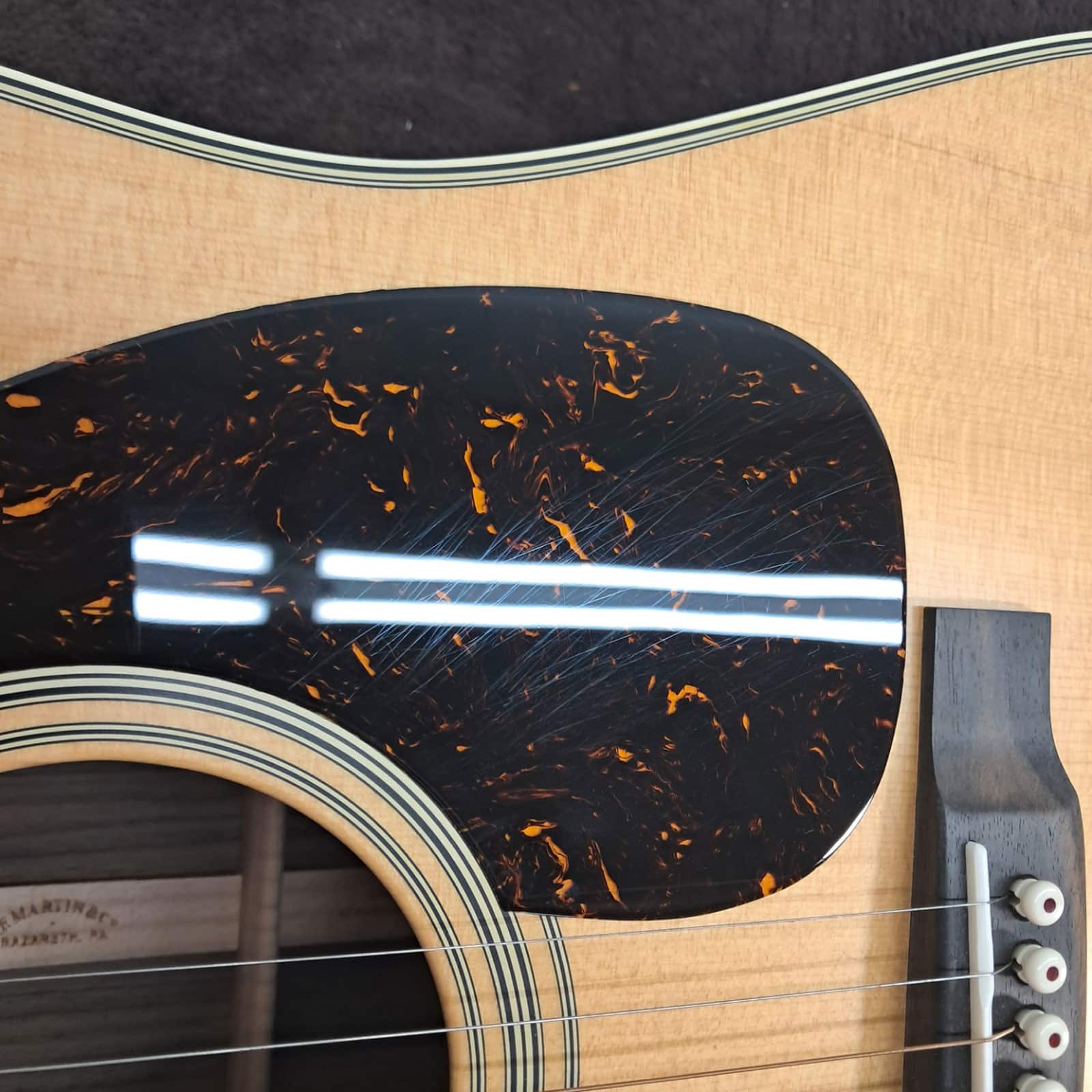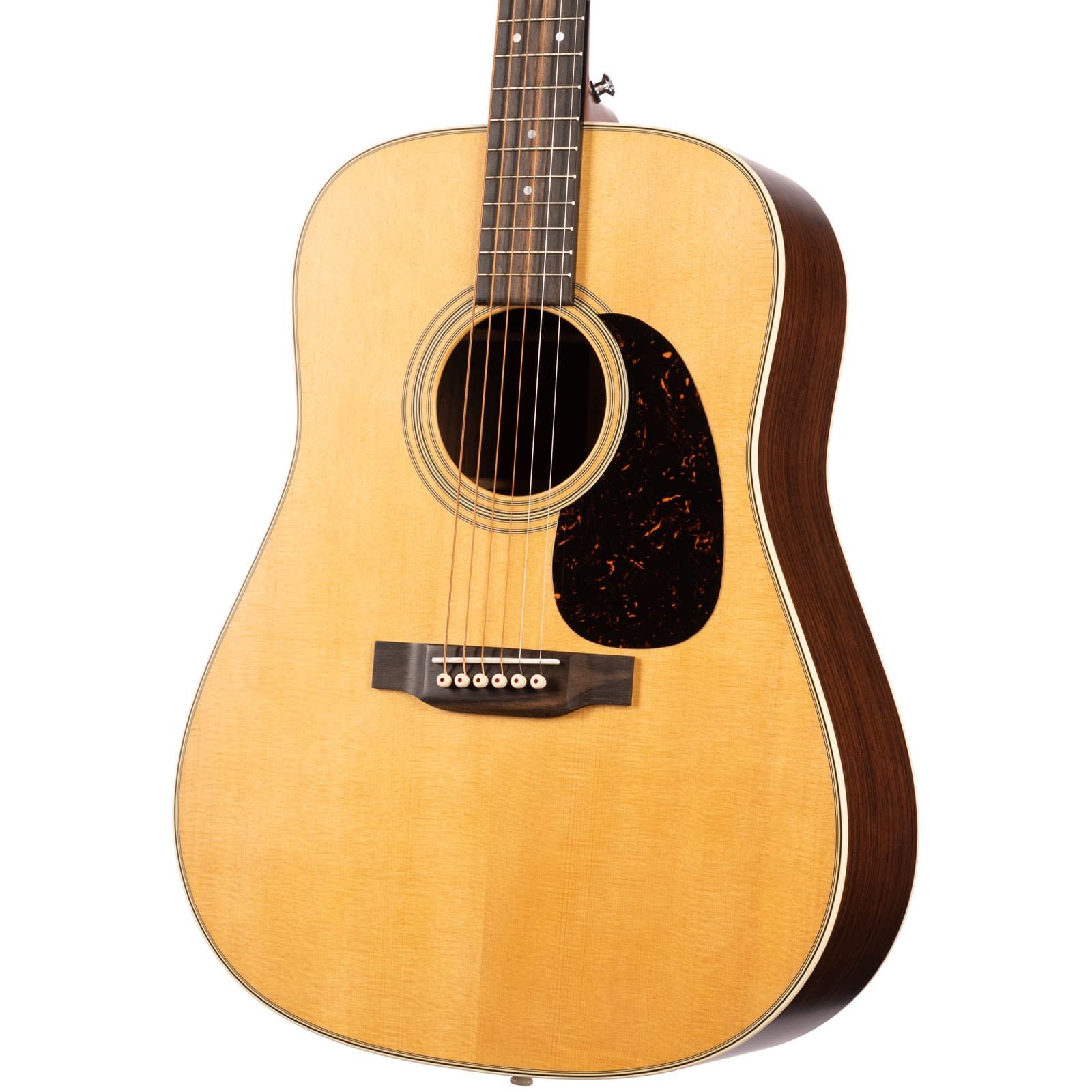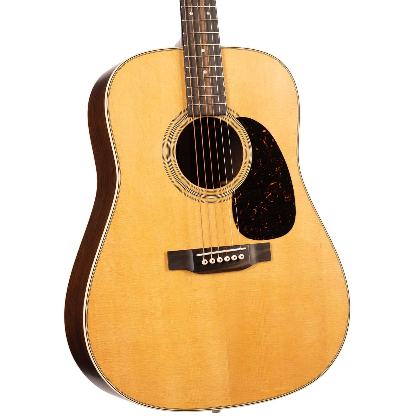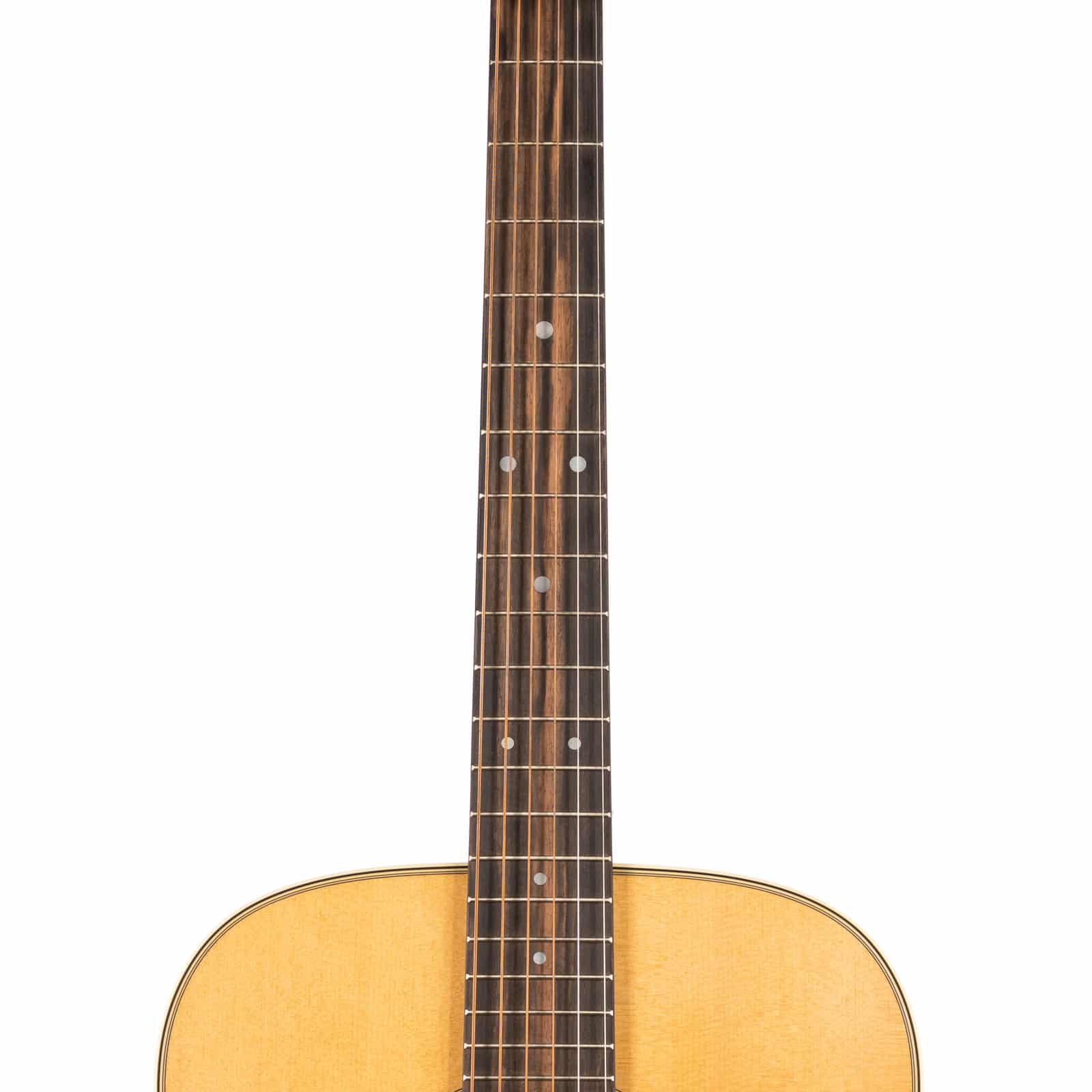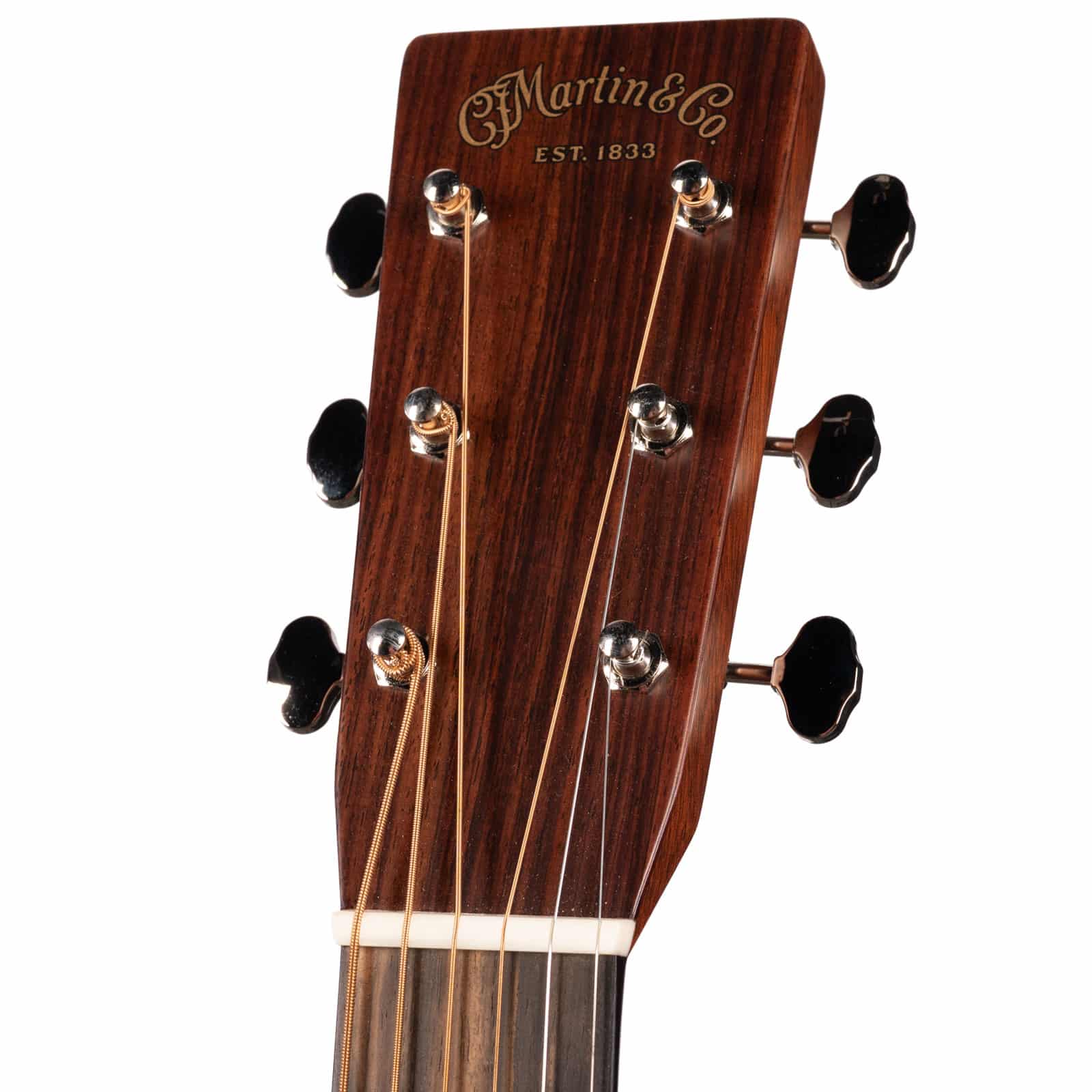 The foundation of the D-28’s power comes from its pairing of a solid Spruce top with East Indian Rosewood back and sides. You get the best of both worlds, the crisp articulation and harmonic richness from the spruce, backed by the deep, booming low-end and glassy highs of the rosewood. The forward-shifted, non-scalloped X-bracing provides a rock-solid top with incredible projection, perfect for holding down the rhythm in a jam or cutting through a mix on stage.