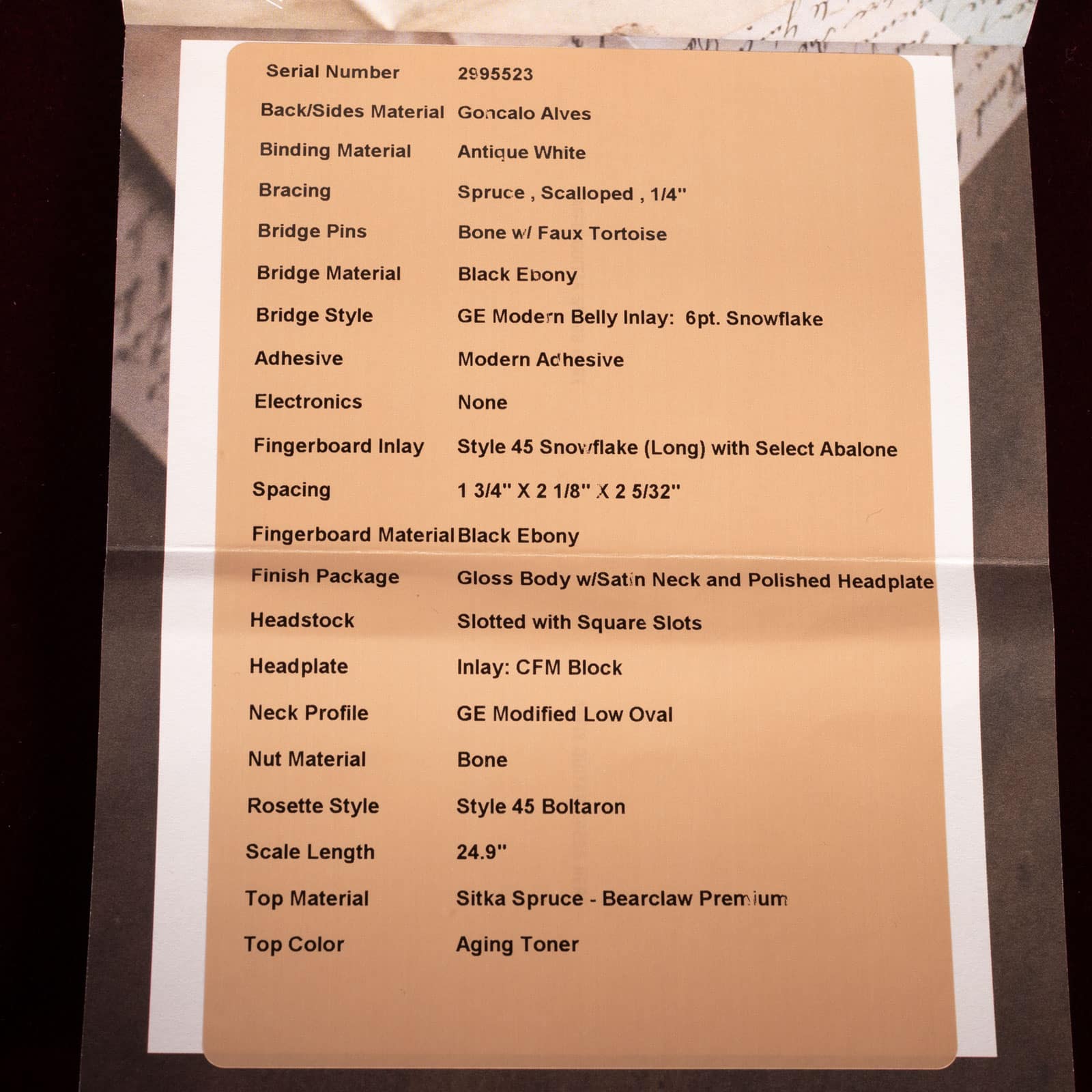 This guitar is built to be played. The comfortable 00-size body and 24.9″ scale length make it a joy to hold, while the GE Modified Low Oval neck profile feels instantly familiar and comfortable in your hand. The slotted headstock and Style 45 snowflake inlays are pure classic Martin, rounding out a build that’s as inspiring to play as it is to behold. It’s a lightweight, responsive instrument that feels alive against your chest, ready for the stage, studio, or your favorite writing chair.