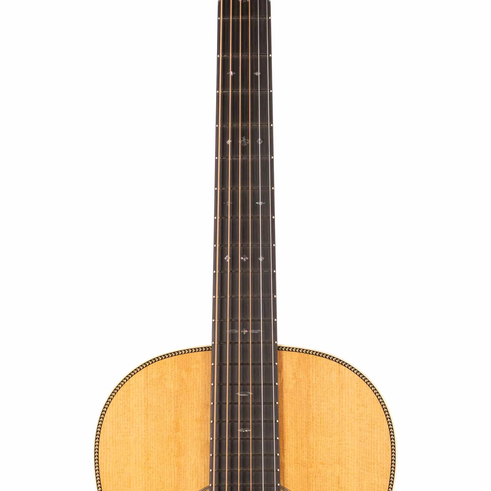 Paired with that exotic back is a premium Bearclaw Sitka Spruce top. That distinctive ‘claw’ figuring isn’t just for looks—it’s an indicator of older, stiffer, more resonant wood. Many luthiers believe this natural cross-grain stiffness enhances sustain and focuses the guitar’s voice, giving you a powerful fundamental tone that’s perfect for everything from delicate fingerstyle to articulate flatpicking. An aging toner gives it the warm, broken-in look of a vintage prize.