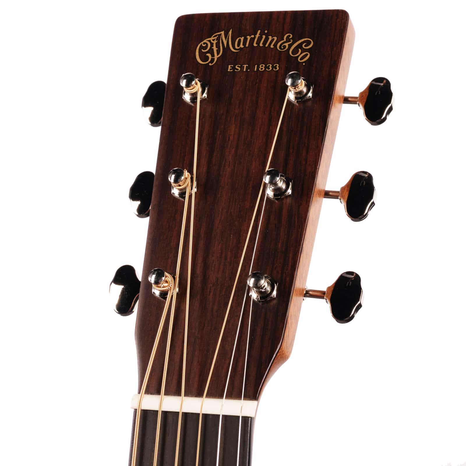 Martin has dialed in the feel of this D-18 for pure performance. The neck features their GE Modified Low Oval profile with a High-Performance Taper—a mouthful that translates to a supremely comfortable, fast-playing neck that feels just right from the first fret to the last. The 1 3/4″ nut width gives you plenty of room for complex chording without feeling cumbersome, and the satin finish on the neck is pure buttery smoothness. Combined with a Plek’d setup from the factory, the action is flawless right out of the box.