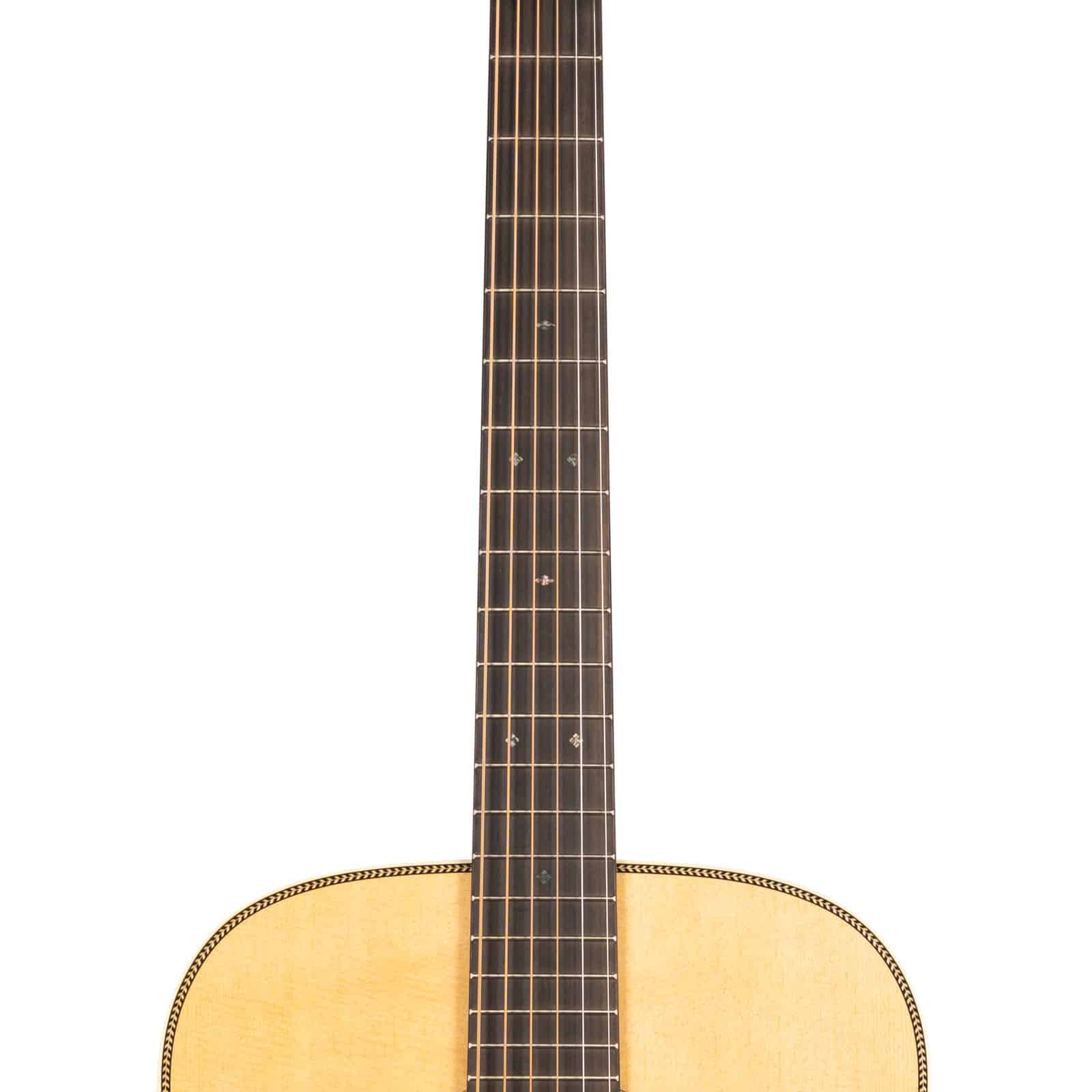 From the bold herringbone inlay to the antique white binding and Zig-Zag back purfling, this guitar oozes vintage cool. But it doesn’t play like a museum piece. The neck is a **GE Modified Low Oval with a High-Performance Taper**. It’s a mouthful, but what it means for your hands is pure comfort—a neck that feels substantial but never gets in the way, perfect for long sessions without fatigue. Combined with a buttery ebony fingerboard and a versatile 1 3/4″ nut width, it’s a neck that feels like an old friend from the very first chord.