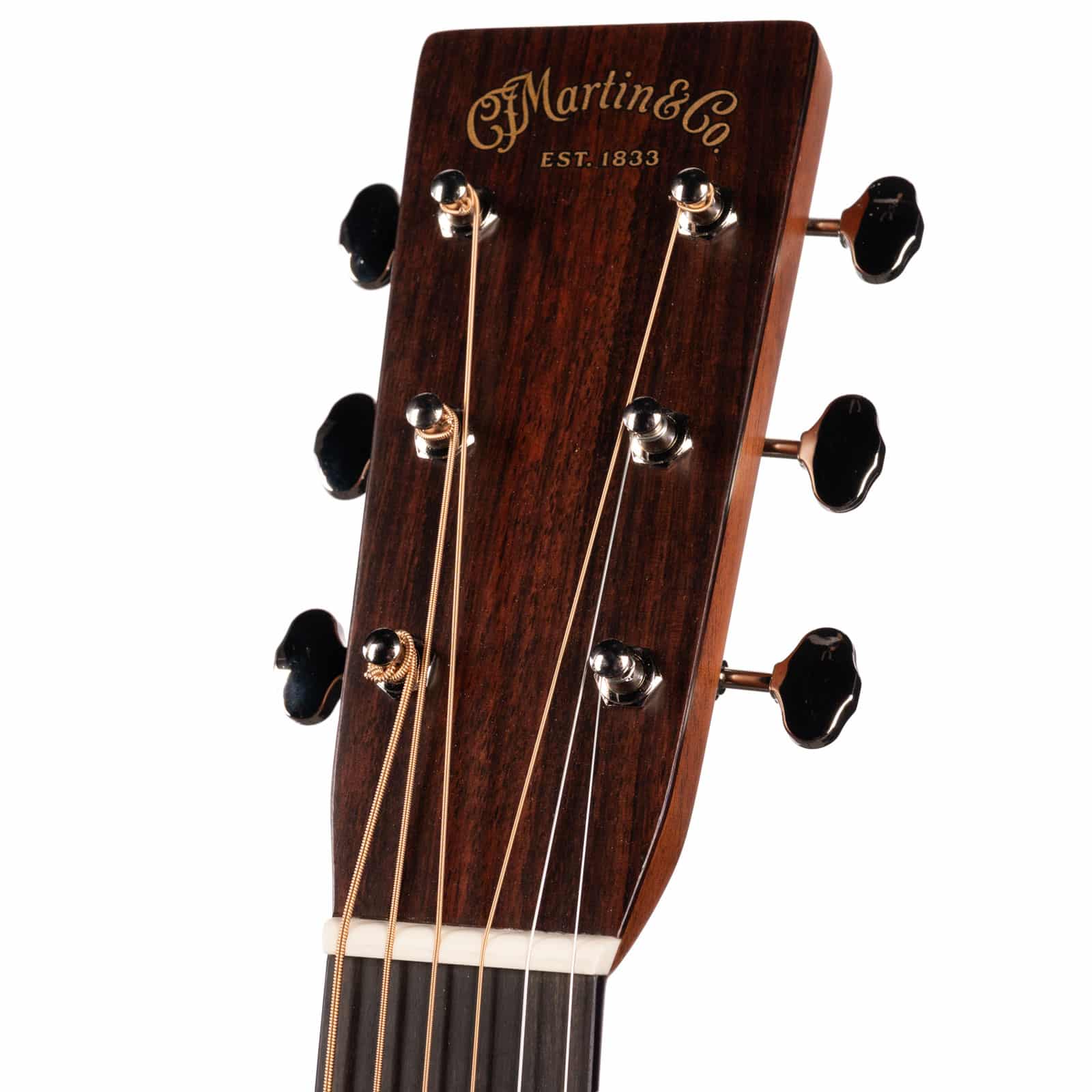 For all its power, the HD-28 is a dream to play. The neck is a GE Modified Low Oval with a High-Performance Taper, a mouthful that translates to pure comfort. It fills the hand nicely without being chunky, giving you a secure grip for cowboy chords while still being fast enough for intricate flatpicking runs up the neck. The satin finish feels smooth and broken-in from the first note, and the 1 3/4″ nut width provides perfect string spacing for both strumming and fingerstyle playing. This is a workhorse neck built for long sessions, whether you’re on stage, in the studio, or just on the couch.