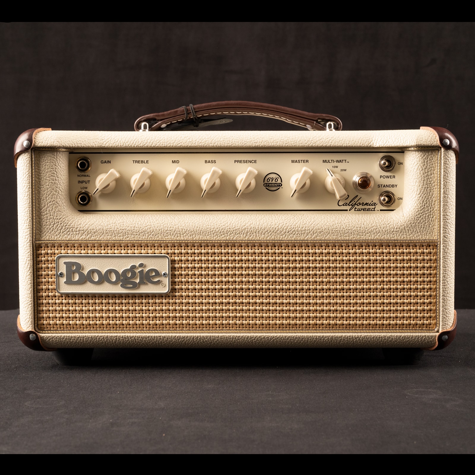 In the twilight of the 1960s, SF Bay Area amp repairman to the Stars, Randall Smith, was inspired to start building his own amplifiers after coming to a deep appreciation for the 50s Tweed circuits developed by Leo Fender. He loved their organic-sounding voice, powerful controls, and the way they smoothly transitioned from clean to clip and back again. Standing on the shoulders of a giant, Smith’s (and the World’s) first venture into boutique guitar amplification resulted in a new Boogie® amp design inspired by that wonderful, timeless-sounding preamp. Five decades later we returned to pay homage with the original California Tweed 4:40. Now, we’ve distilled the essence of that tweed-based performance and authentic 6V6 character in a new, more compact format. A beautifully simplistic design that raises the bar in the world of vintage tone. The NEW CALIFORNIA TWEED™ 2:20 HEAD.