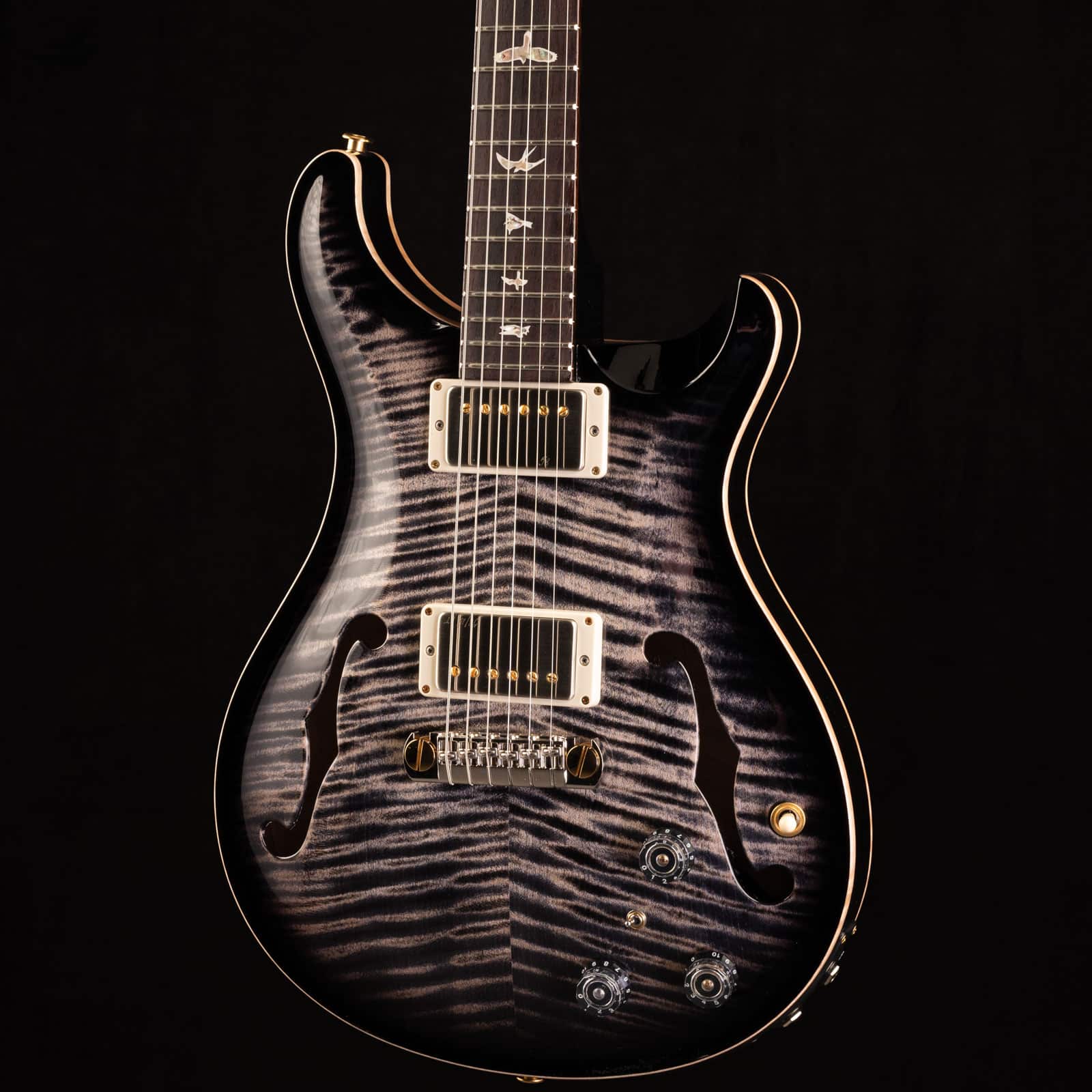 If you have been chasing a guitar that can cover true acoustic textures and rich electric tones without juggling two instruments, this PRS Hollowbody II Piezo 10-Top Charcoal Burst is the answer. At just 5.6 lbs with a carved 10-Top maple cap, it is ridiculously resonant and effortless to wear all night.
