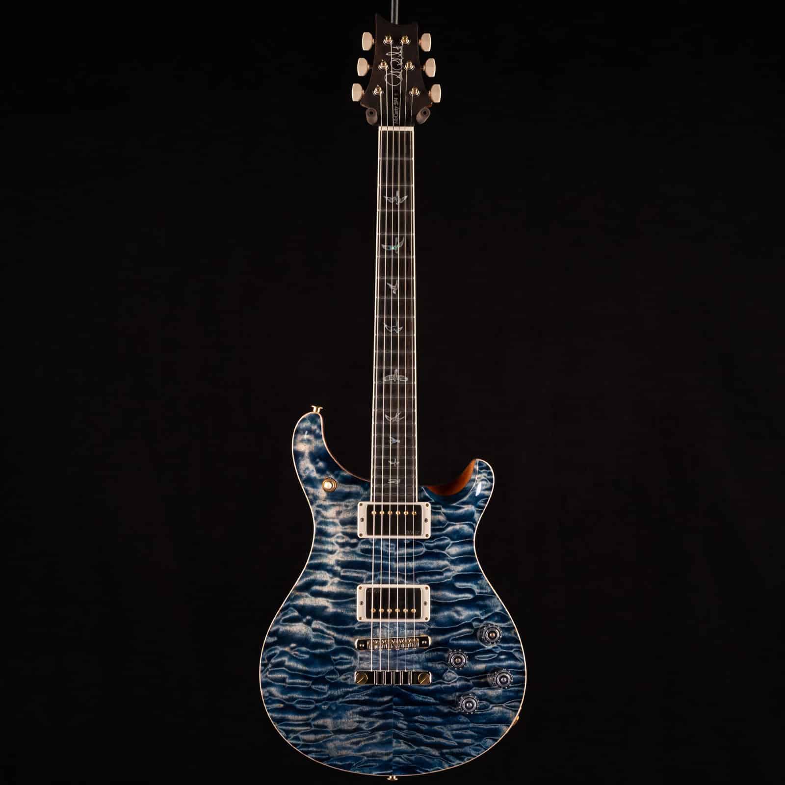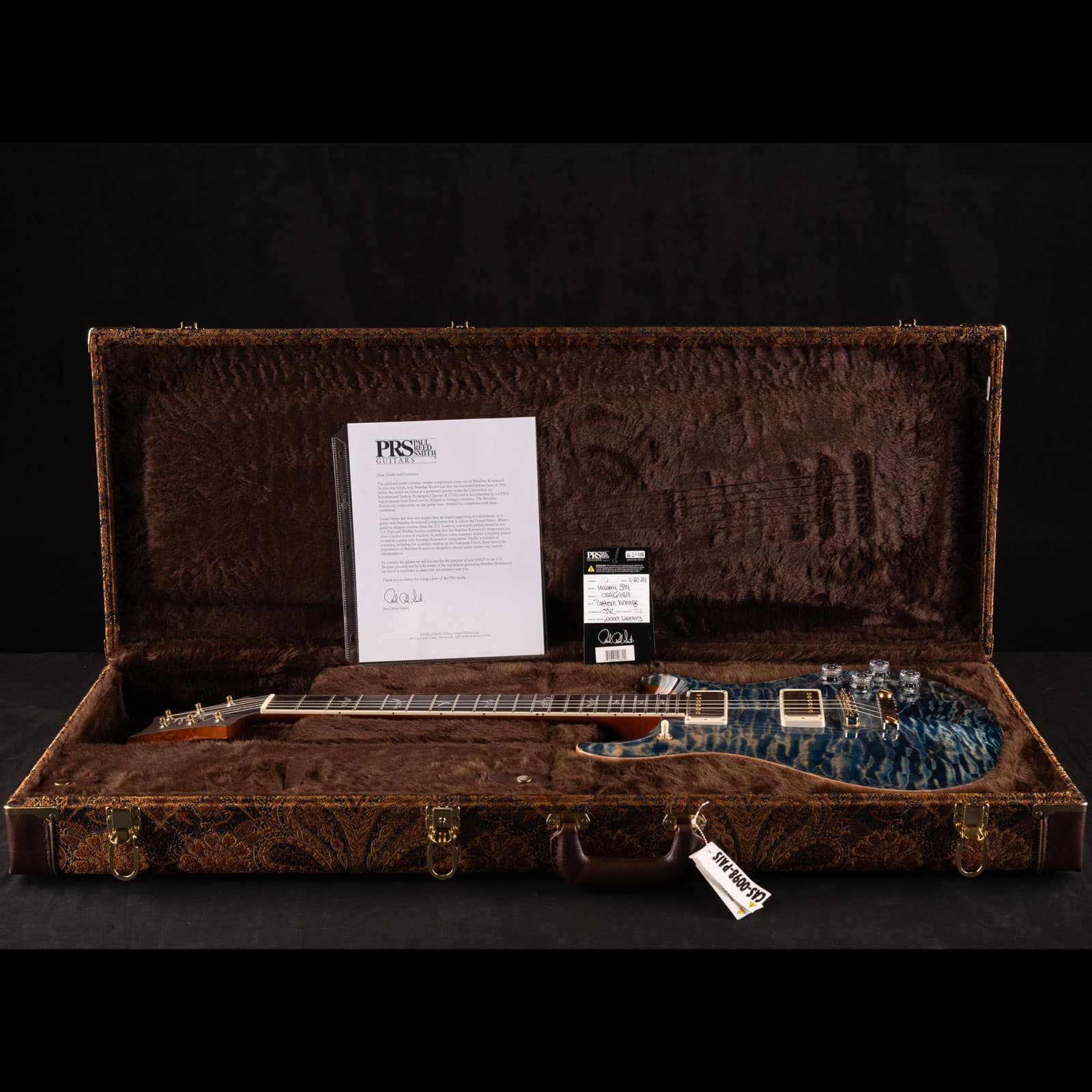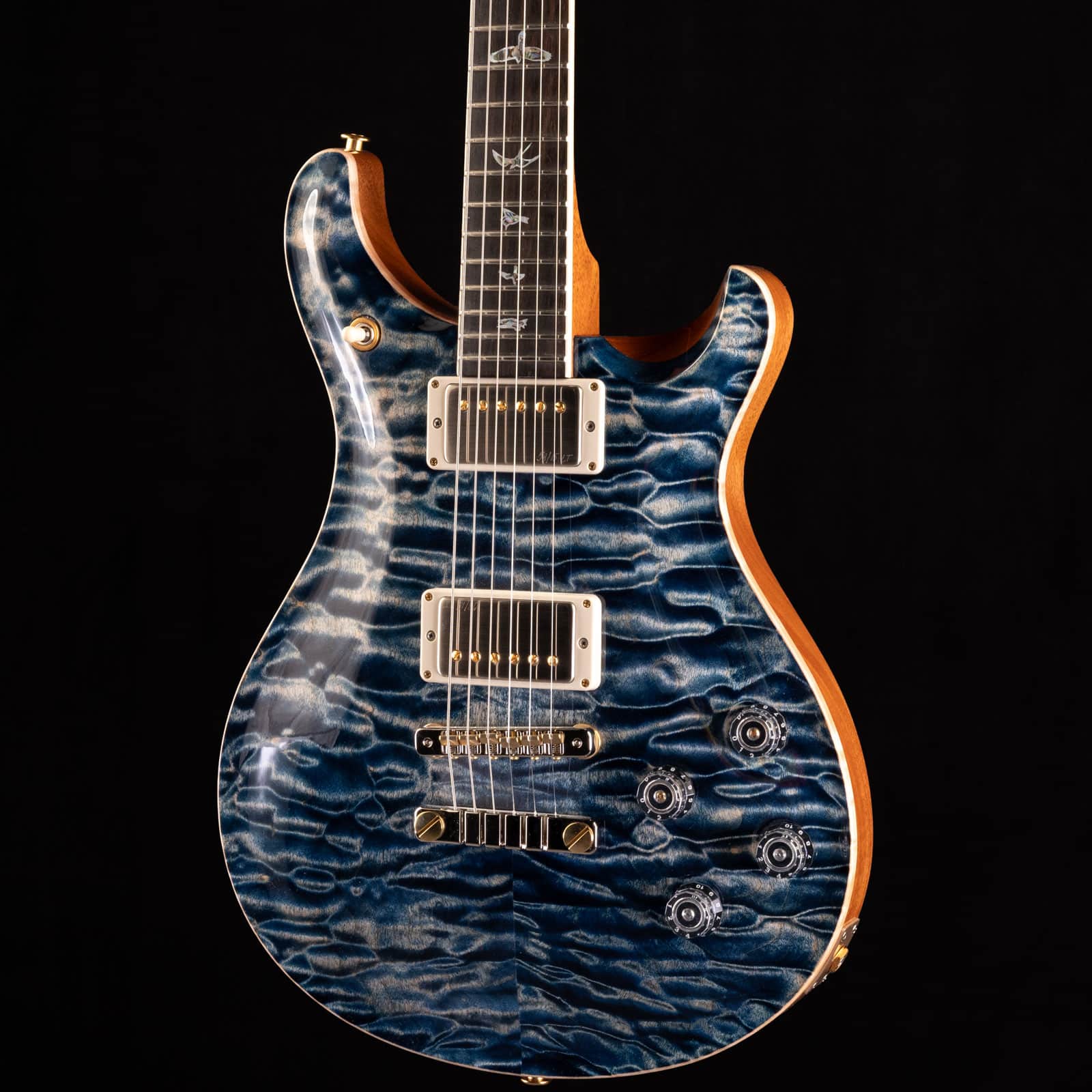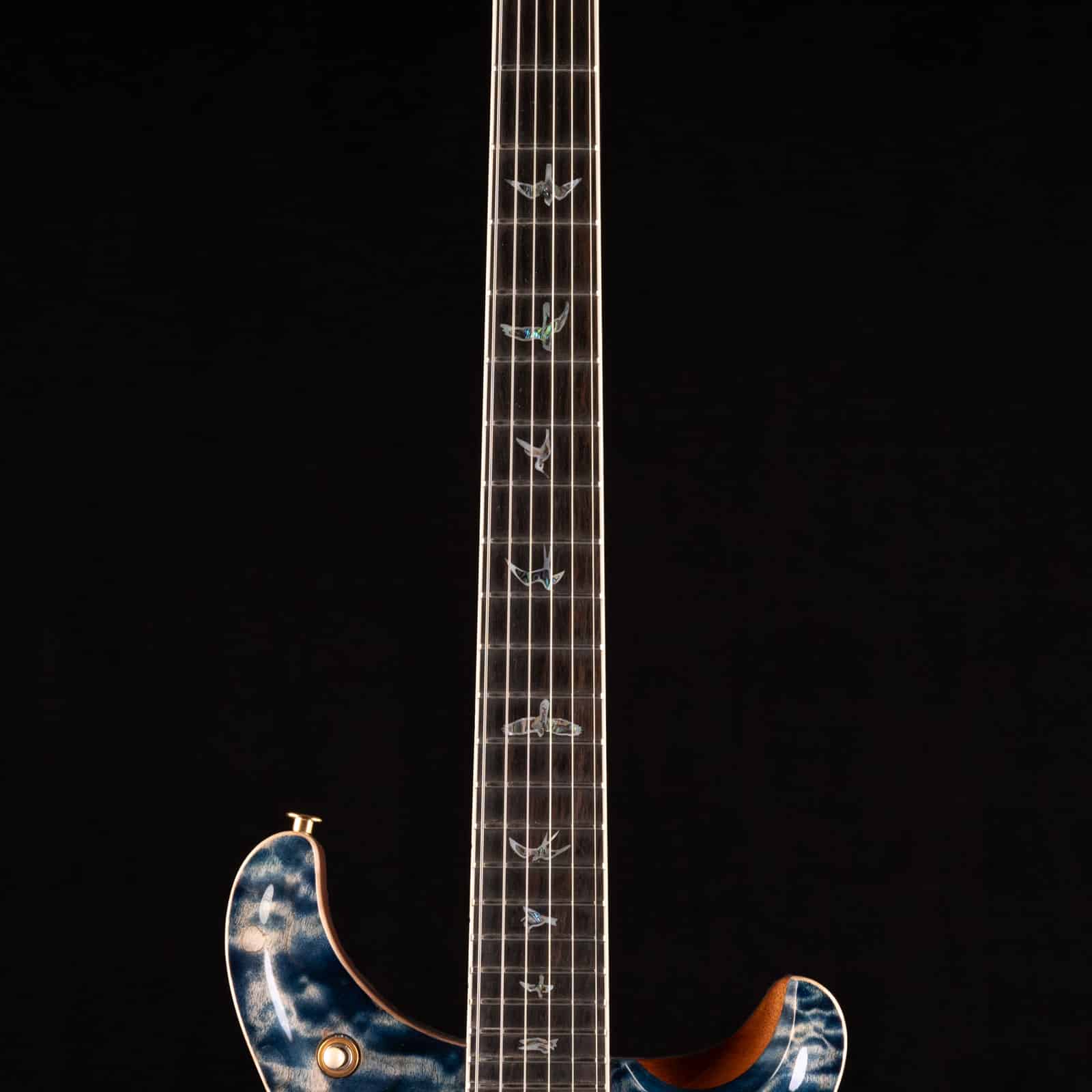 If you have been chasing that golden era Les Paul vibe but want PRS level consistency, this McCarty 594 Wood Library hits the bullseye. Quilted 10-Top maple in Faded Whale Blue, Brazilian rosewood board, and a perfect 7.6 lb weight give you a guitar that looks ridiculous on the wall and feels like an old friend the second you plug in.