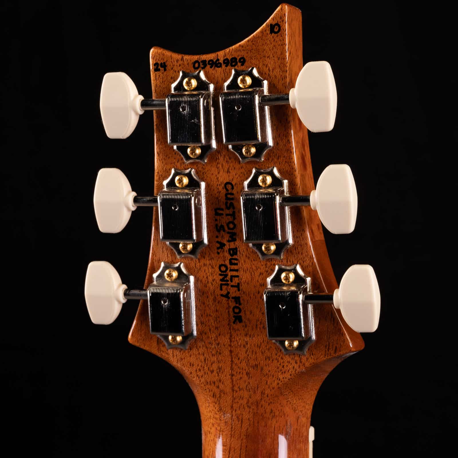 For 2024, PRS updated the vintage style tuners with lighter Wing buttons. Less weight on the headstock means less energy stolen from the string, so the guitar rings longer and the note stays more focused. They are non locking on this fixed bridge model, which keeps the feel vintage and the tone open while still giving you rock solid tuning stability.