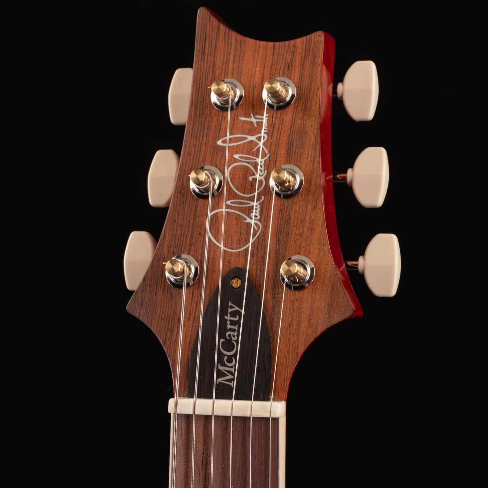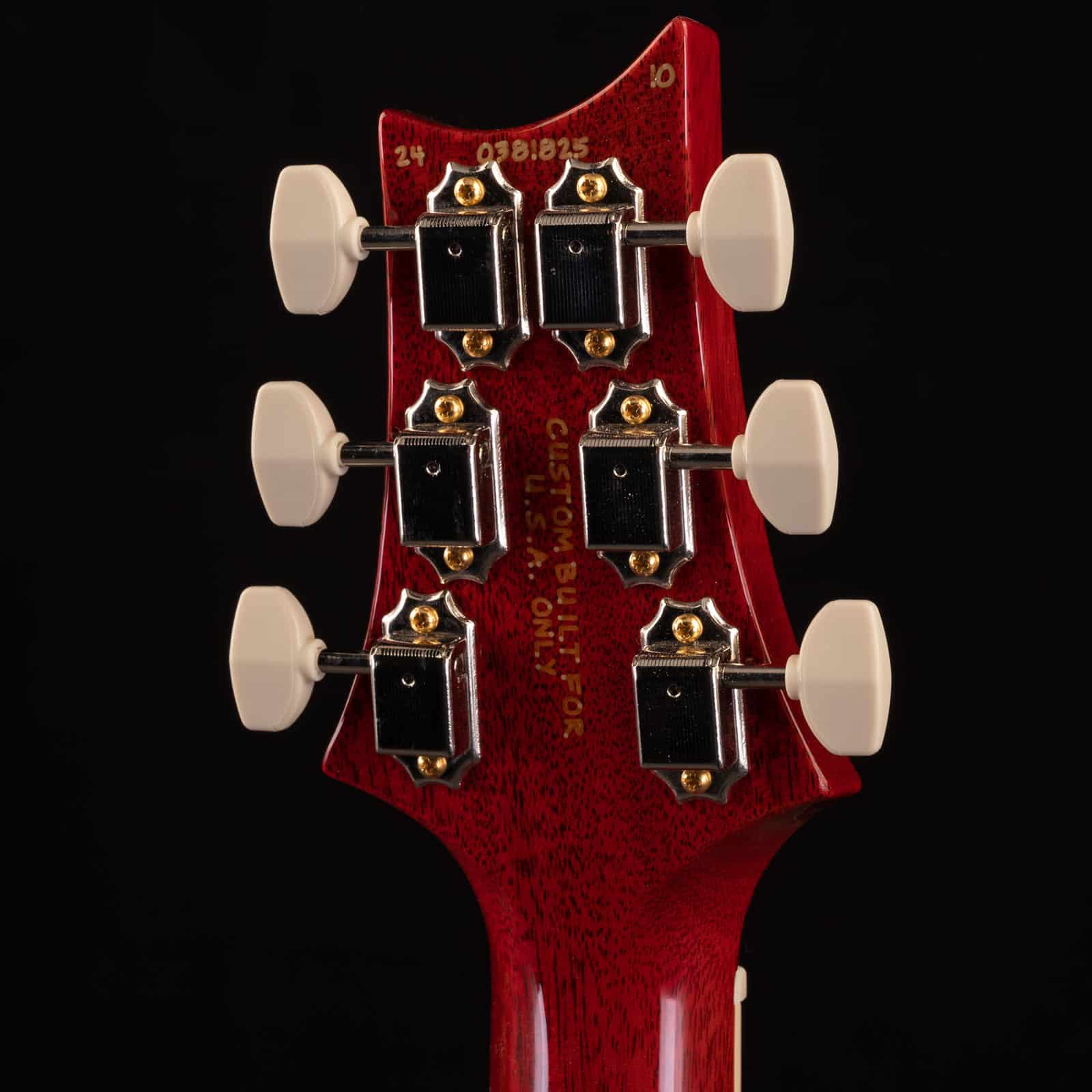 For 2024 PRS went with vintage style tuners using the new lighter weight Wing buttons on this non trem McCarty. Less mass on the headstock means less energy lost and more of it feeding back into the strings, so the guitar rings longer and at a more musical pitch. Paired with the PRS nut and double acting truss rod, you get rock solid tuning stability and a neck that stays dialed in.