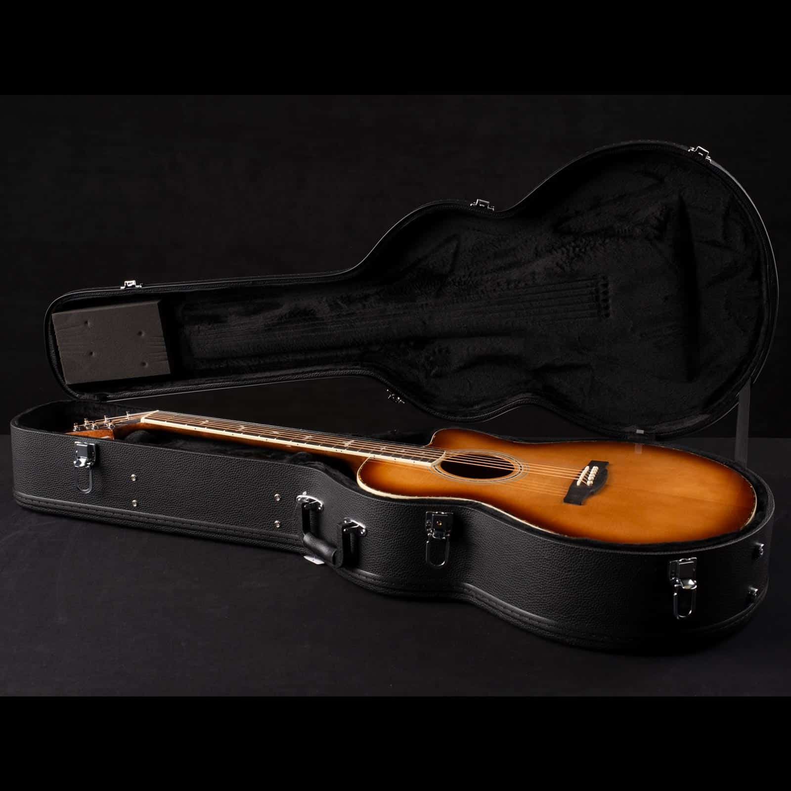 The heart of this guitar is a solid Sitka spruce top paired with ovangkol back and sides. Spruce gives you that immediate, articulate response and clear top end, while ovangkol adds a warm, rounded low end and rich overtones that bloom under your fingers.