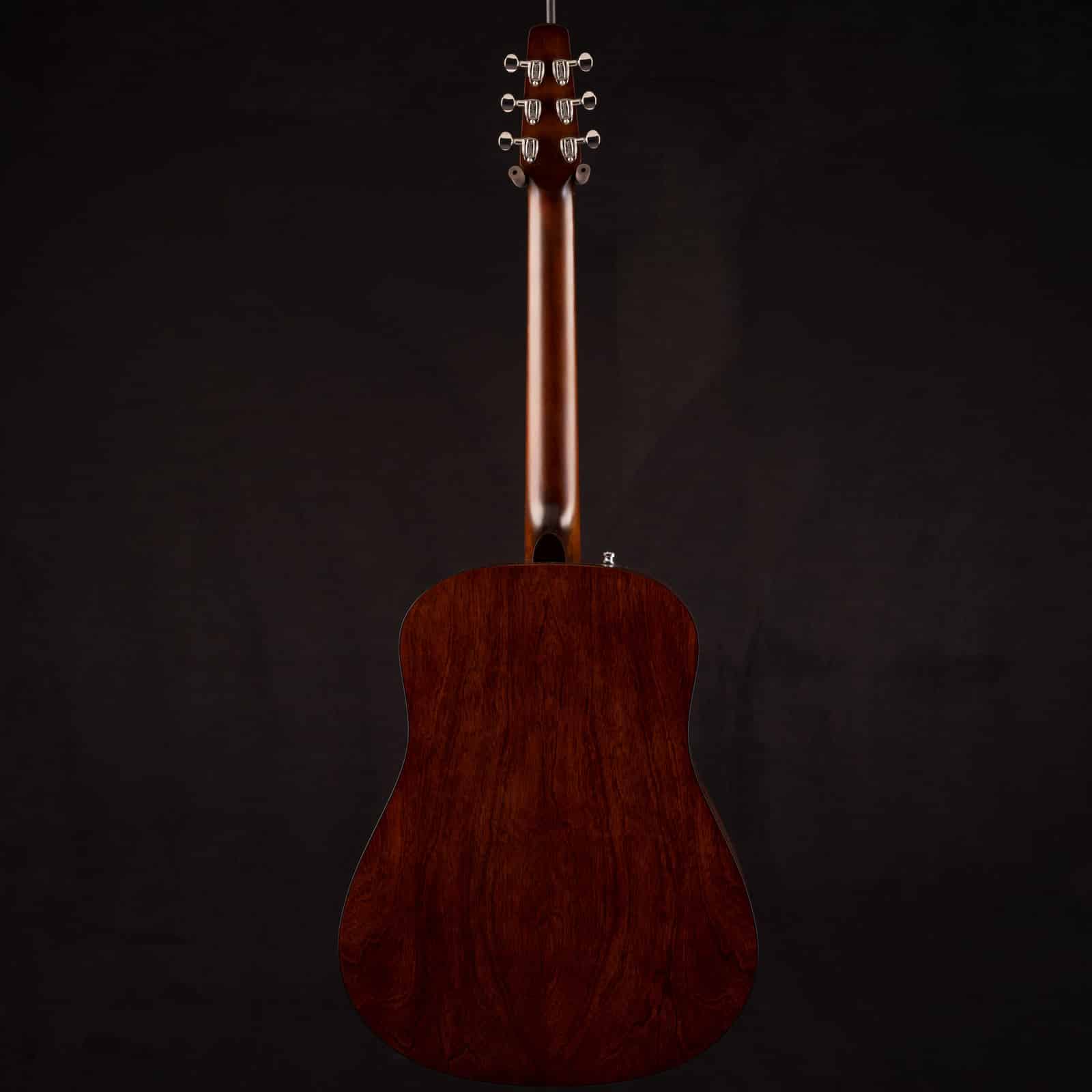 Wild cherry back and sides add focus and definition. That combo gives you a crisp midrange and tight bottom end, so your rhythm parts sit in the mix without getting boomy, and your vocal has plenty of space on top.