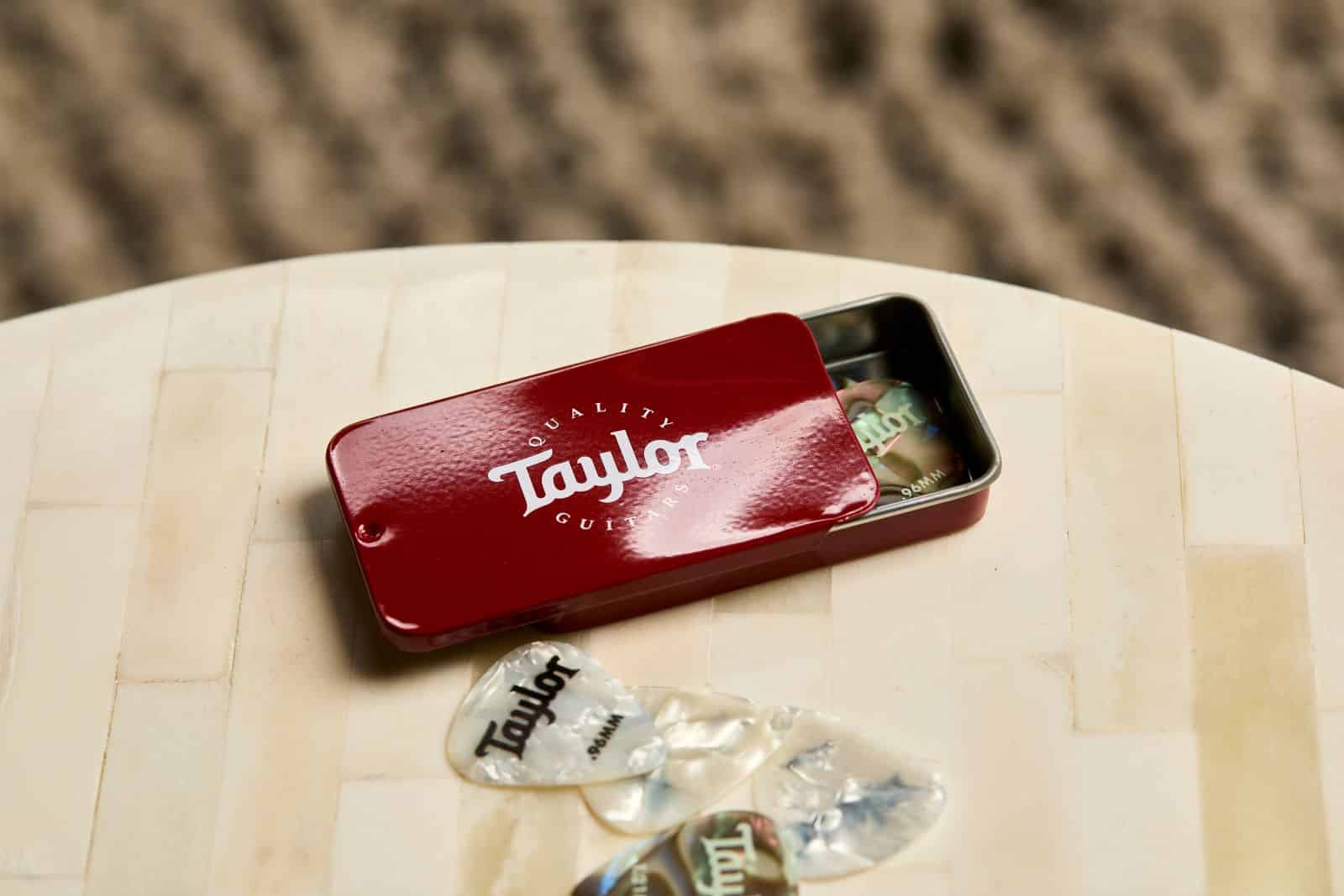 Photos are of the actual guitar, so what you see is what shows up at your door. It ships in a Taylor gig bag, strung with D’Addario XS coated phosphor bronze lights for slick feel and long life.