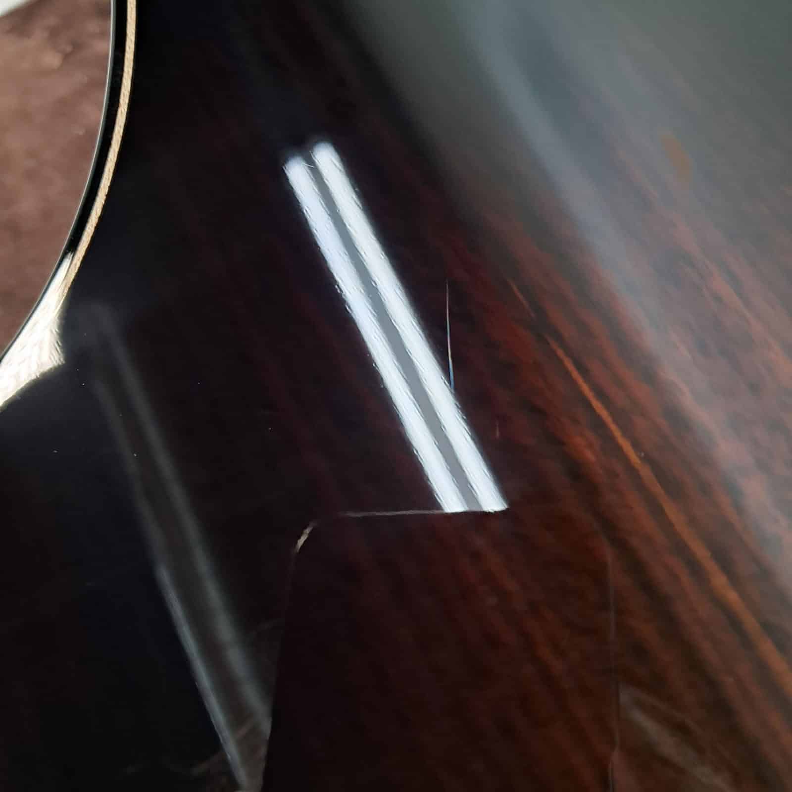 The heart of this guitar is its unique four-piece Adirondack spruce top. Adirondack is legendary for its high volume ceiling and tonal complexity. You can dig in as hard as you want, and it just gets louder and richer without breaking up. Paired with solid Indian rosewood back and sides, you get that classic scooped-mid richness, deep, blooming bass, and a glassy treble sparkle that cuts through any mix. The V-Class bracing inside pulls out every last drop of sustain and keeps every note perfectly in tune up the neck. This thing sings.