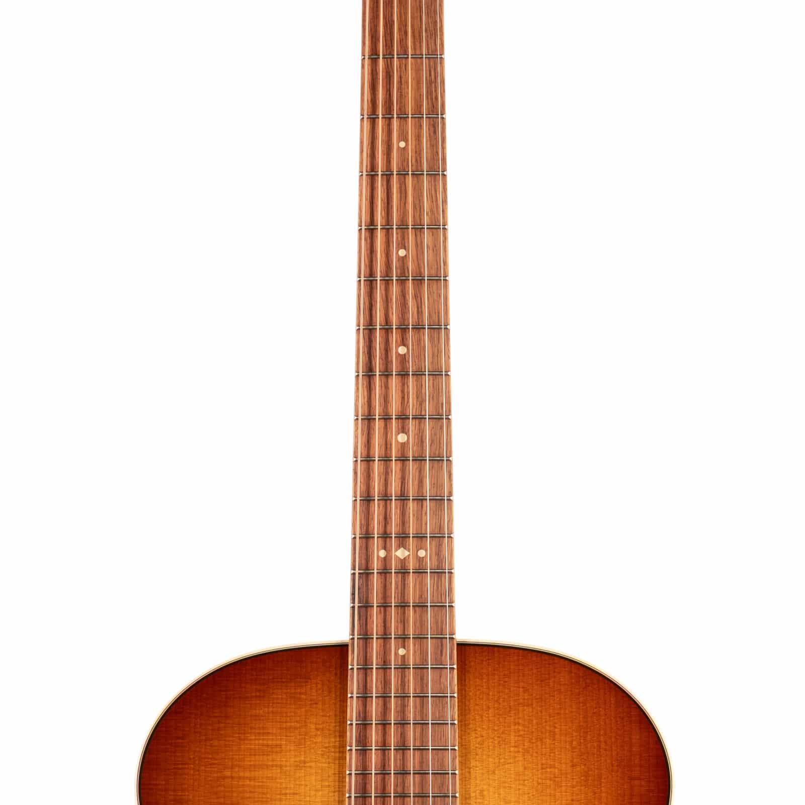Developed with Ben Harper himself, the golden-brown shaded edgeburst finish is simply stunning, perfectly complemented by the cream binding, rosette, and pickguard. The visual appointments are pure class—Crest inlays on the Honduran Rosewood fretboard, polished bronze tuners, and bone bridge pins all contribute to its bold, vintage-inspired aesthetic. But it plays like a modern dream, with Taylor’s Standard Carve neck profile and a comfortable 24-7/8″ scale length that makes complex chords and long sessions a breeze.