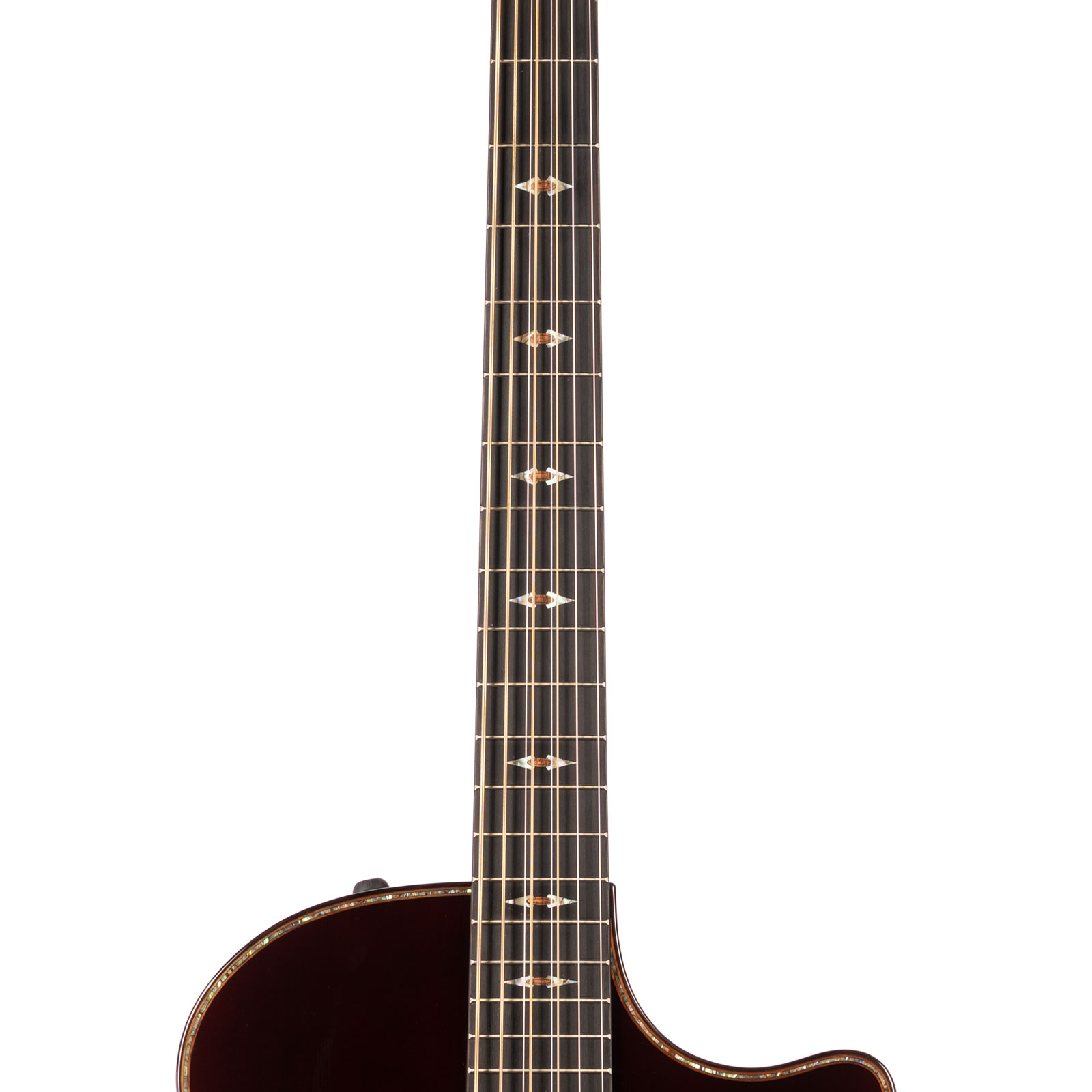 This isn’t just another acoustic guitar—it’s a sonic chasm, a wellspring of deep, resonant character. The Taylor Custom C14ce Baritone 8-String is a special instrument for the discerning player, one who hears music in a lower register. Tuned B-to-B, its extended 27″ scale length unlocks a world of rumbling lows and complex overtones that a standard-tuned guitar simply can’t touch. The 8-string configuration adds octave strings to the middle two, creating a natural chorus effect that makes chords shimmer and single-note lines bloom with incredible richness. Paired with the comfortable Grand Auditorium body and a Venetian cutaway for effortless upper-fret access, this guitar is built for exploration.